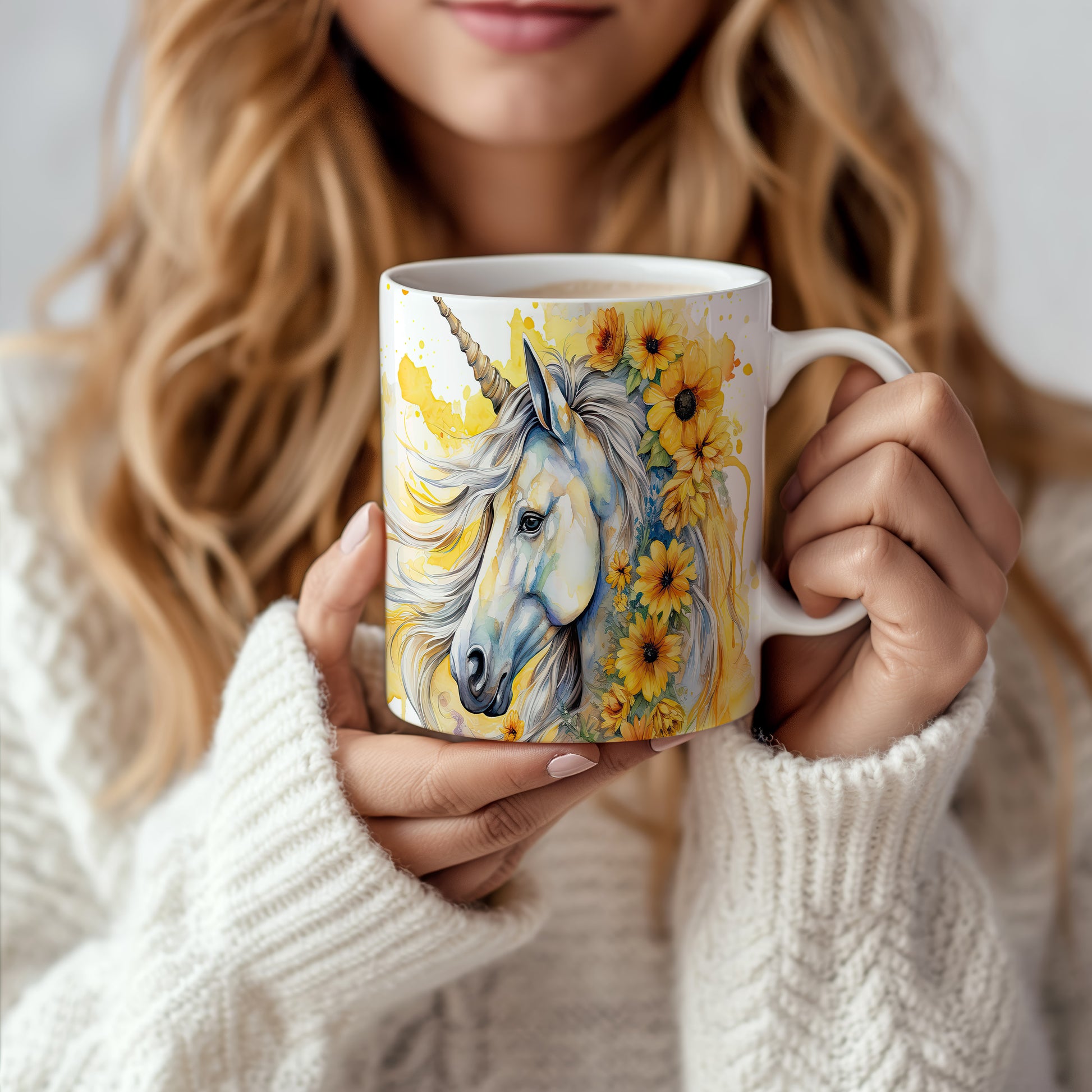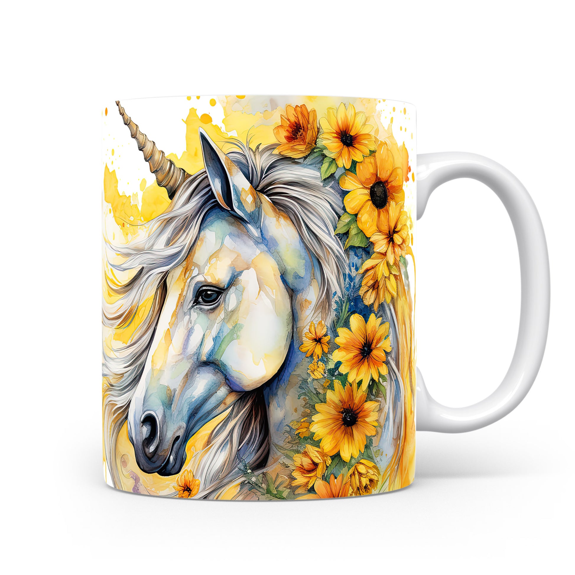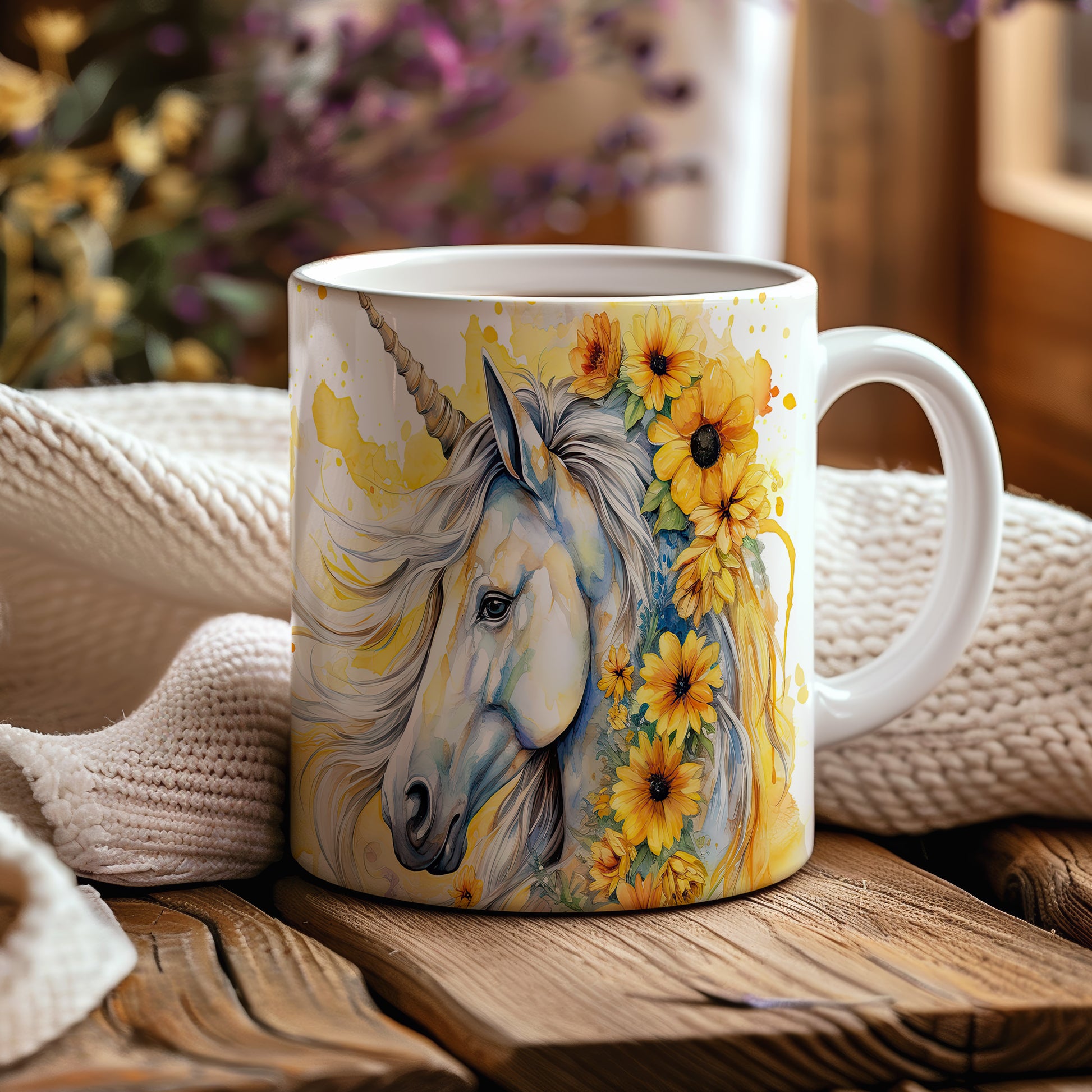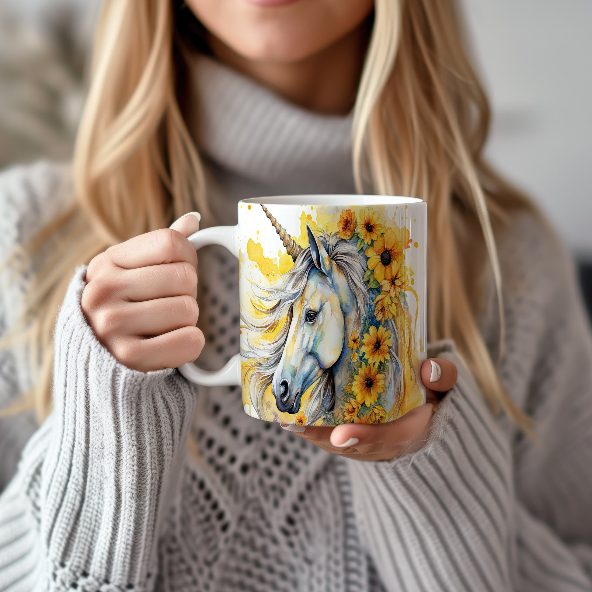 Tento hrnek s motivem jednorožce a slunečnic je skvělým doplňkem pro milovníky pohádkových bytostí. Je ideální jako dárek pro děti nebo pro každého, kdo má rád kouzelné prvky ve svém životě. Materiál: keramika. Objem: 330 ml. Vhodné do myčky i mikrovlnky. Užívejte si svůj oblíbený nápoj s tímto jedinečným hrnkem, který přináší radost do každého dne.