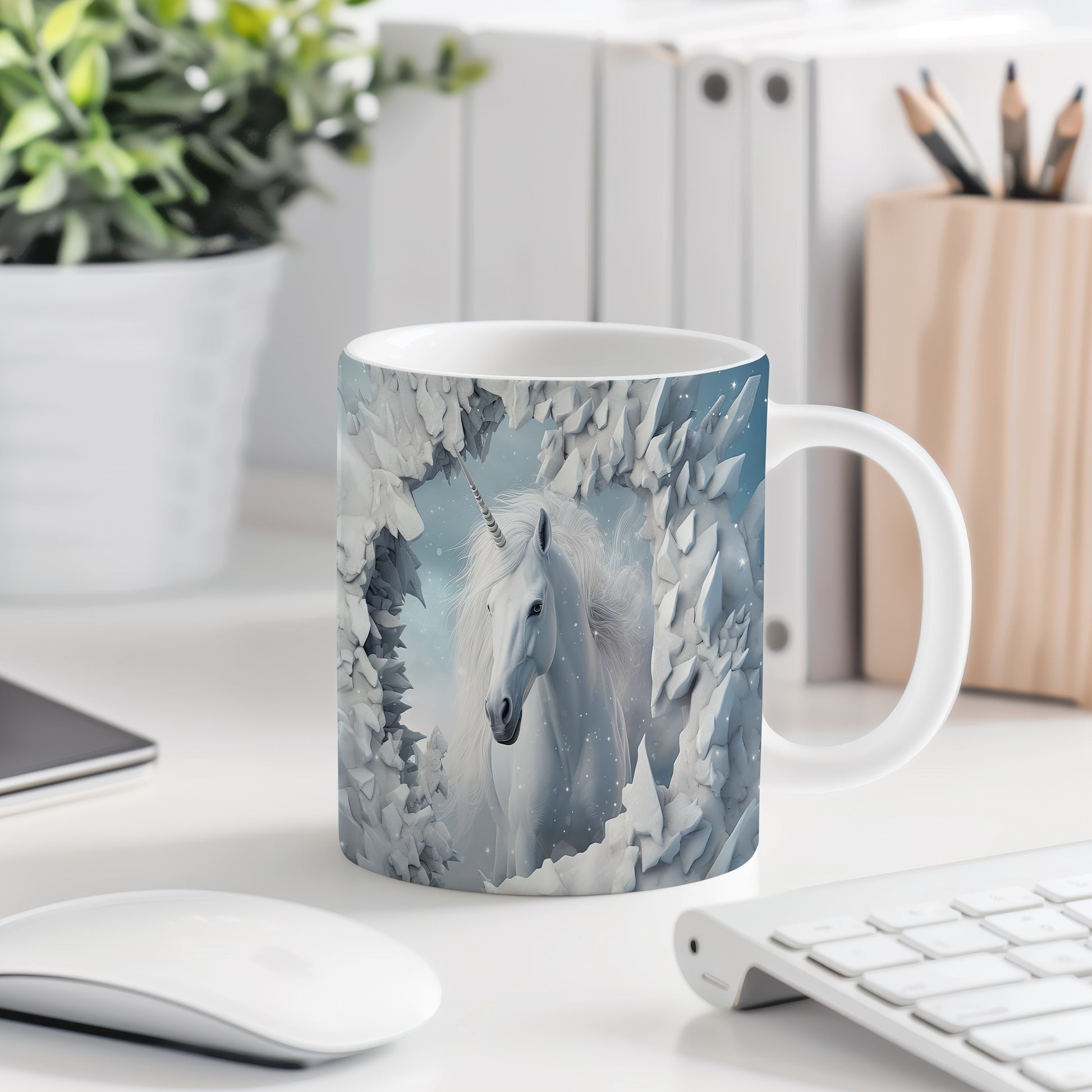 Keramický hrnek s motivem bílého jednorožce v zimní scenérii. Tento hrnek je ideální pro milovníky fantasy a kouzelných příběhů, skvělý tip na dárek pro děti i dospělé. Materiál: keramika. Objem: 330 ml. Vhodné do myčky i mikrovlnky. Používání tohoto hrnku přinese do vašeho dne kousek magie.