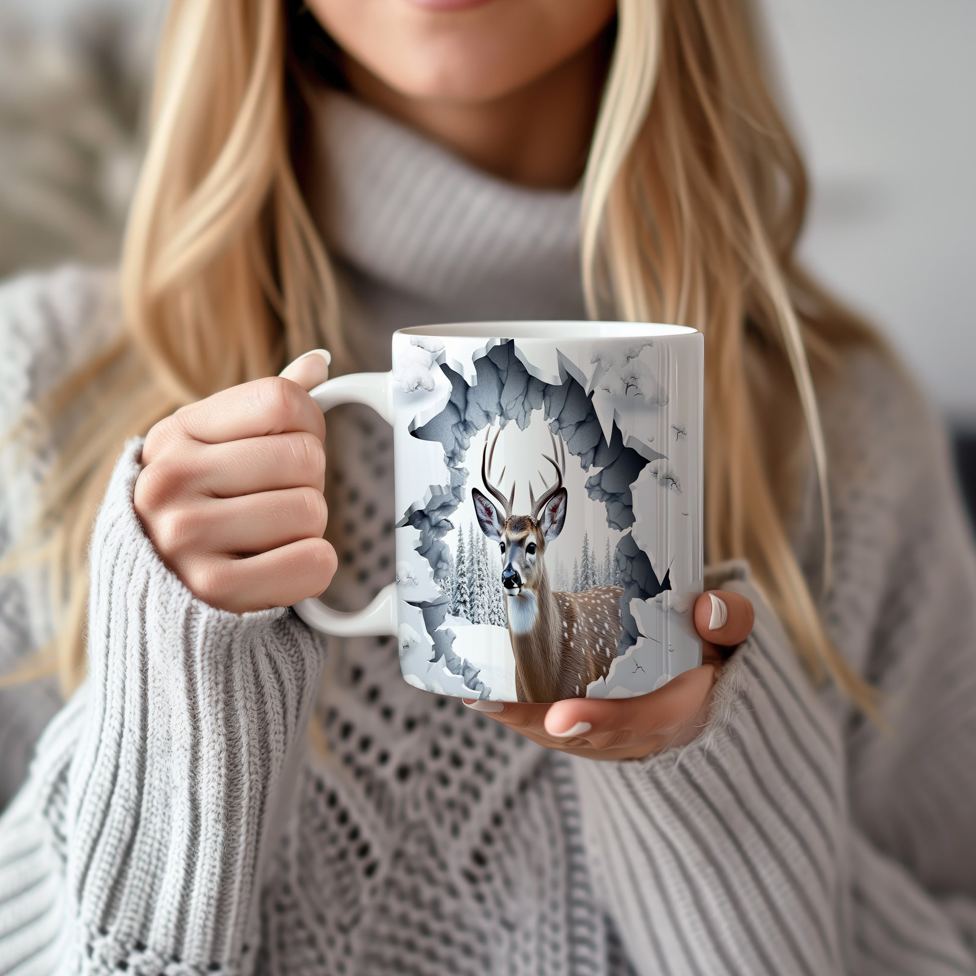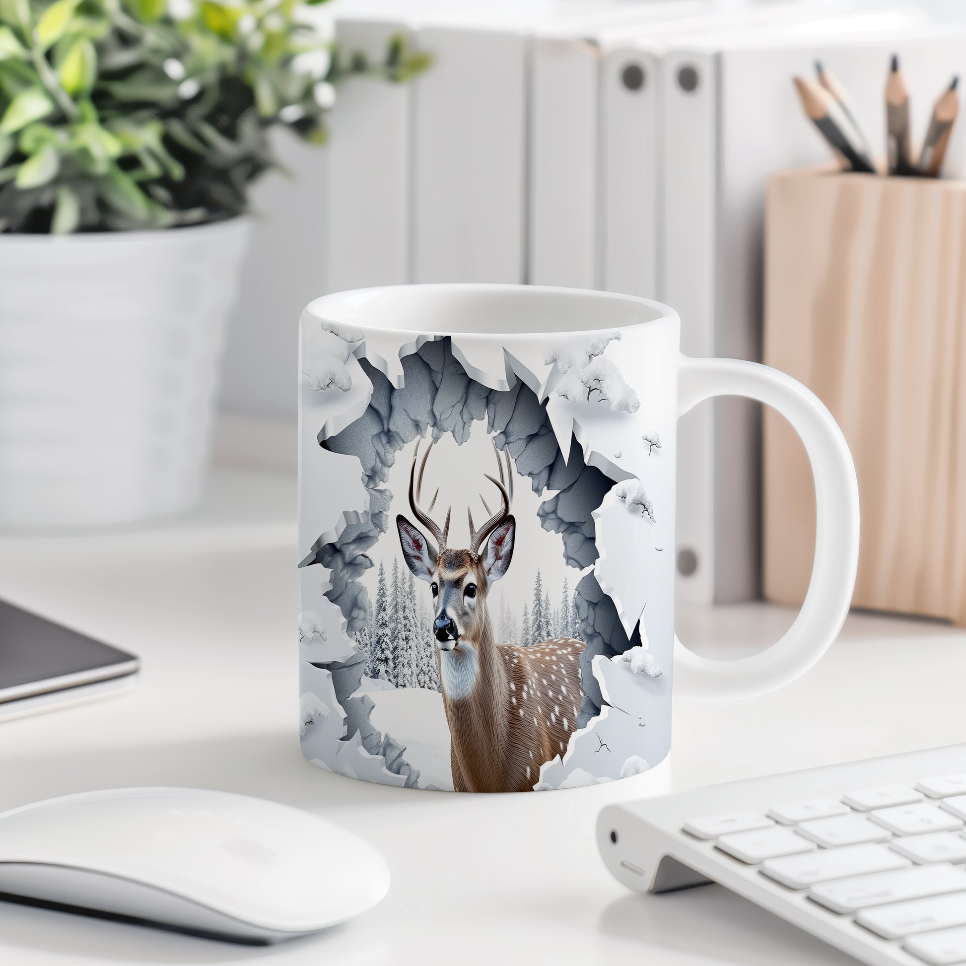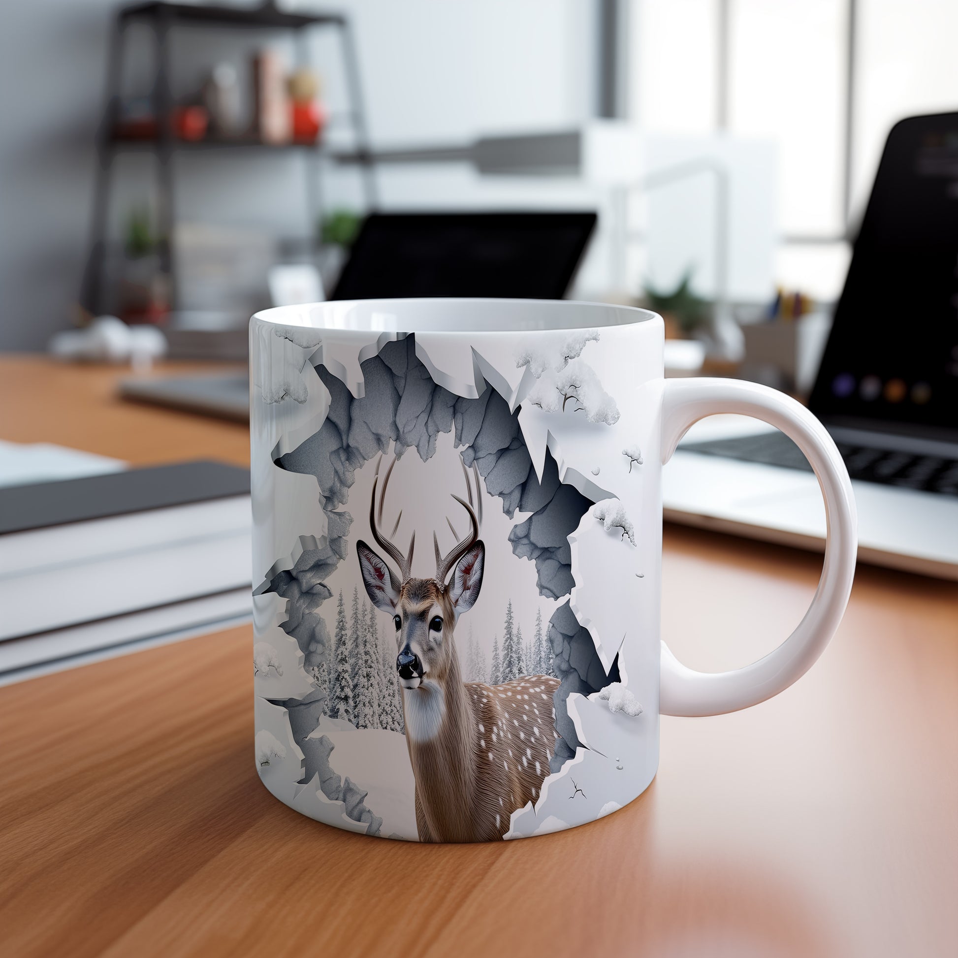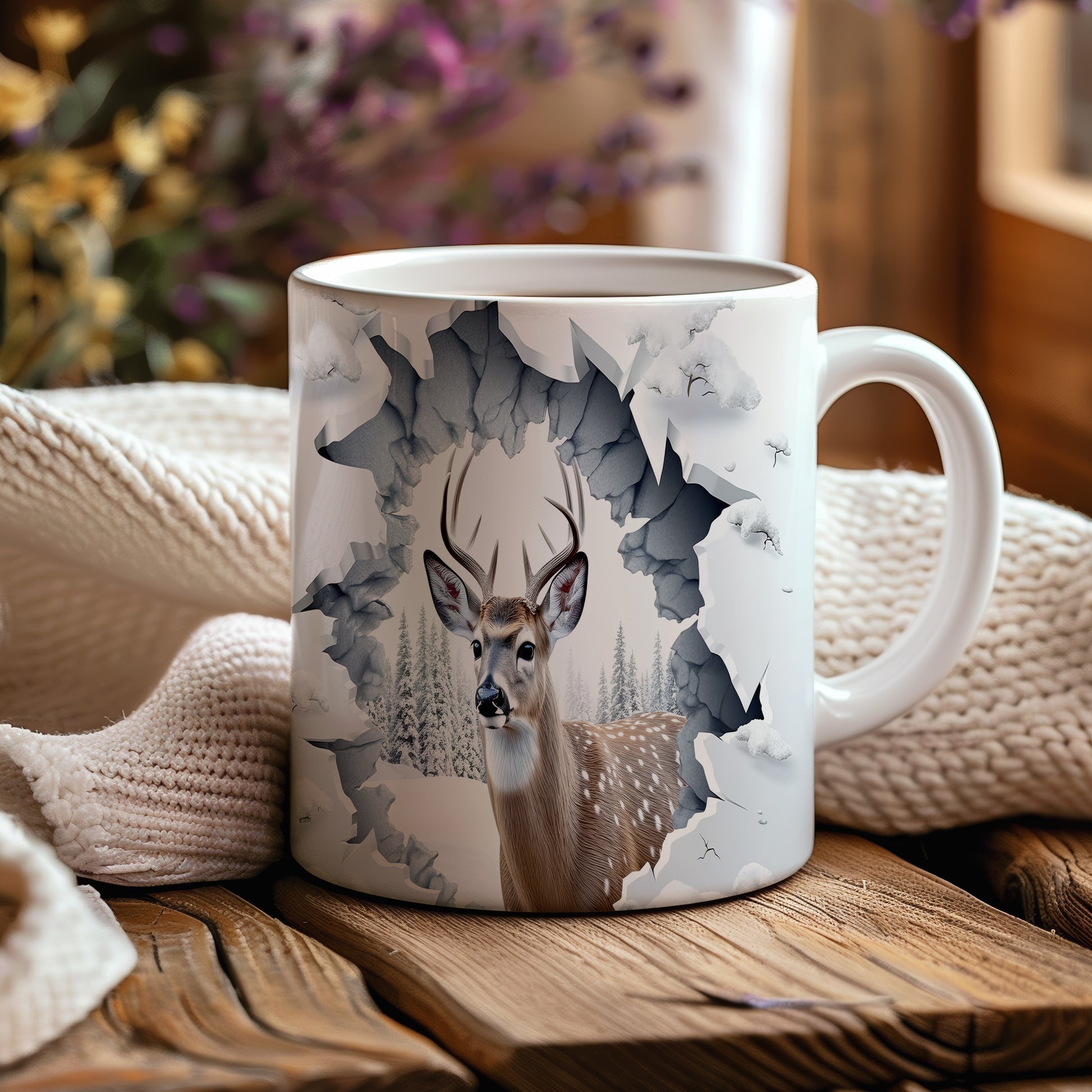 Keramický hrnek s realistickým motivem jelena, který vytváří zajímavý 3D efekt. Tento hrnek je ideální pro milovníky přírody a skvělým dárkem pro přátele či rodinu. Materiál: keramika. Objem: 330 ml. Vhodné do myčky i mikrovlnky. Díky svému designu přináší do každodenního pití kávy nebo čaje jedinečný zážitek.