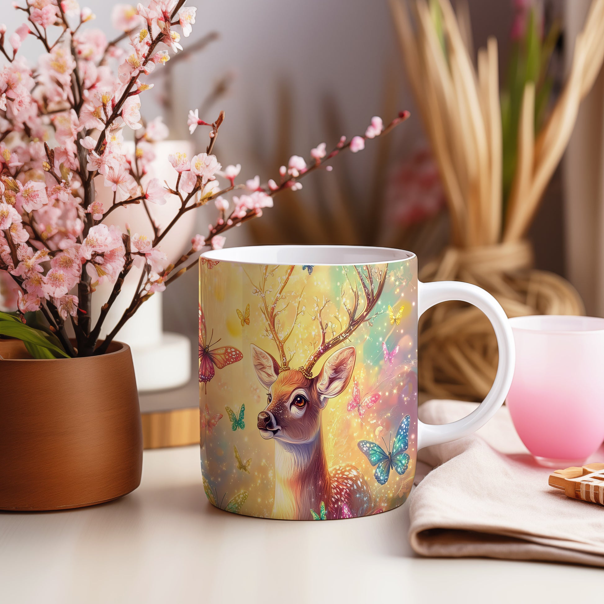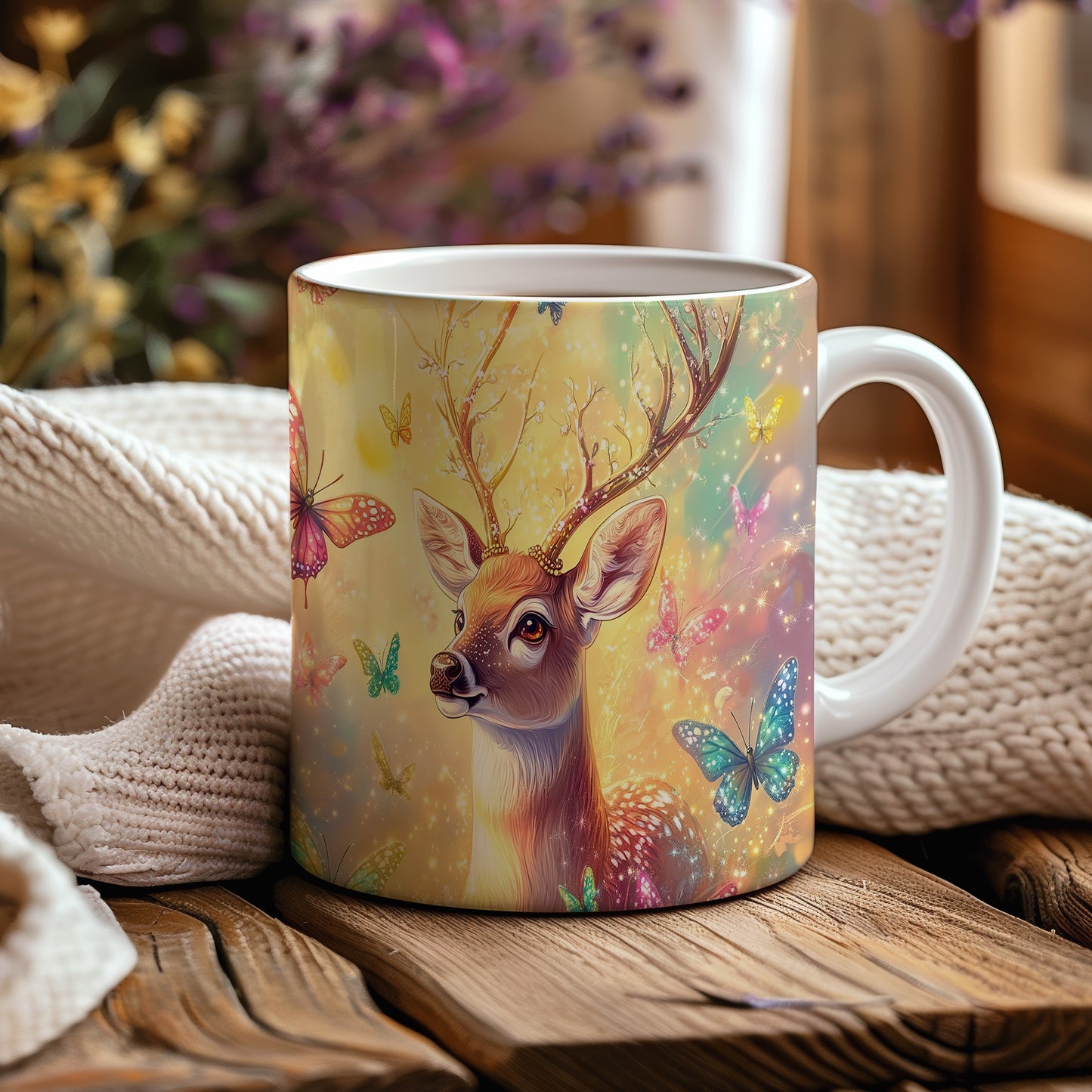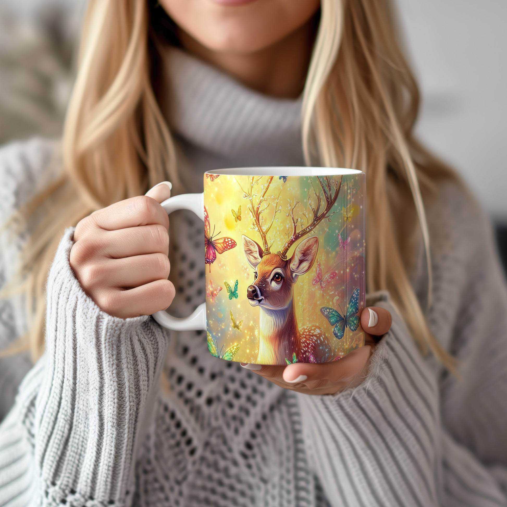 Tento keramický hrnek s motivem jelena a barevných motýlů přináší do vašeho domova přírodní krásu a eleganci. Je ideální pro milovníky přírody a skvělým dárkem pro přátele či rodinu. Materiál: keramika. Objem: 330 ml. Vhodné do myčky i mikrovlnky. Užívejte si svůj oblíbený nápoj s tímto stylovým hrnkem, který dodá každému okamžiku jedinečný šarm.