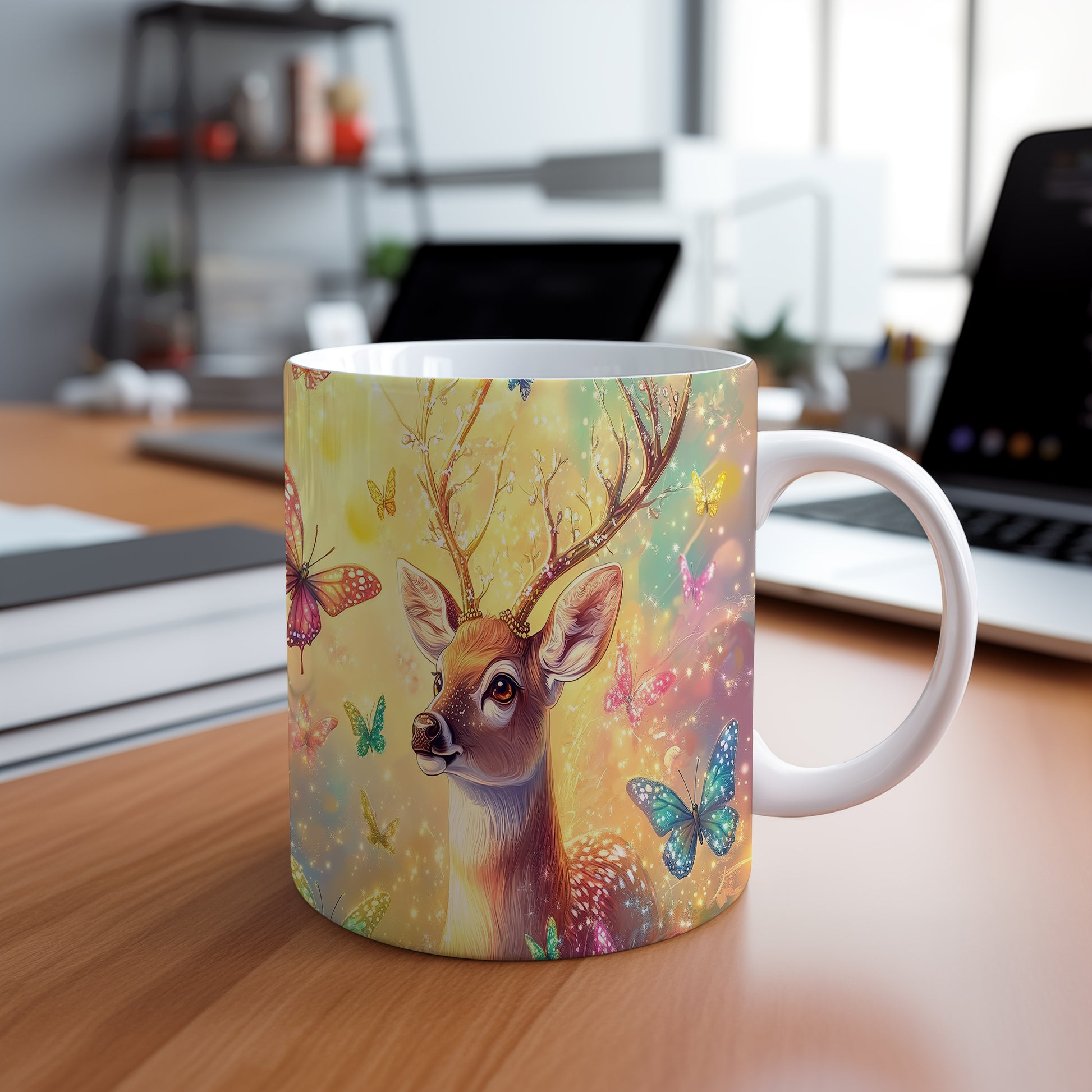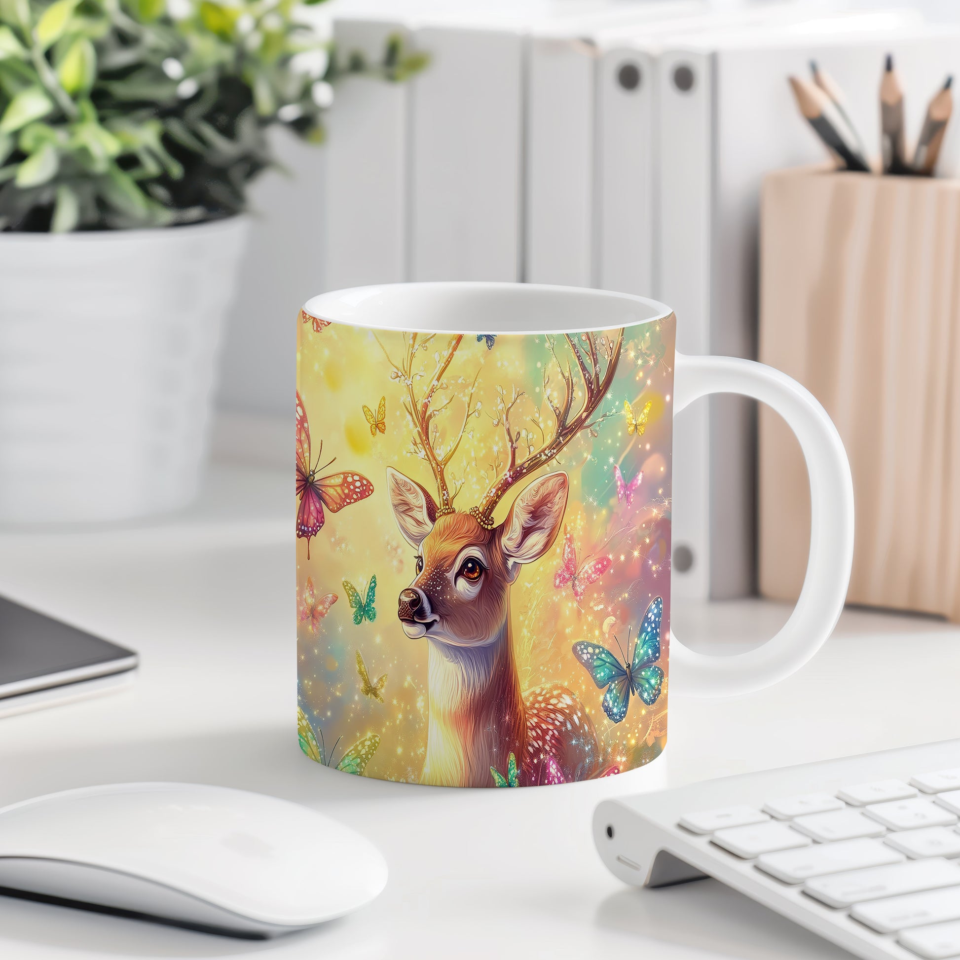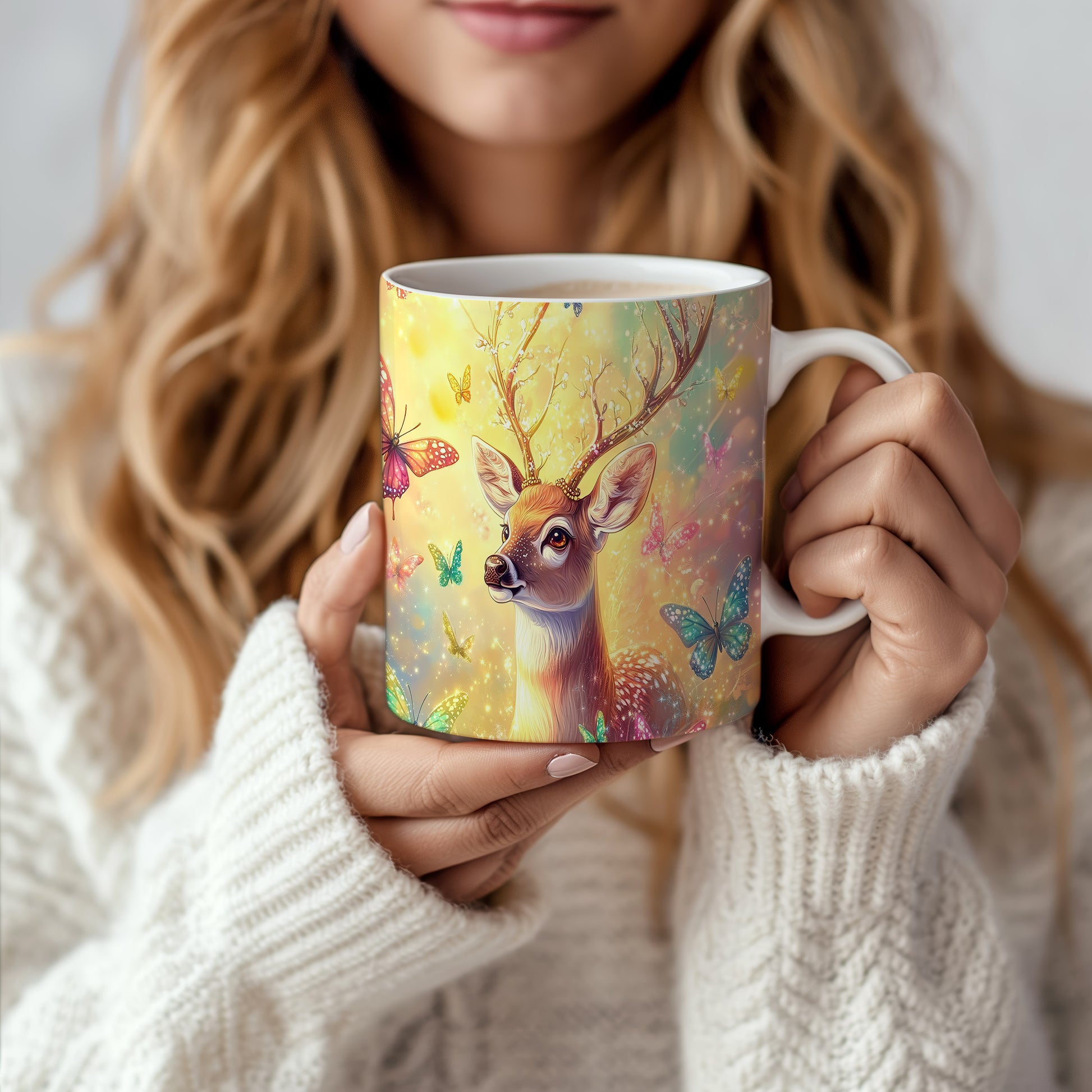 Tento keramický hrnek s motivem jelena a barevných motýlů přináší do vašeho domova přírodní krásu a eleganci. Je ideální pro milovníky přírody a skvělým dárkem pro přátele či rodinu. Materiál: keramika. Objem: 330 ml. Vhodné do myčky i mikrovlnky. Užívejte si svůj oblíbený nápoj s tímto stylovým hrnkem, který dodá každému okamžiku jedinečný šarm.