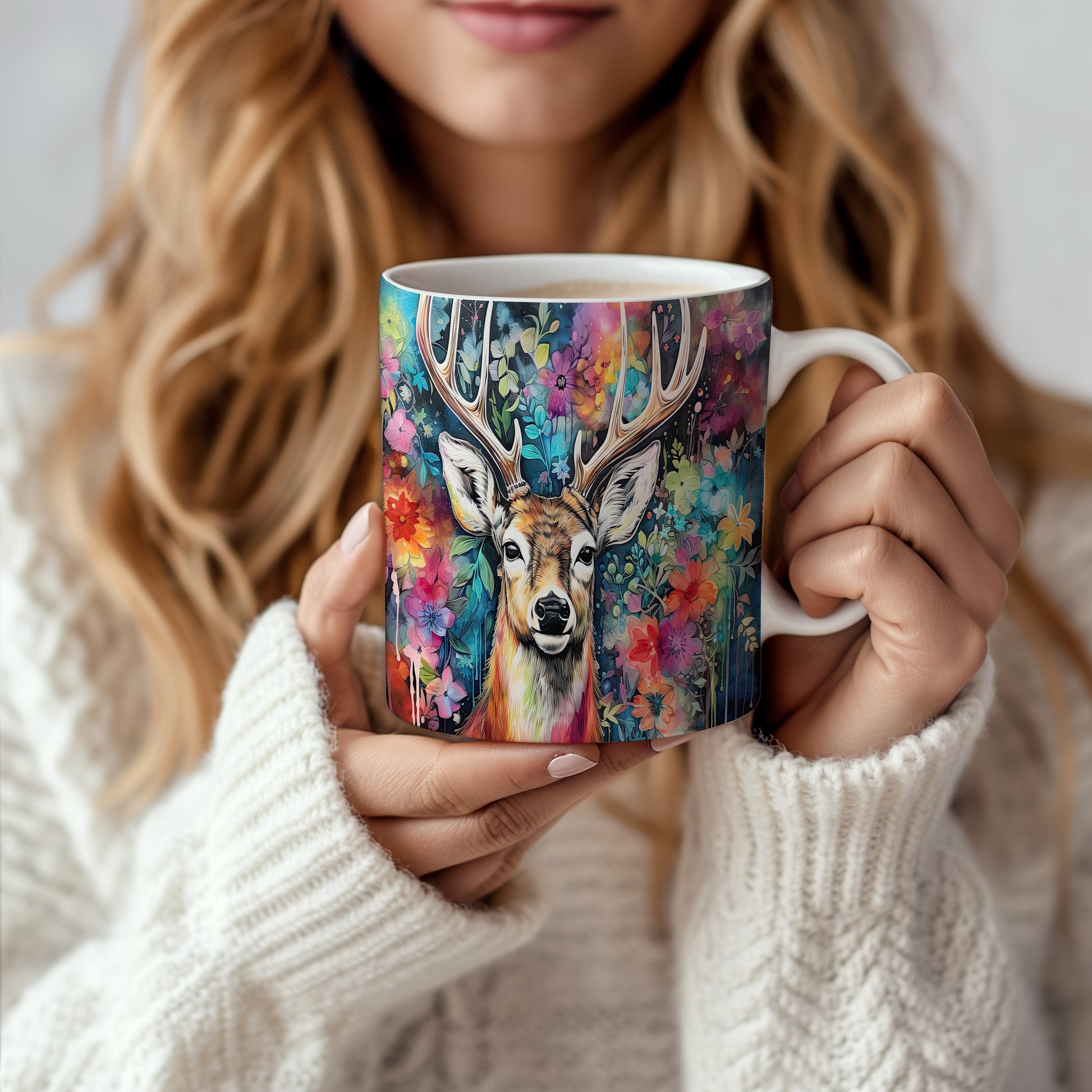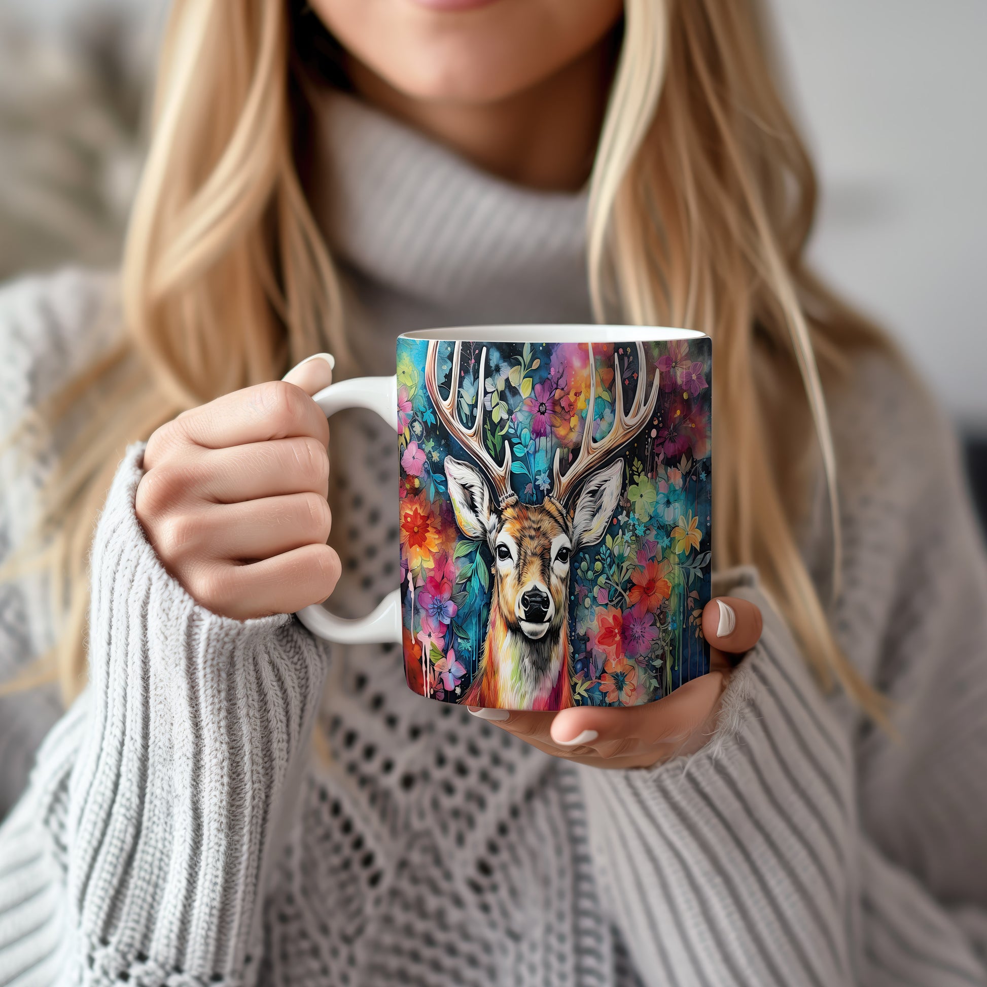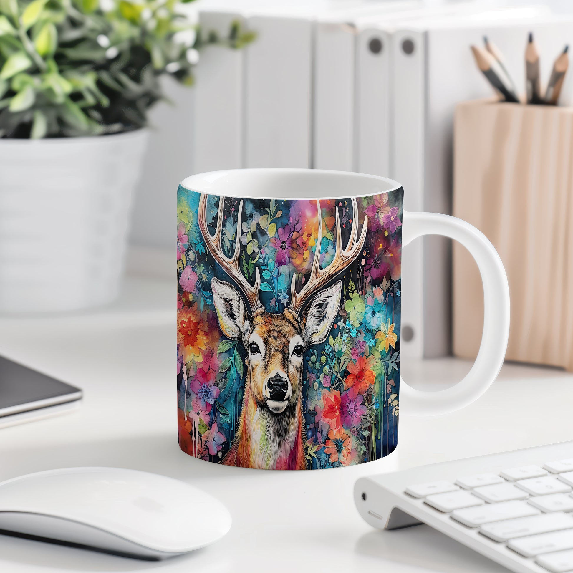 Hrnek s motivem jelena a květin je elegantním kouskem pro milovníky přírody. Tento keramický hrnek je skvělým dárkem pro přátele nebo rodinu, kteří ocení krásu přírodních motivů. Materiál: keramika. Objem: 330 ml. Vhodné do myčky i mikrovlnky. Používání tohoto hrnku přináší radost z každého doušku vaší oblíbené kávy nebo čaje.