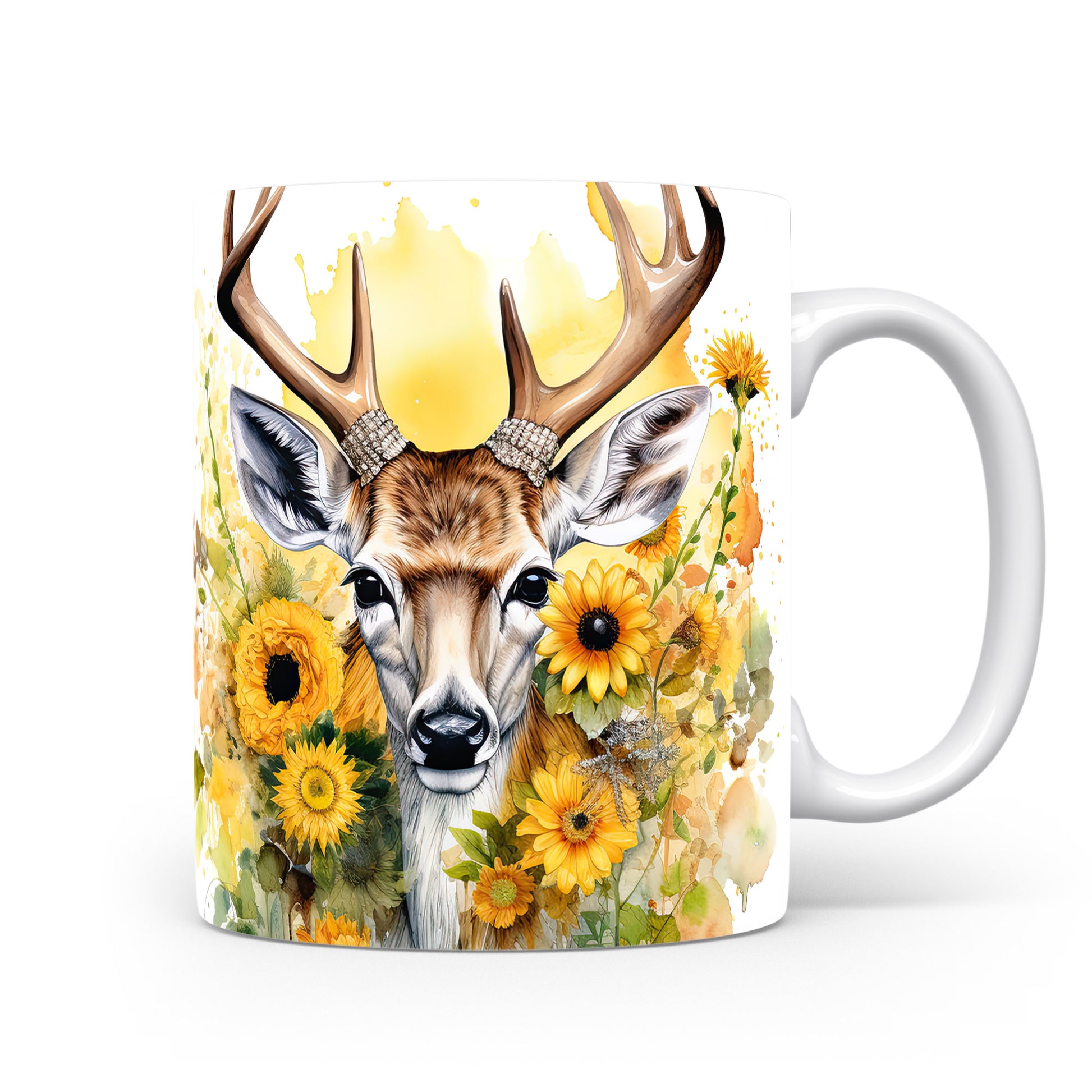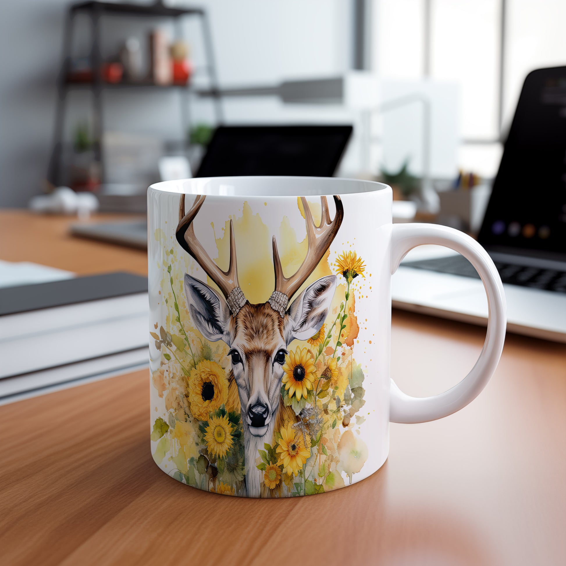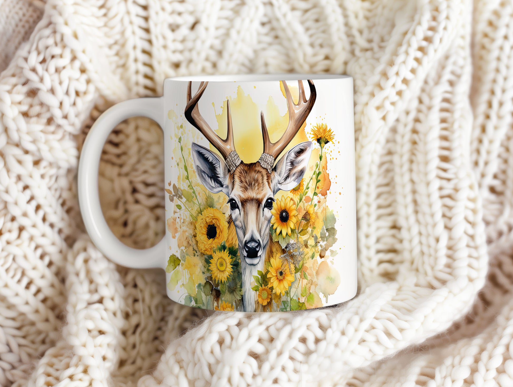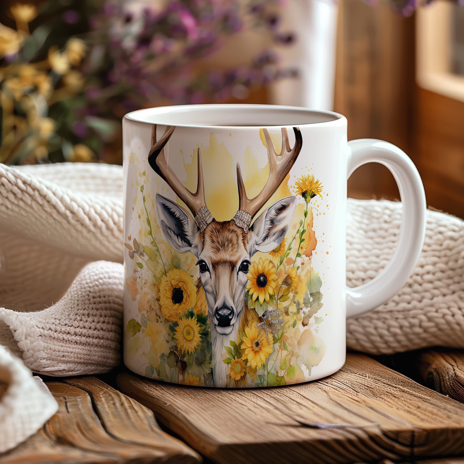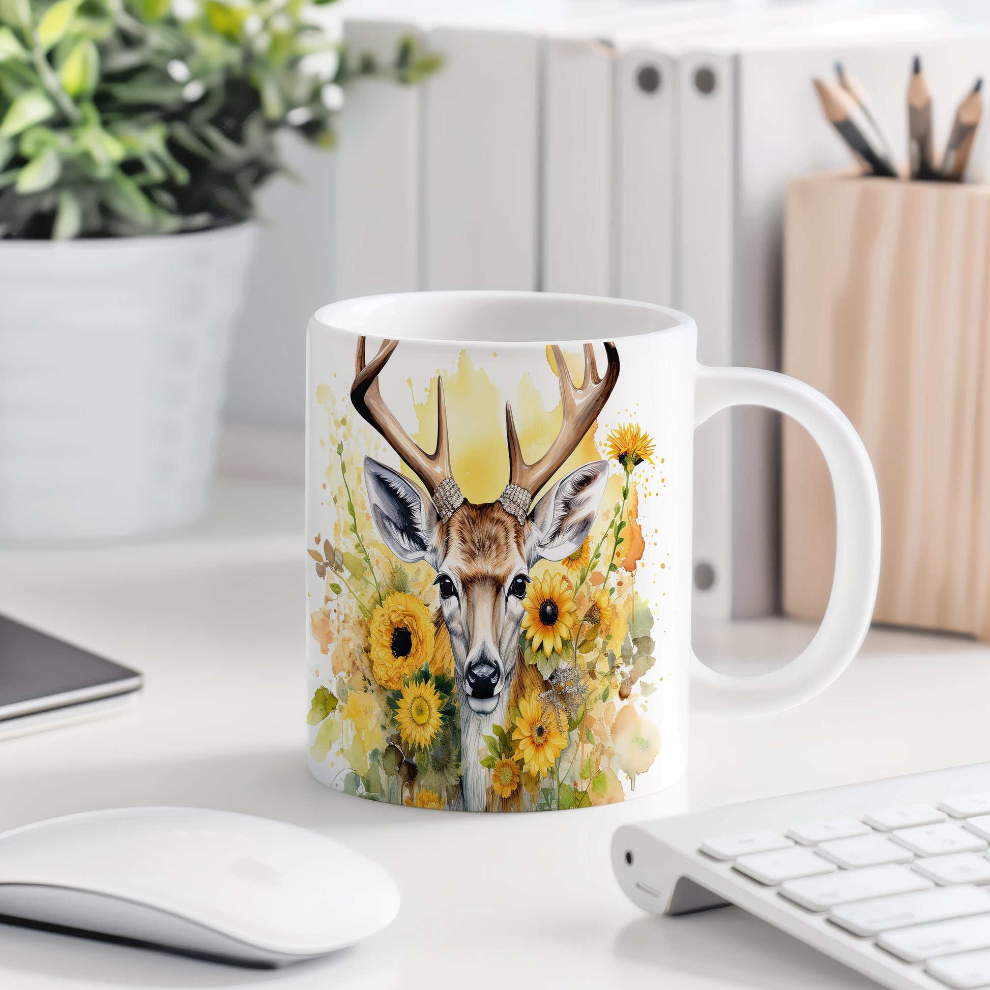 Keramický hrnek s krásným motivem jelena obklopeného slunečnicemi. Tento hrnek je ideální pro milovníky přírody a skvělý dárek pro každého, kdo si rád vychutnává svůj oblíbený nápoj. Materiál: keramika. Objem: 330 ml. Vhodné do myčky i mikrovlnky. Používání tohoto hrnku přináší radost a útulnost do každého okamžiku.