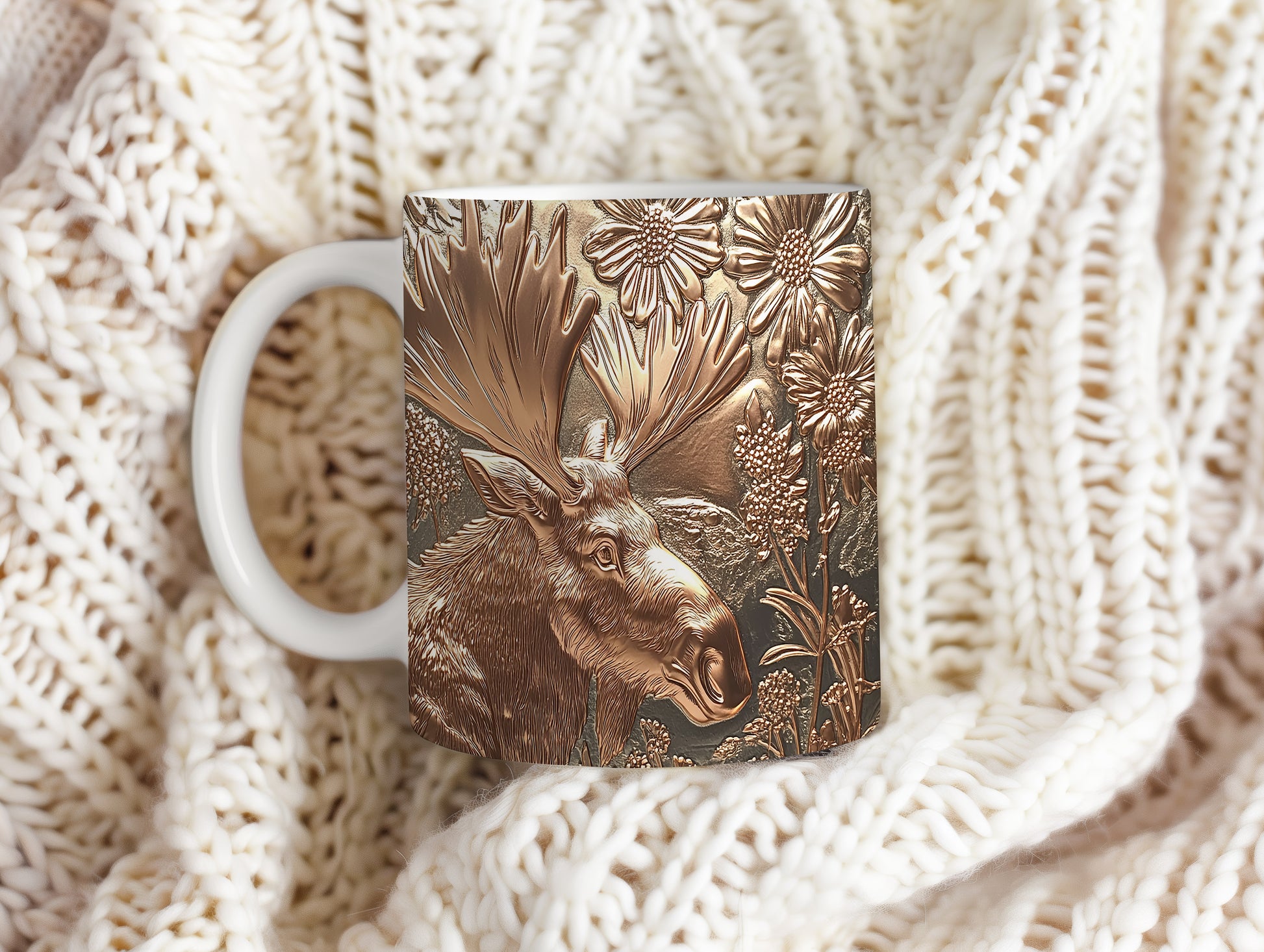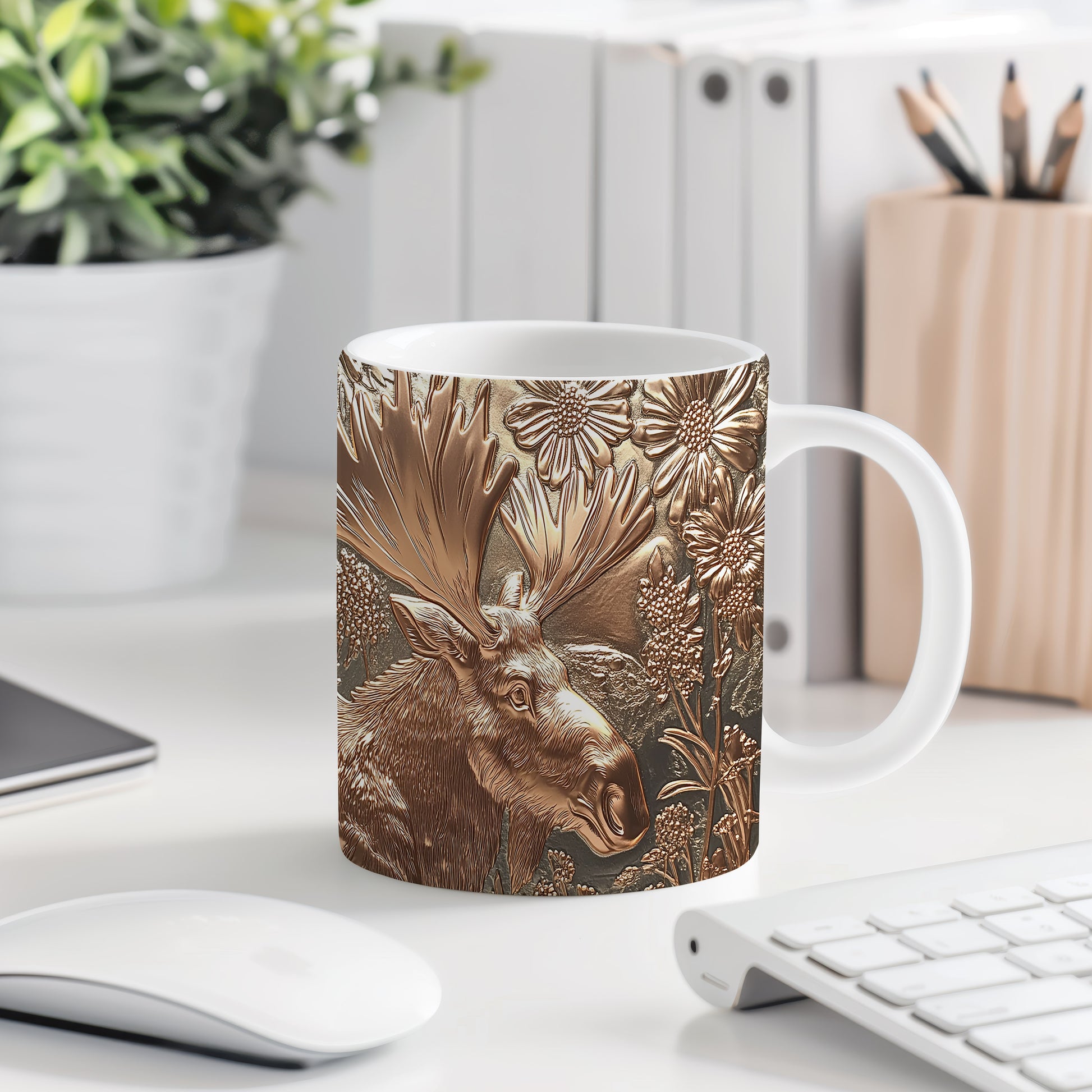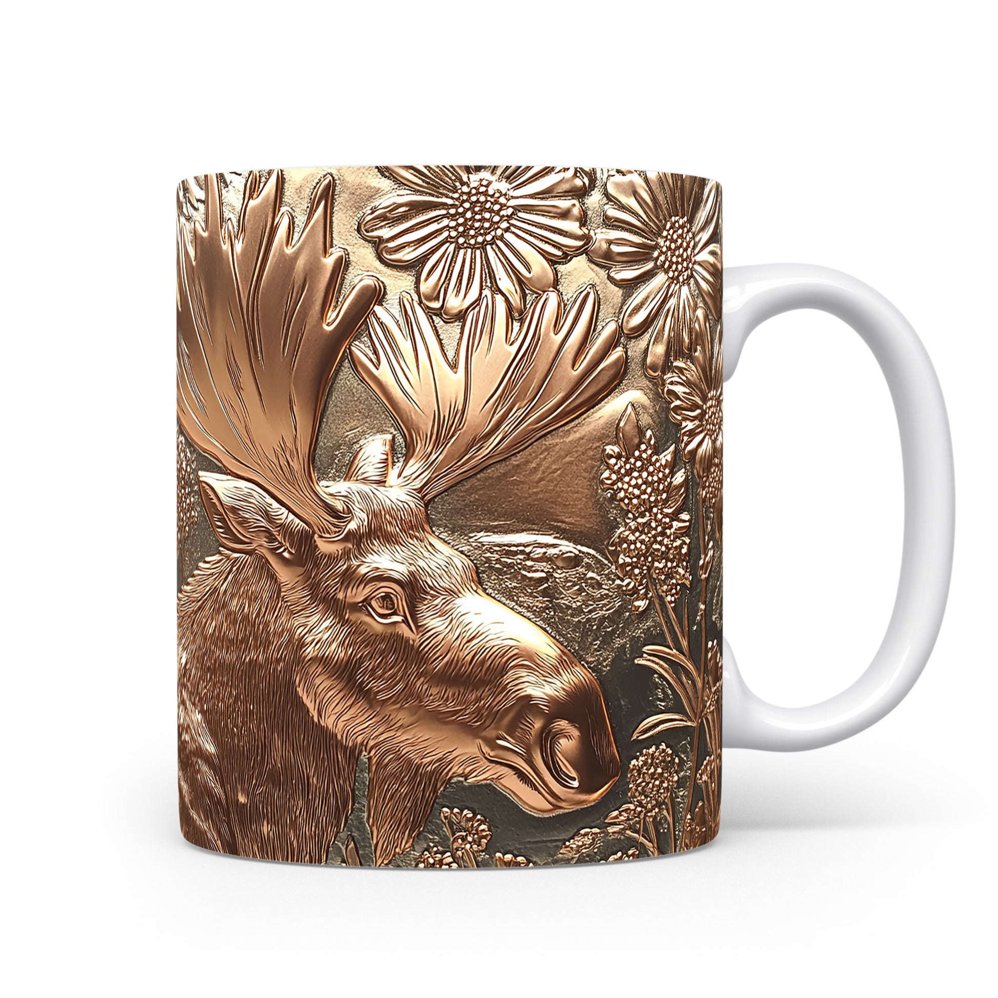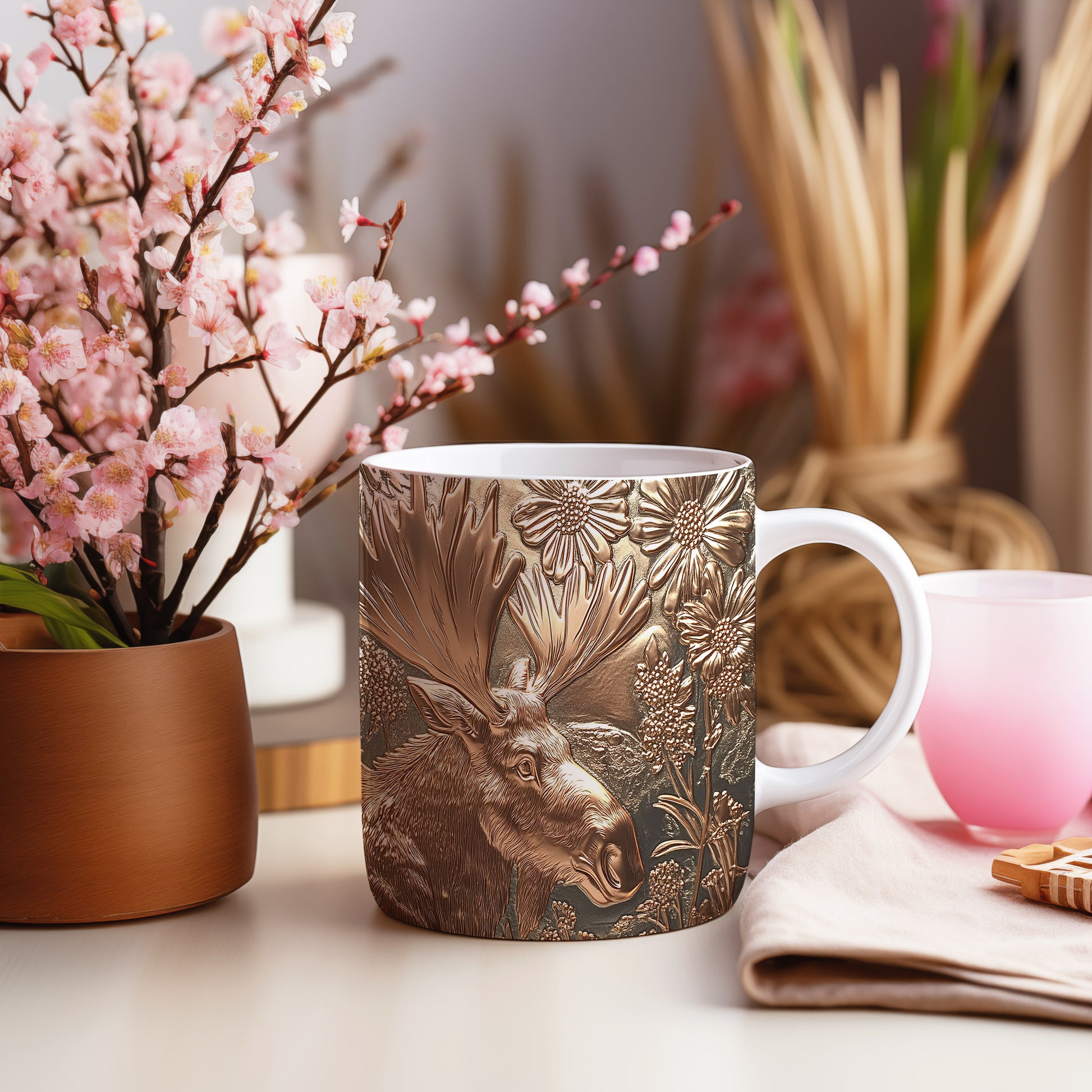Hrnek se jelenem v květinovém motivu