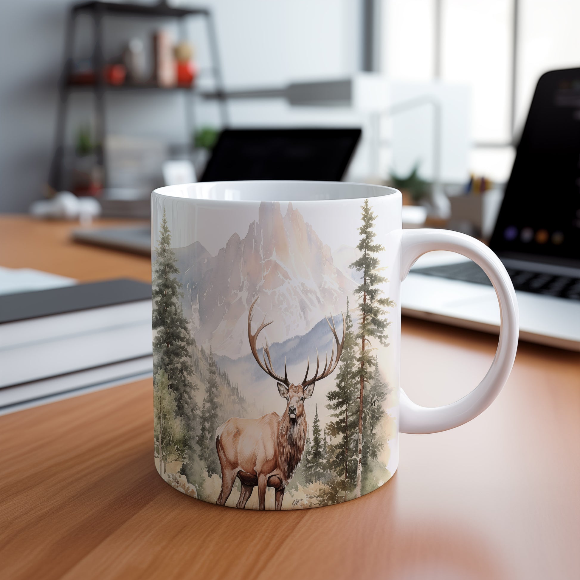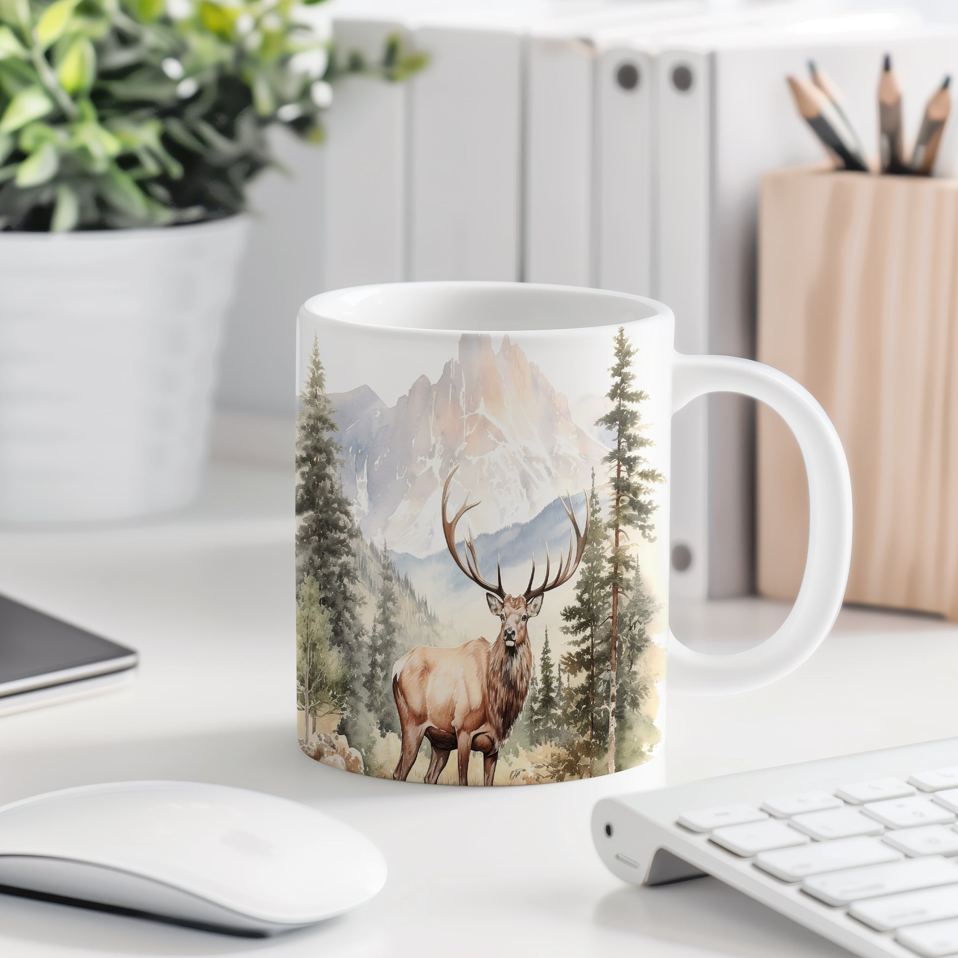 Keramický hrnek s realistickým motivem jelena v lese. Tento hrnek je ideální pro milovníky přírody a skvělým dárkem pro každého, kdo ocení krásu divoké zvěře. Materiál: keramika. Objem: 330 ml. Vhodné do myčky i mikrovlnky. Užívejte si své oblíbené nápoje s tímto stylovým hrnkem.