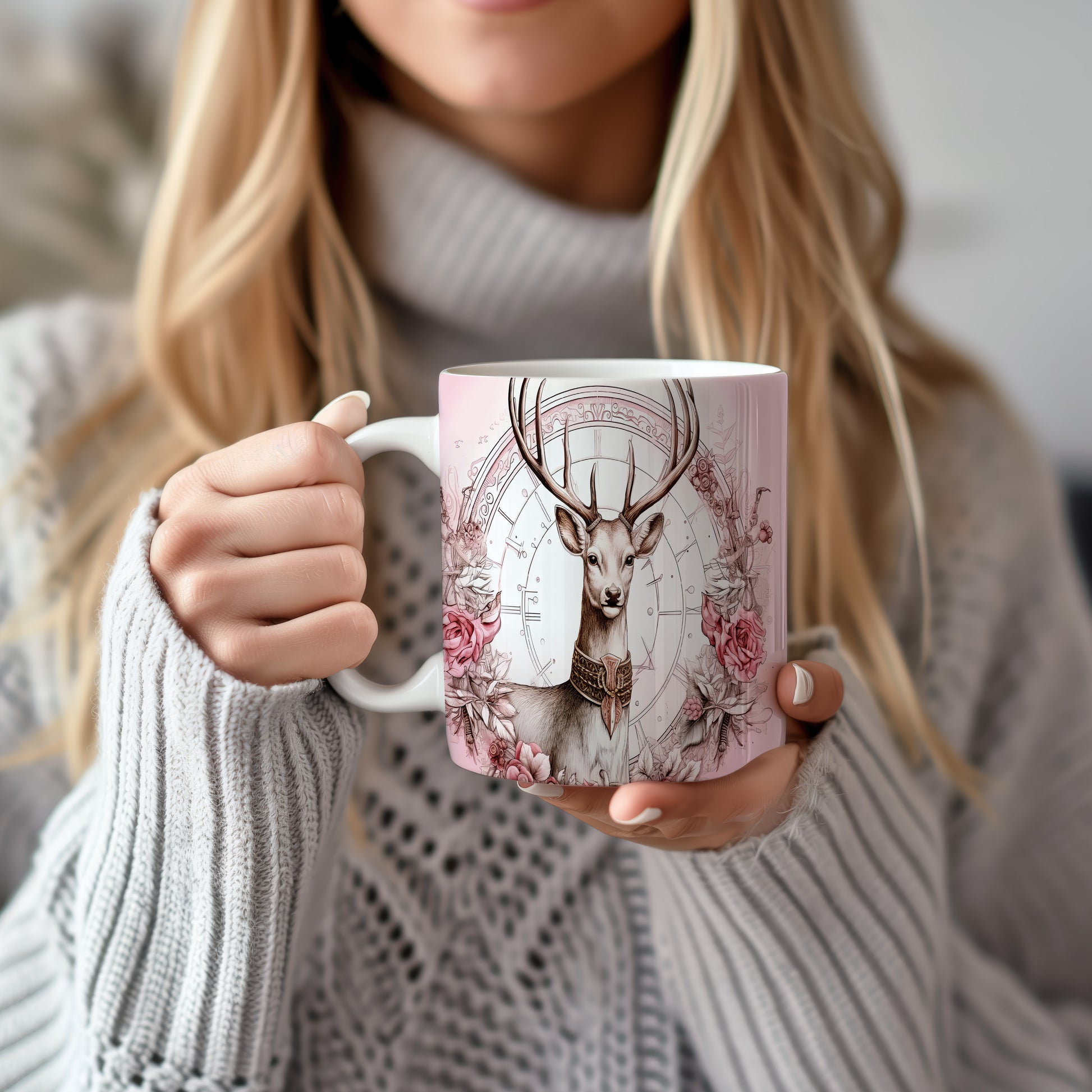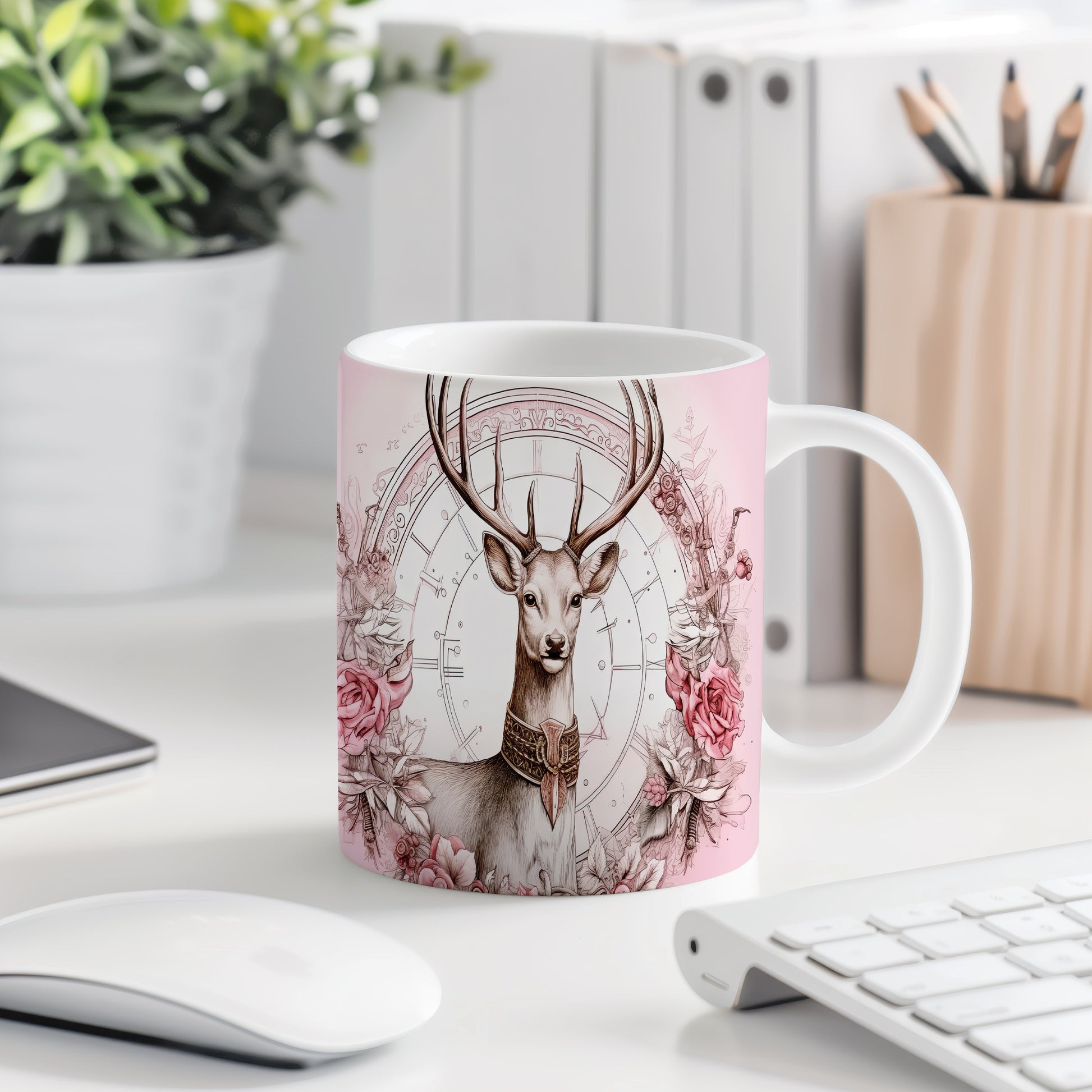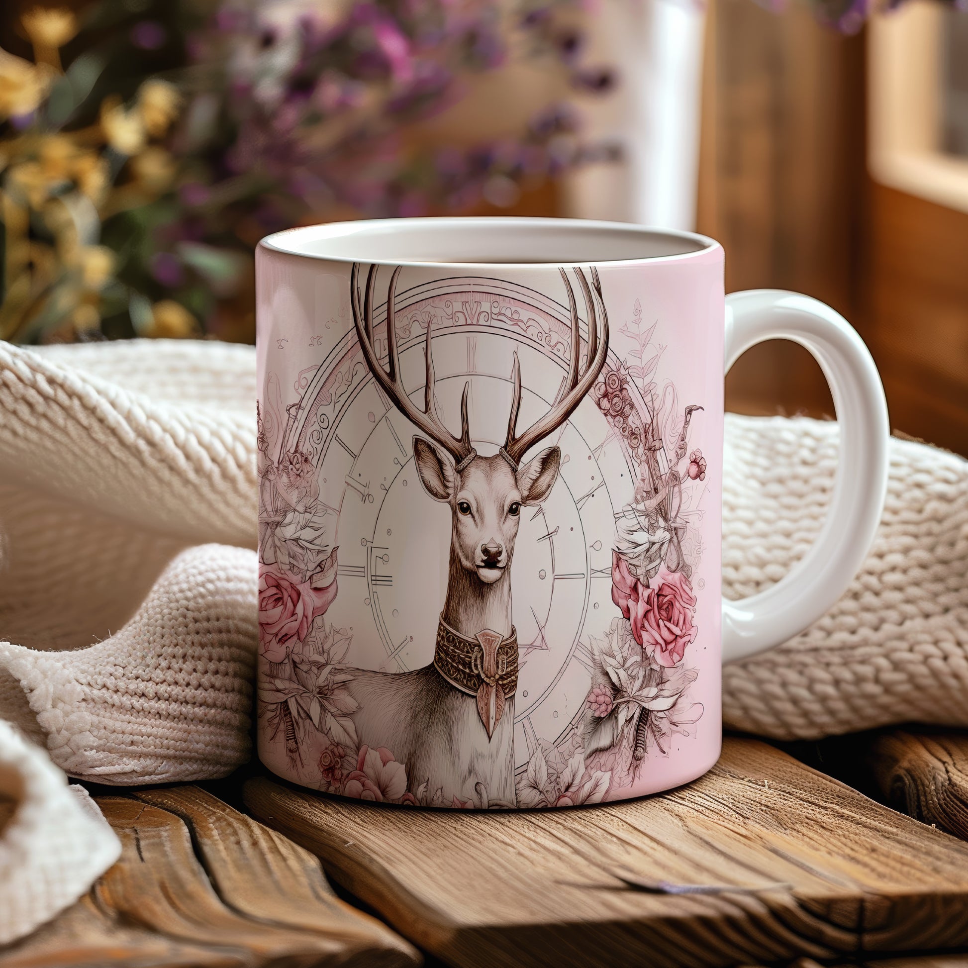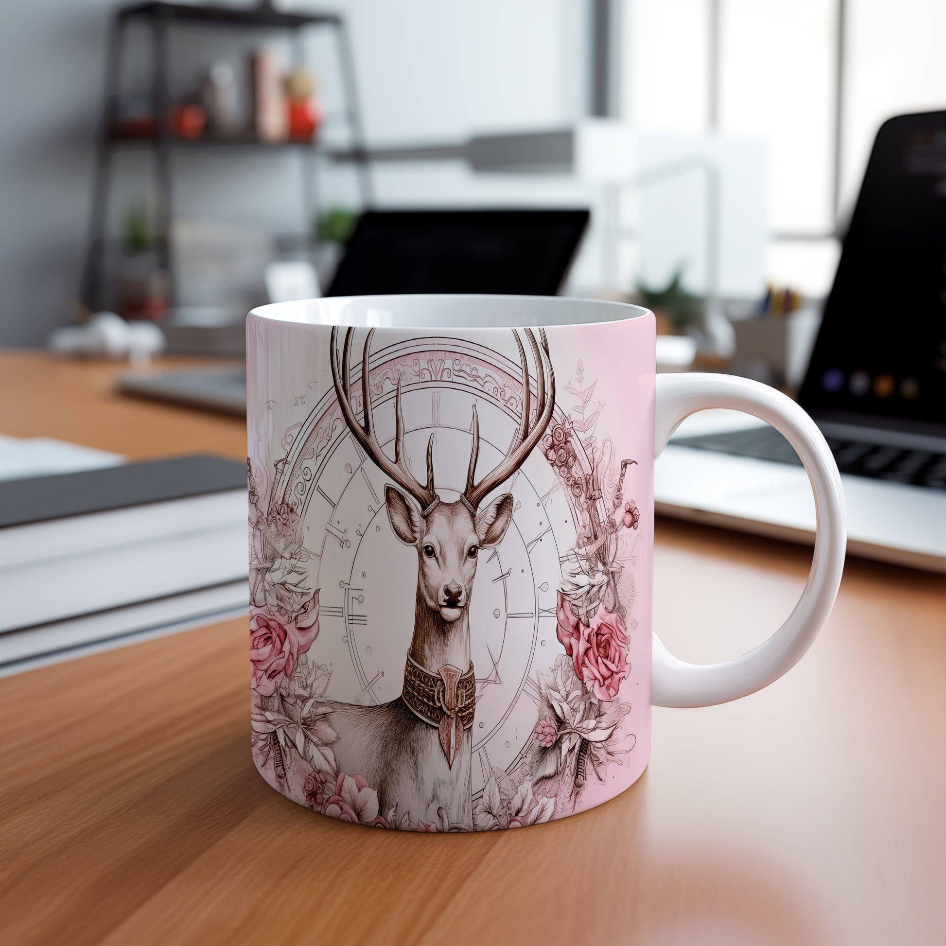 Tento hrnek s motivem jelena obklopeného květinami a hodinovým kolečkem přináší do vašeho domova přírodní krásu. Je ideální pro milovníky přírody a skvělým dárkem pro přátele či rodinu. Materiál: keramika. Objem: 330 ml. Vhodné do myčky i mikrovlnky. Díky svému designu a praktičnosti se stane oblíbeným společníkem při každém doušku vašeho oblíbeného nápoje.
