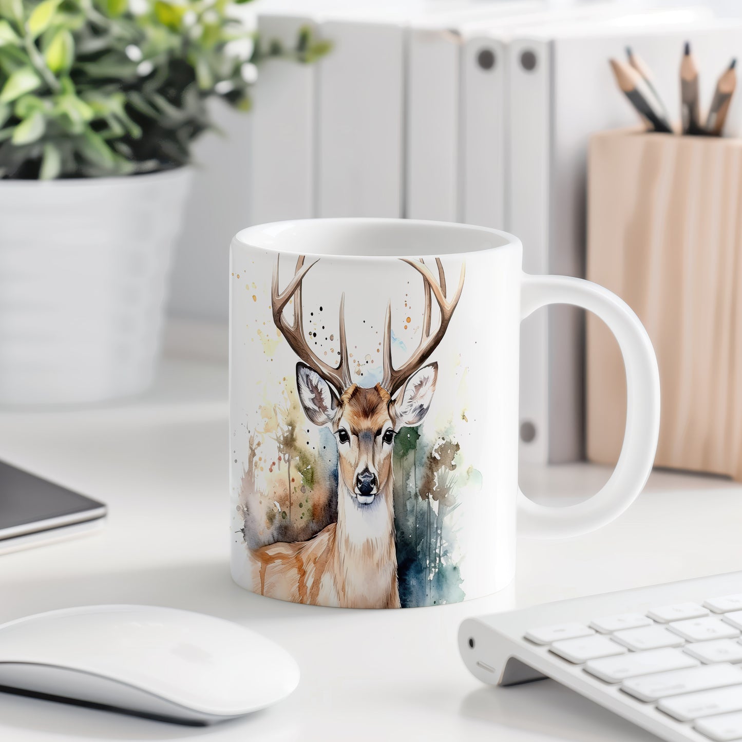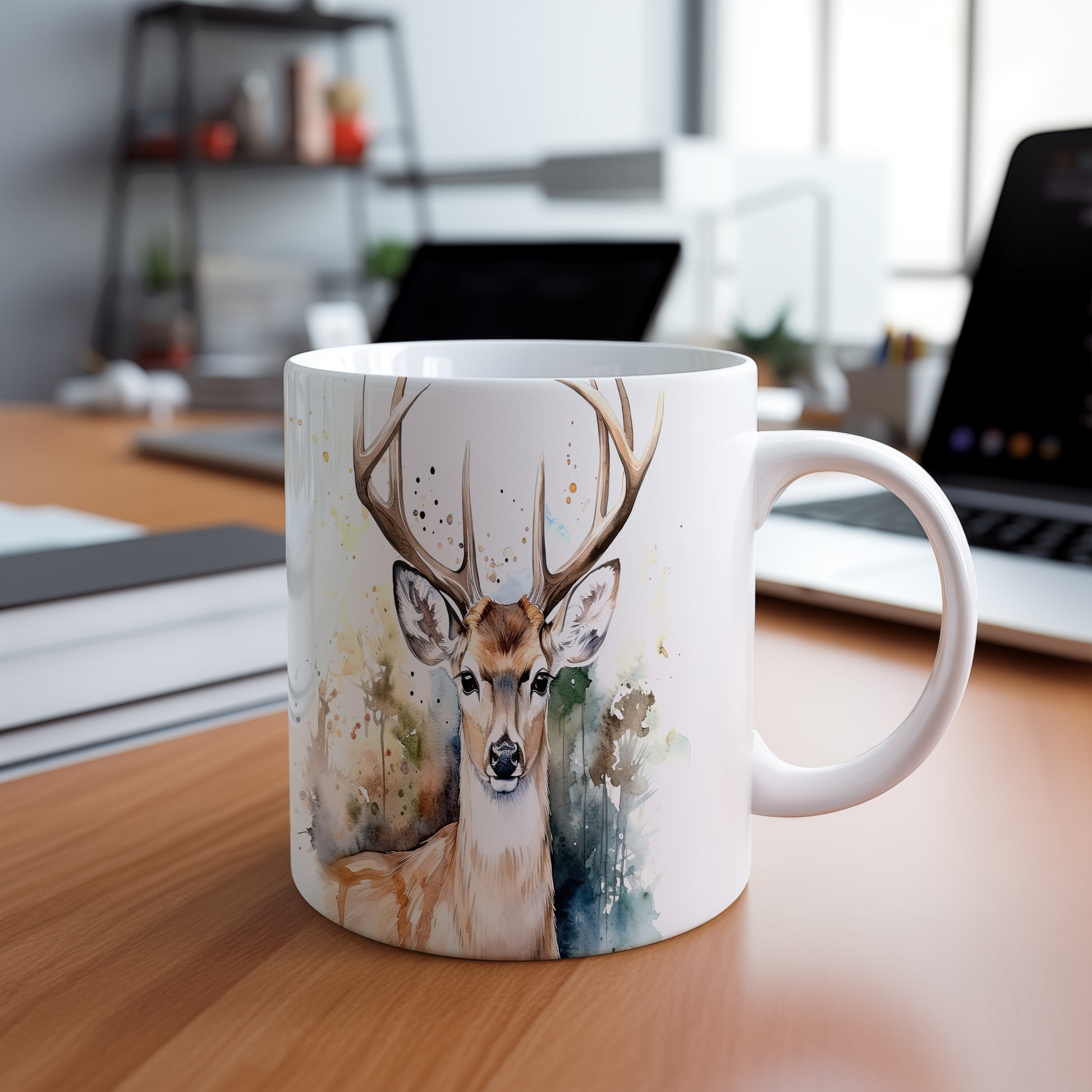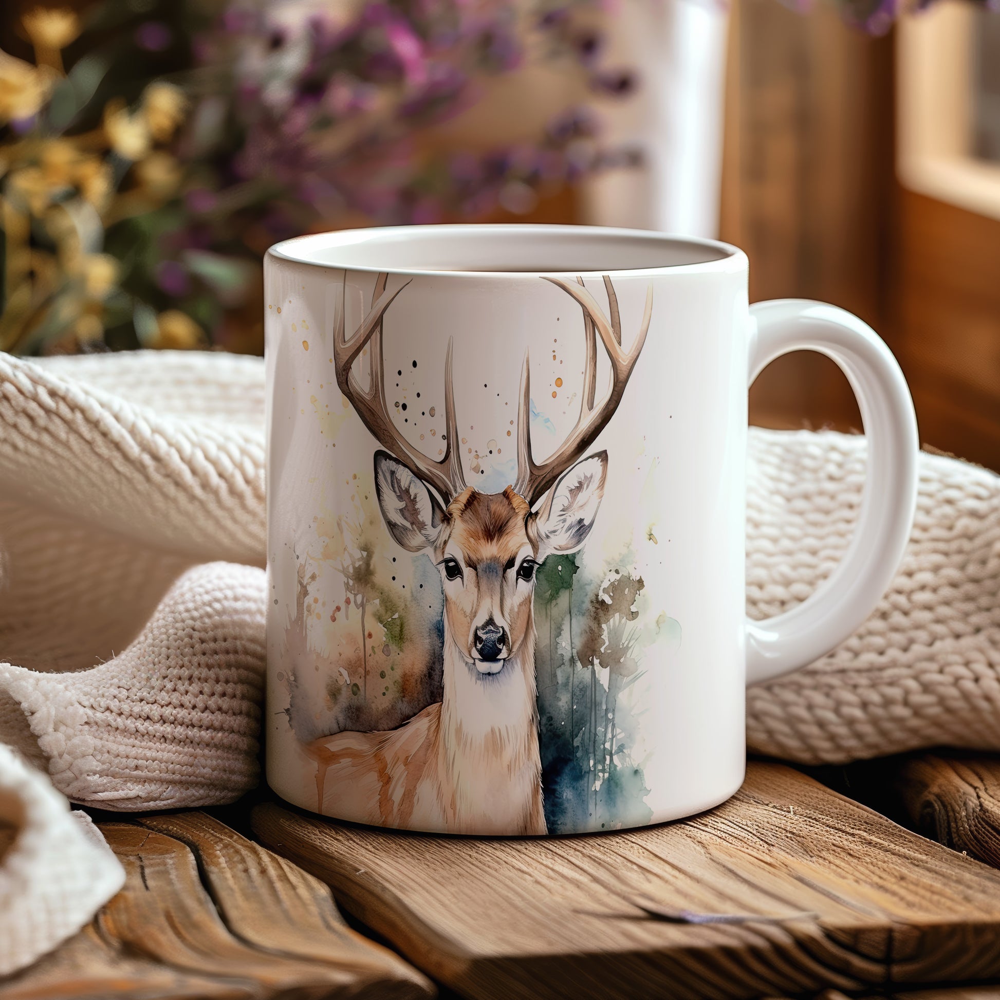 Tento krásný hrnek zobrazuje jelena na pozadí vodových barev, což mu dodává jedinečný a umělecký vzhled. Je ideální pro milovníky přírody a zvířat, skvělý tip na dárek pro přátele nebo rodinu. Materiál: keramika. Objem: 330 ml. Vhodné do myčky i mikrovlnky. Používání tohoto hrnku přináší radost z každého doušku.