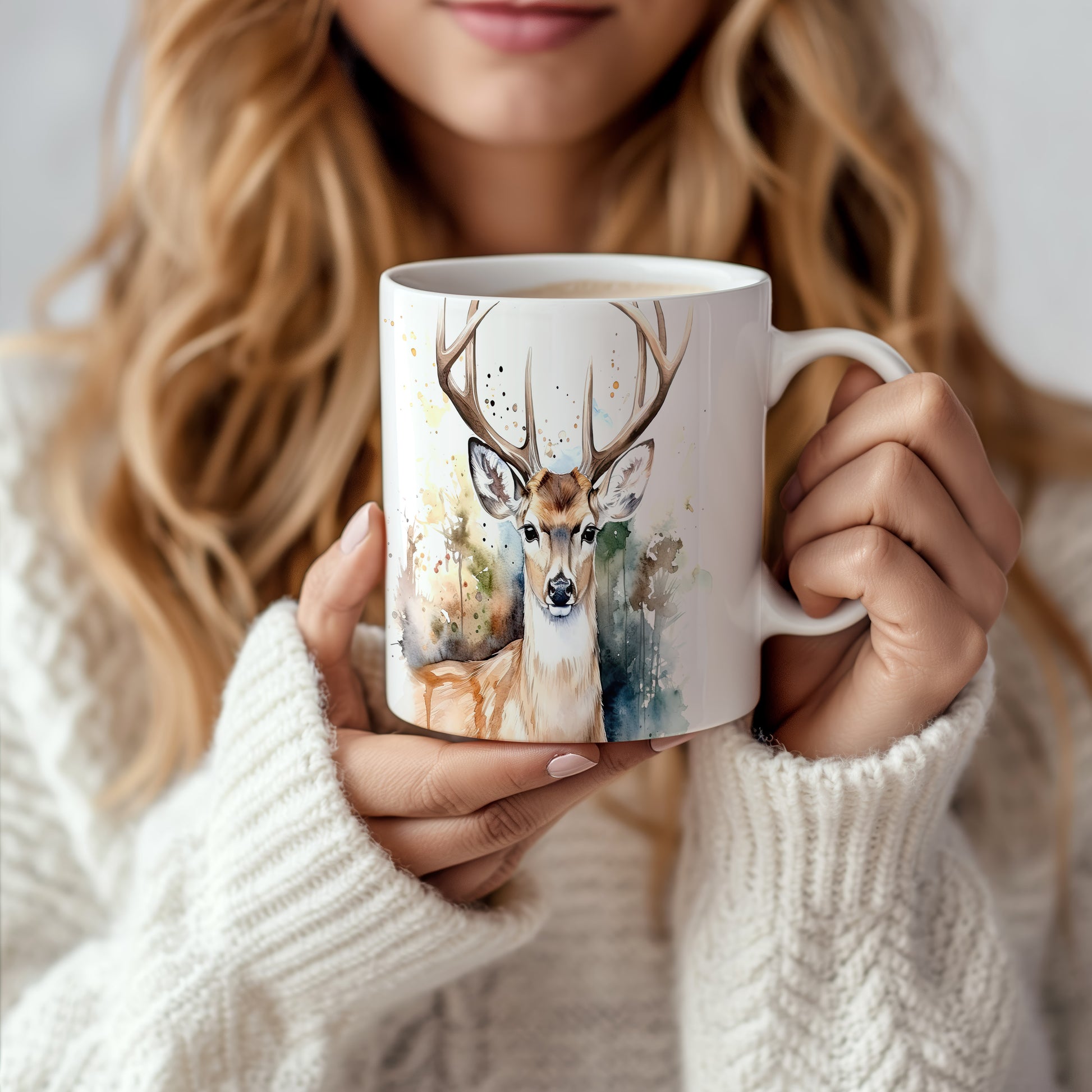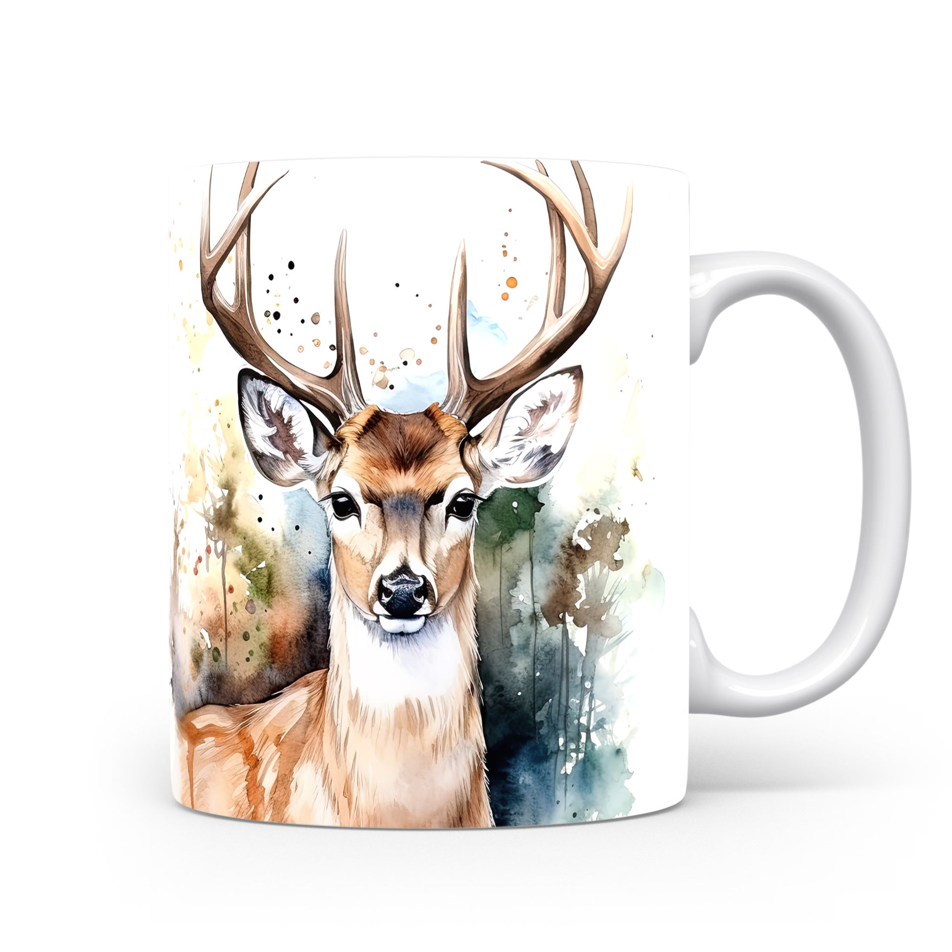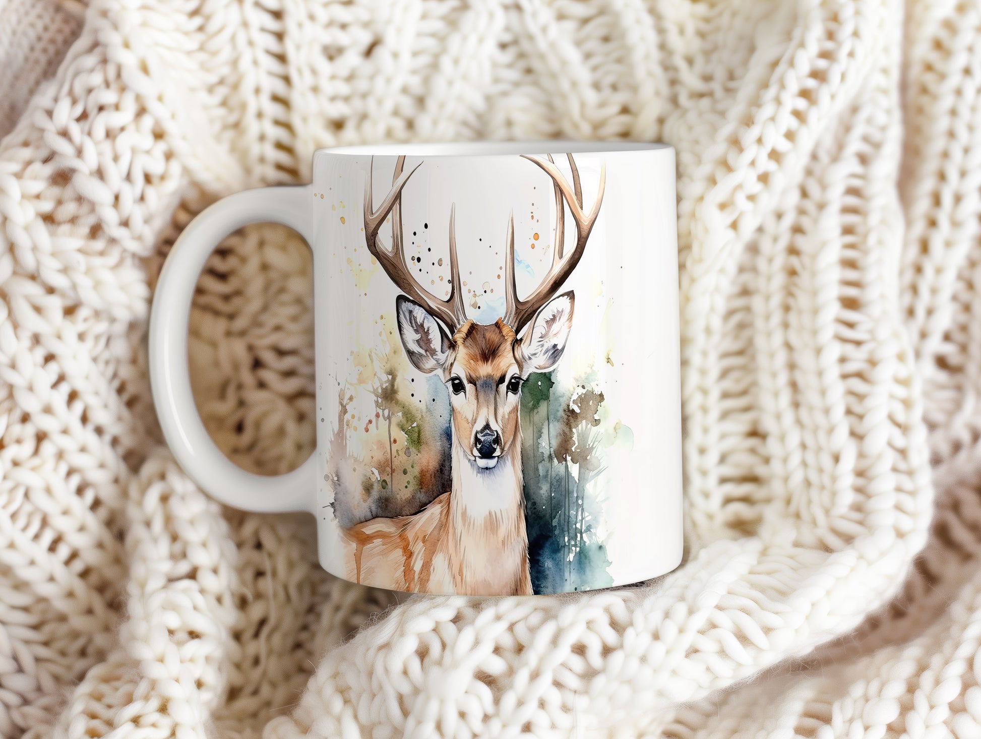 Tento krásný hrnek zobrazuje jelena na pozadí vodových barev, což mu dodává jedinečný a umělecký vzhled. Je ideální pro milovníky přírody a zvířat, skvělý tip na dárek pro přátele nebo rodinu. Materiál: keramika. Objem: 330 ml. Vhodné do myčky i mikrovlnky. Používání tohoto hrnku přináší radost z každého doušku.