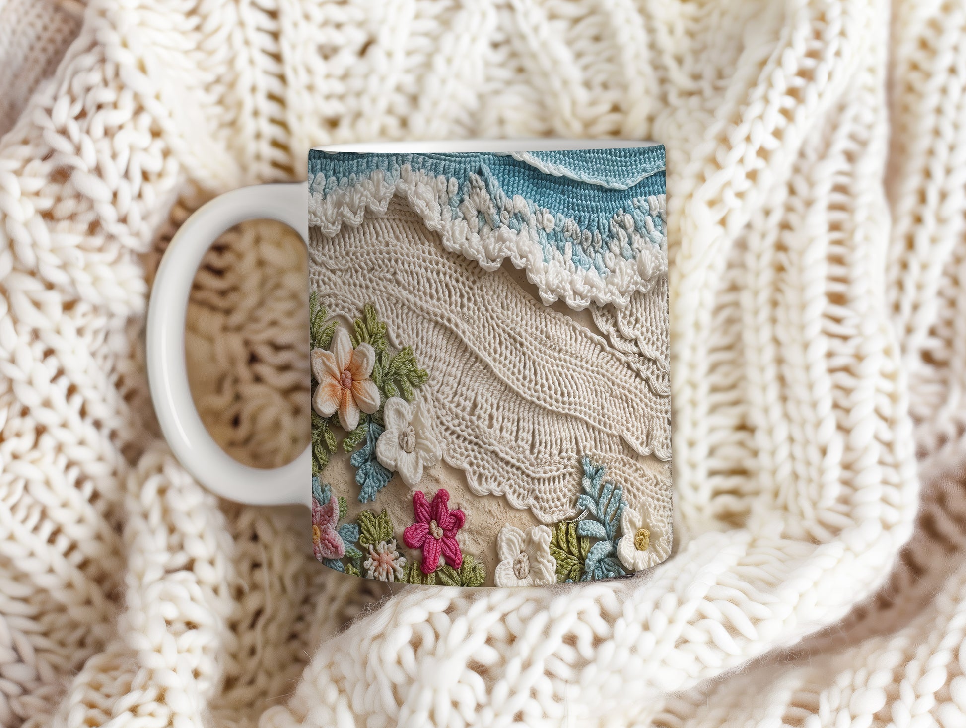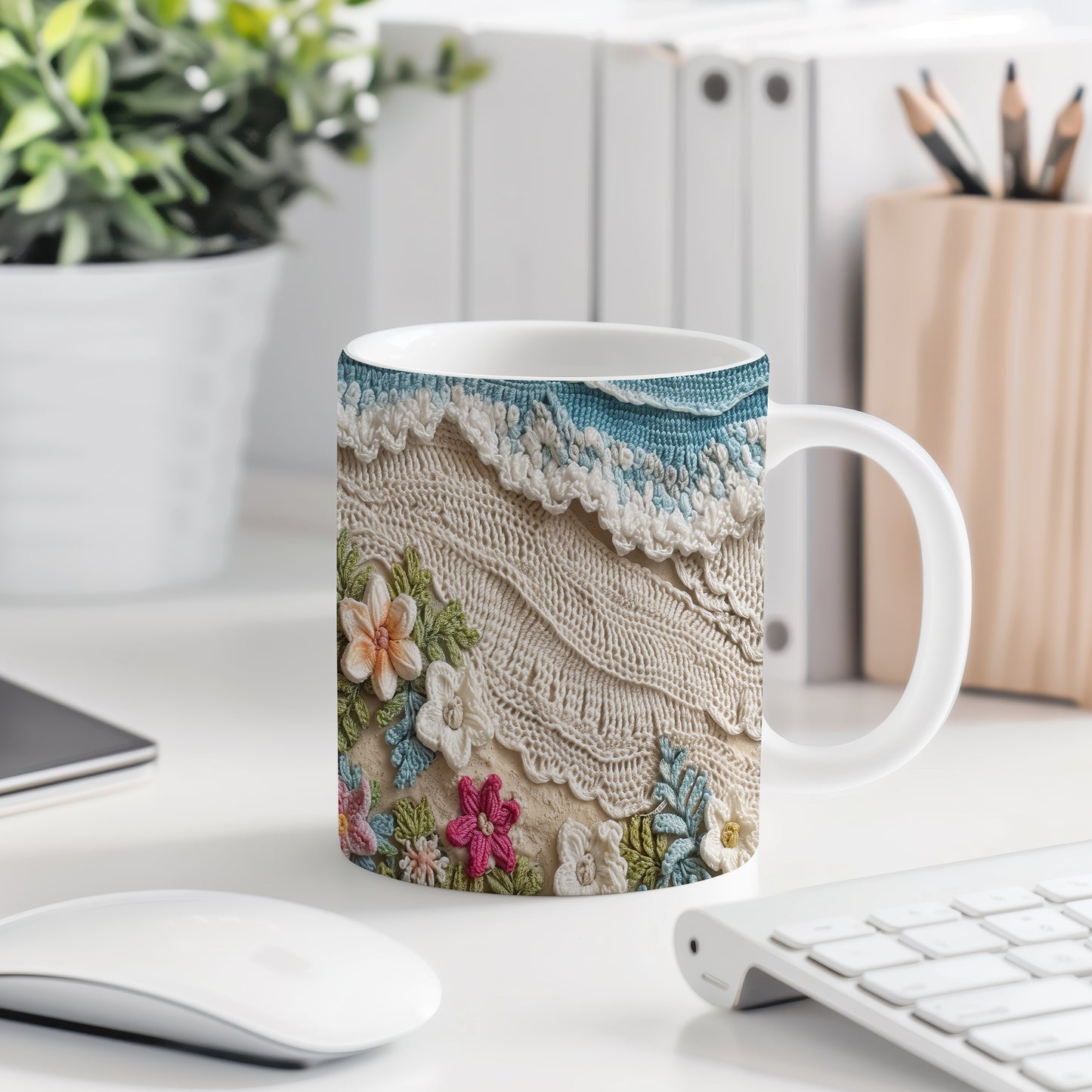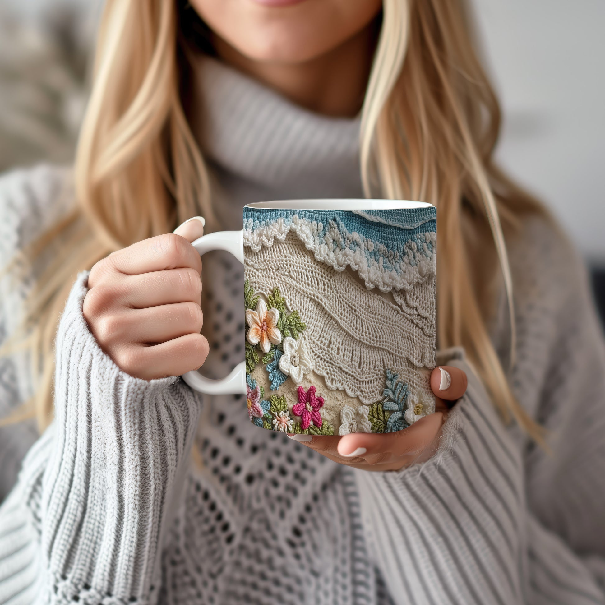 Hrnek se jemným květinovým vzorem v krémových tónech