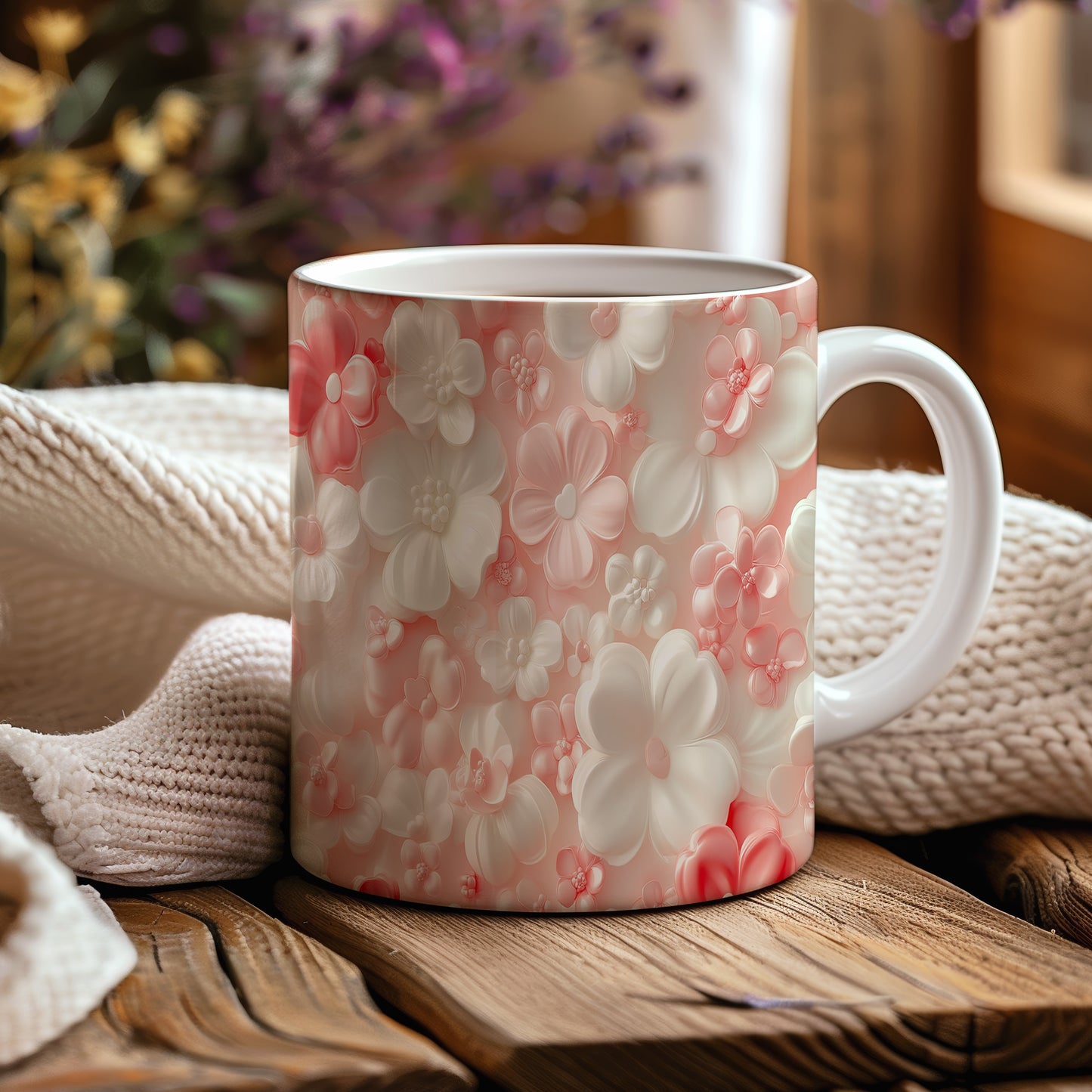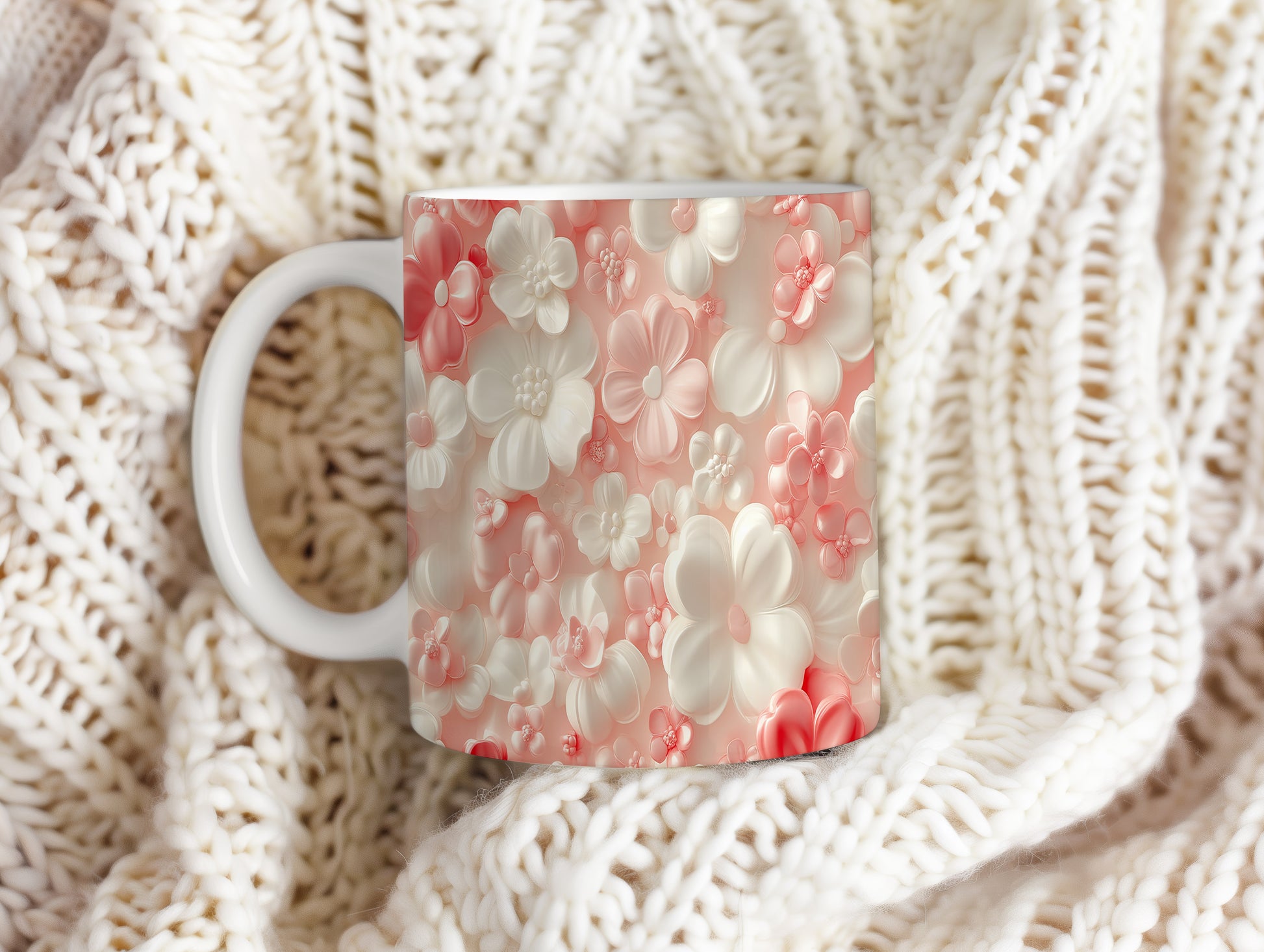 Hrnek se jemným květinovým vzorem v růžových tónech
