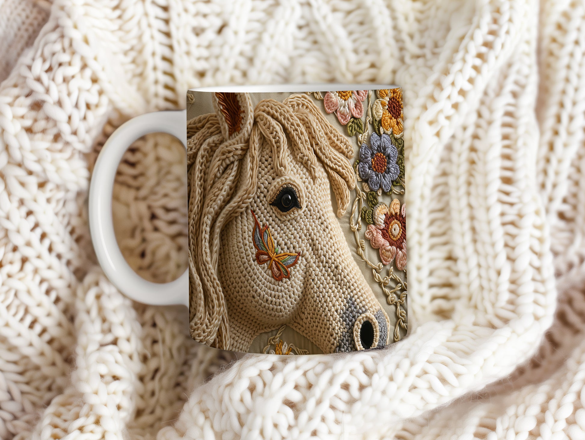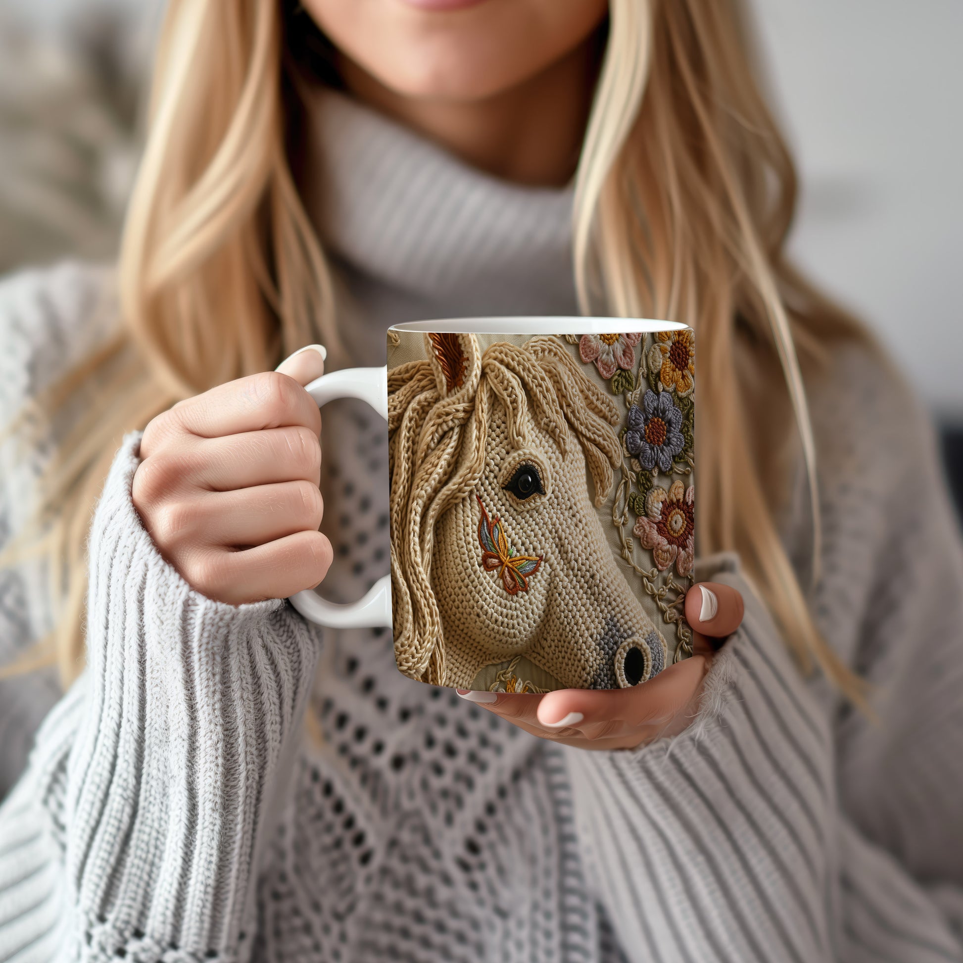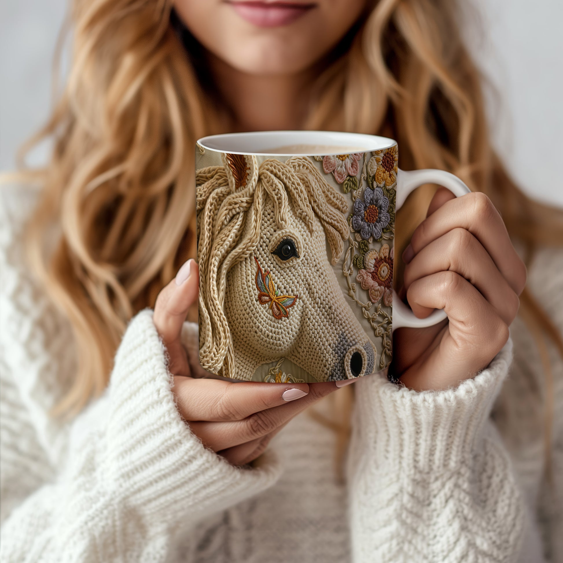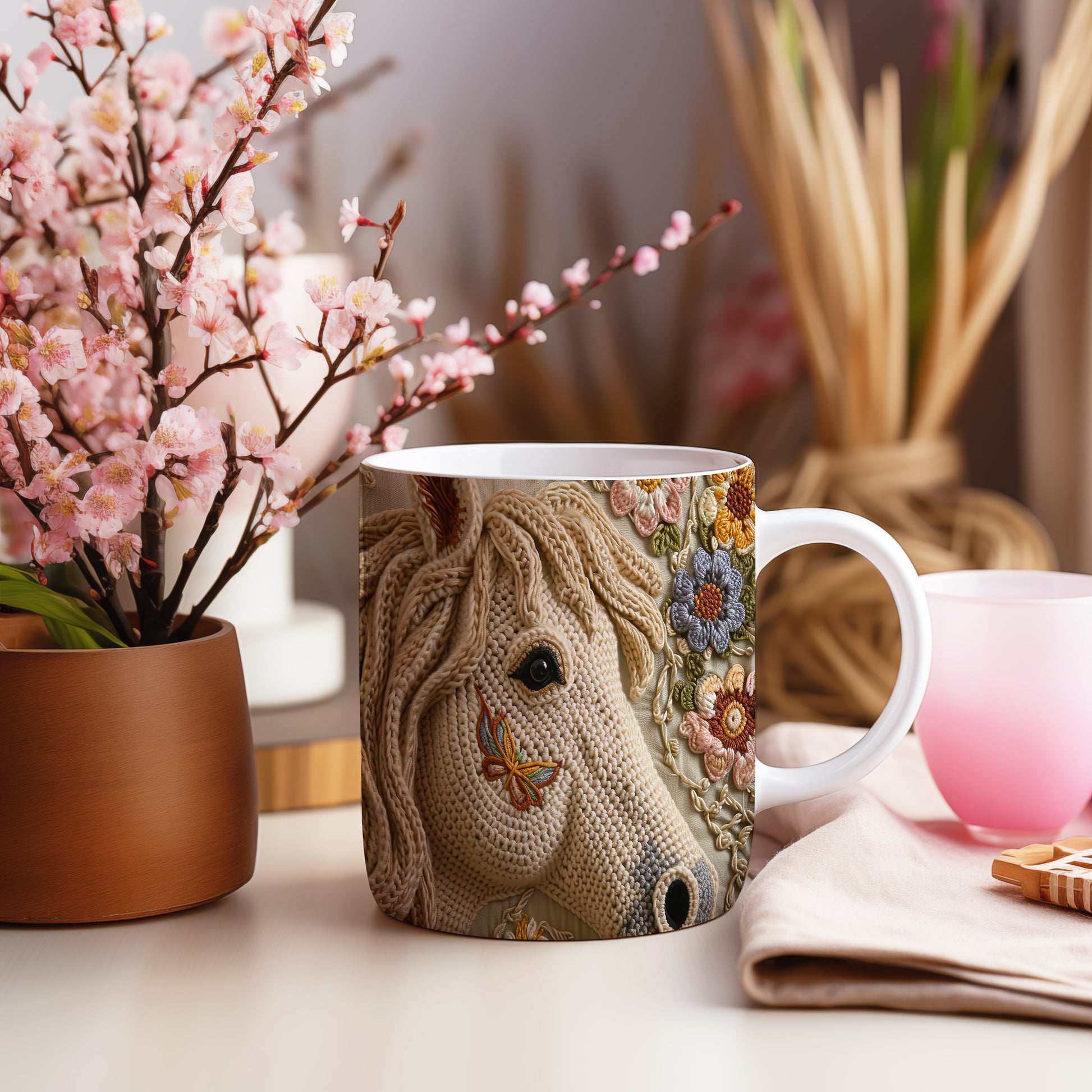 Hrnek se jemným motivem koně a květin