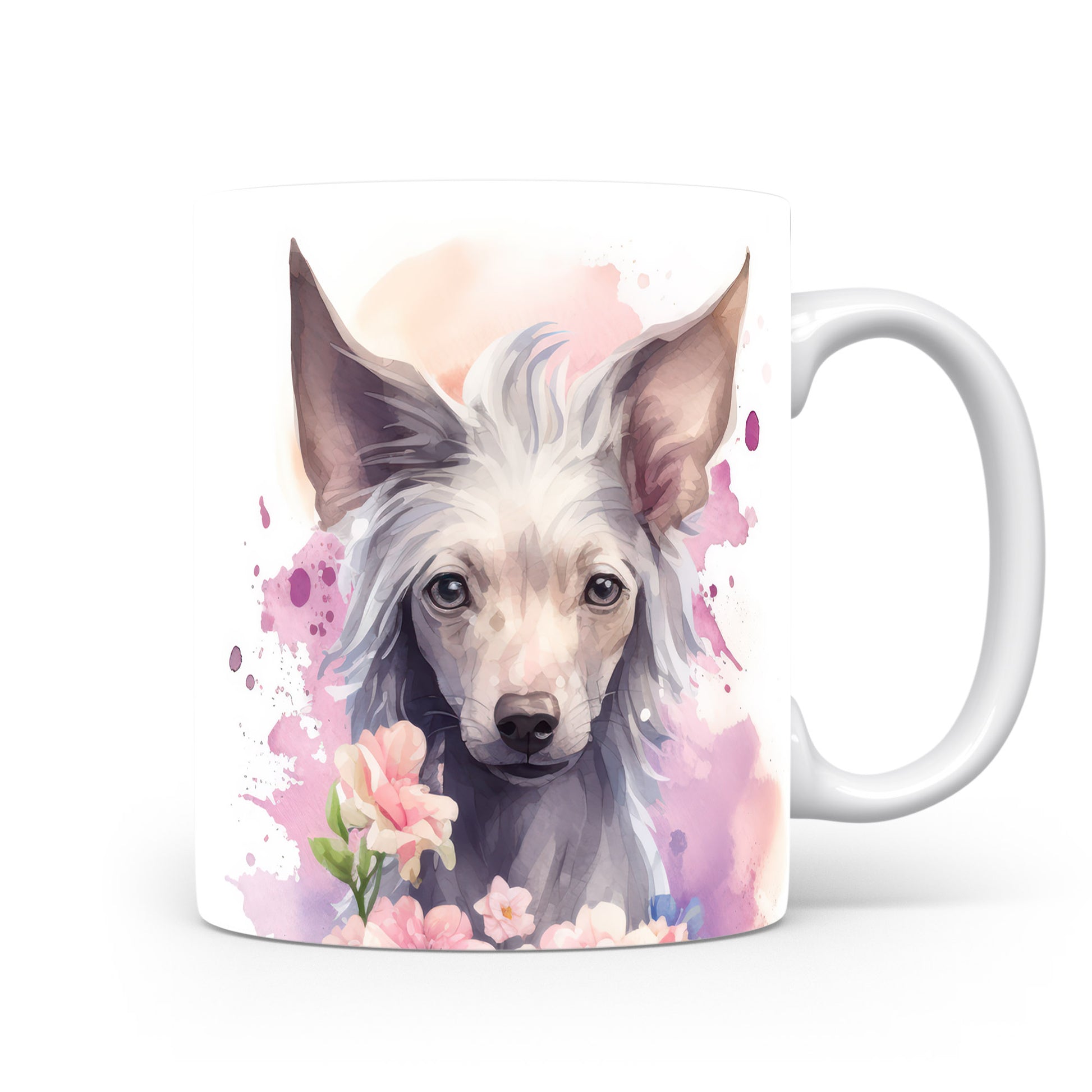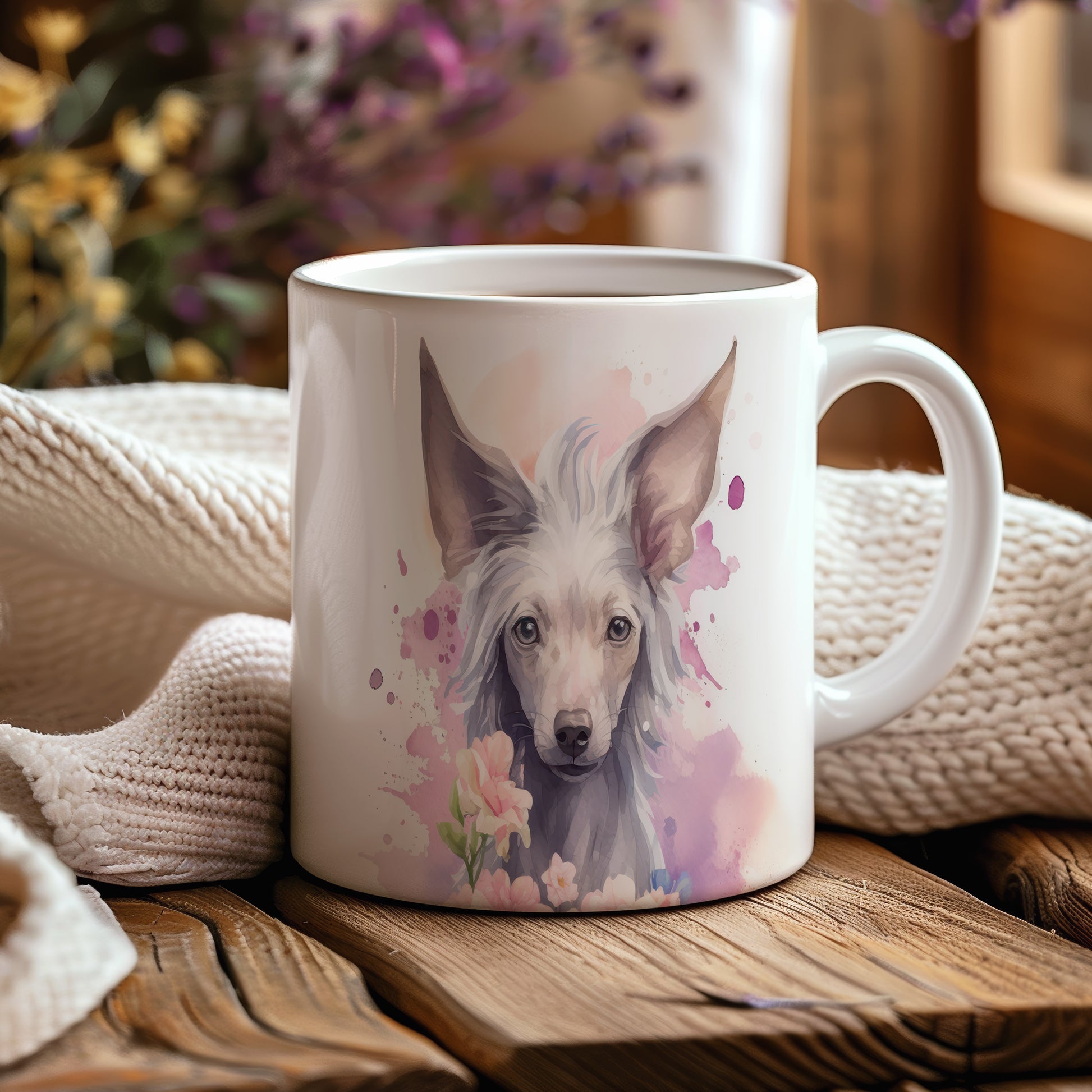 Hrnek se jemným čínským chocholatým psem a pastelovými květy