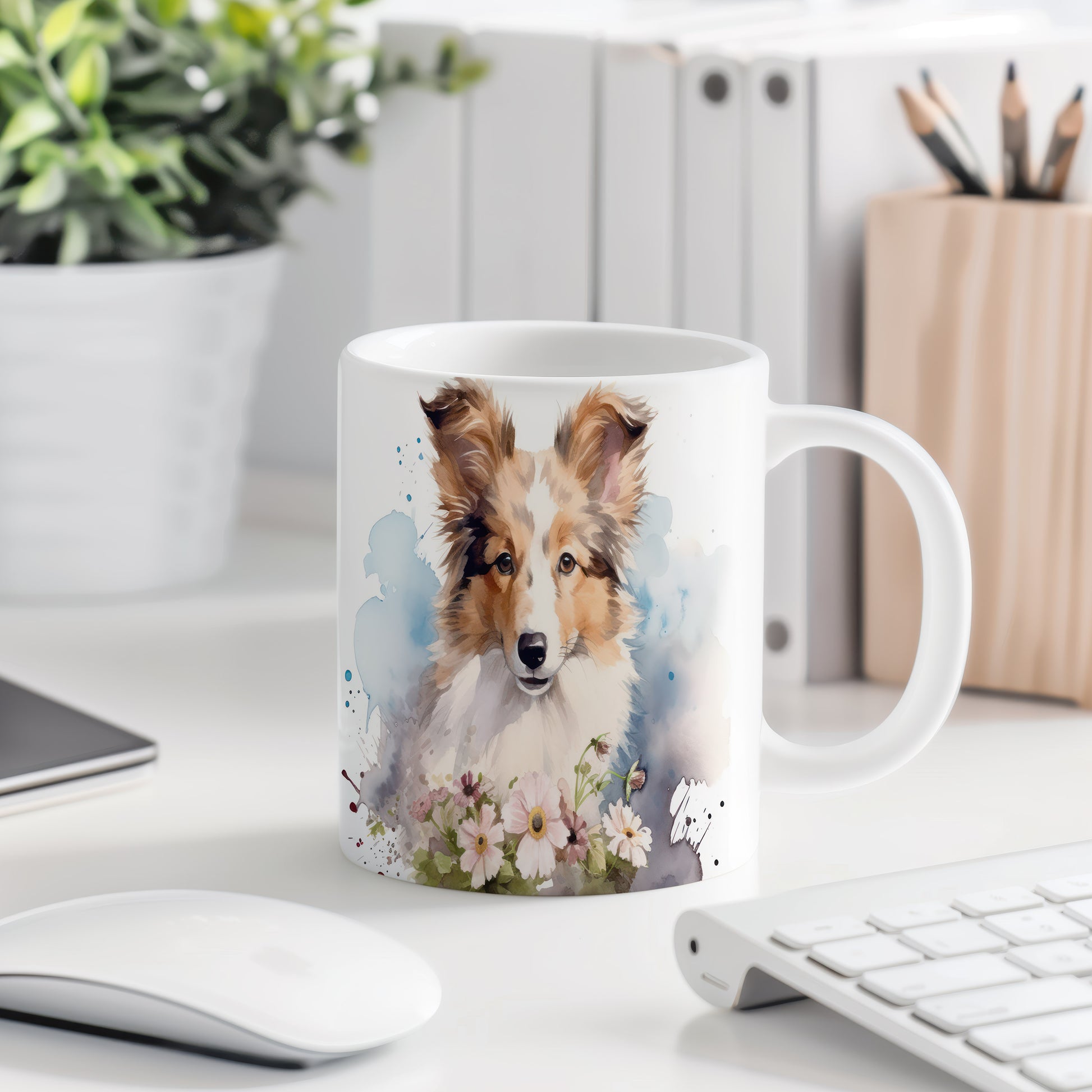 Tento hrnek s krásnou ilustrací kolie a květin je ideální pro všechny milovníky psů. Vychutnejte si svůj oblíbený nápoj s tímto stylovým kouskem, který přinese radost do každého dne.
