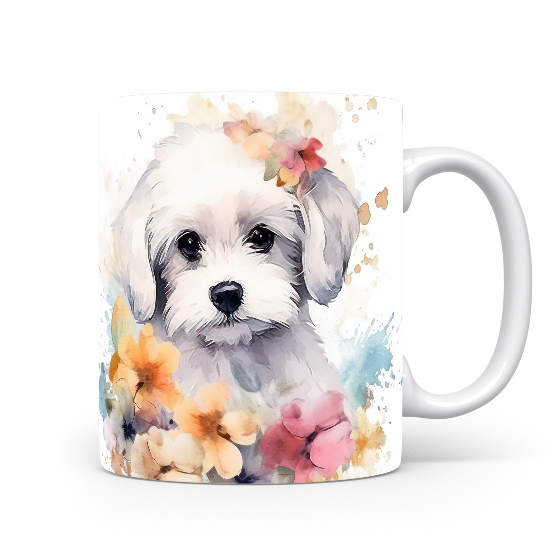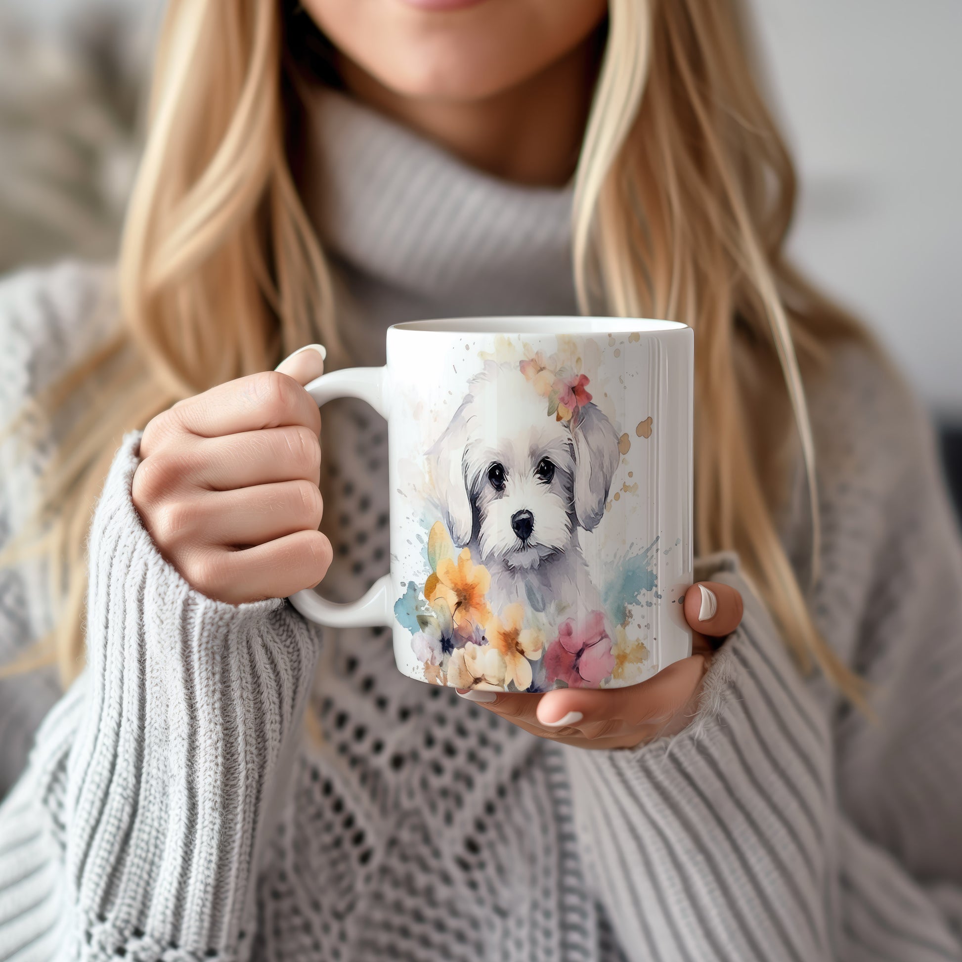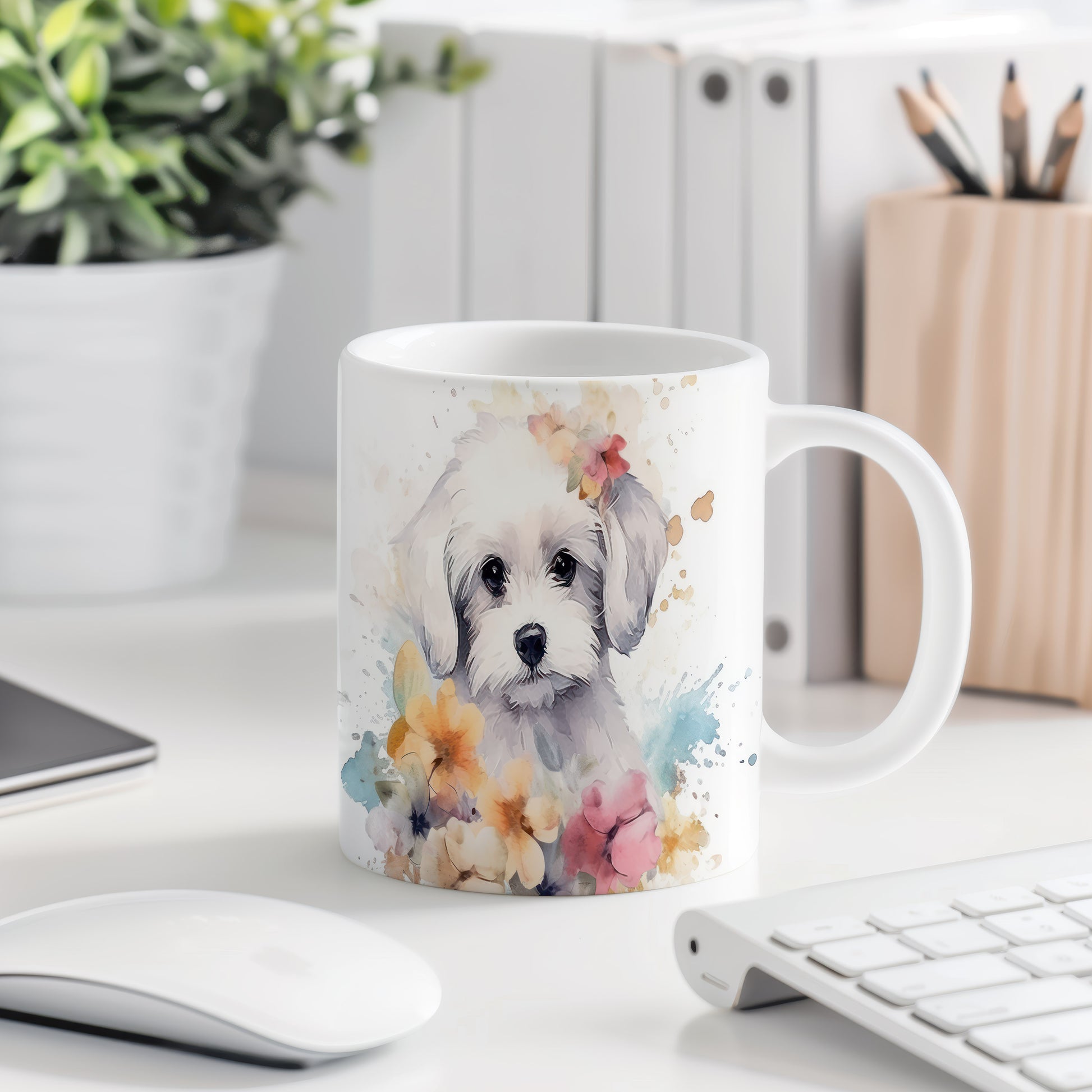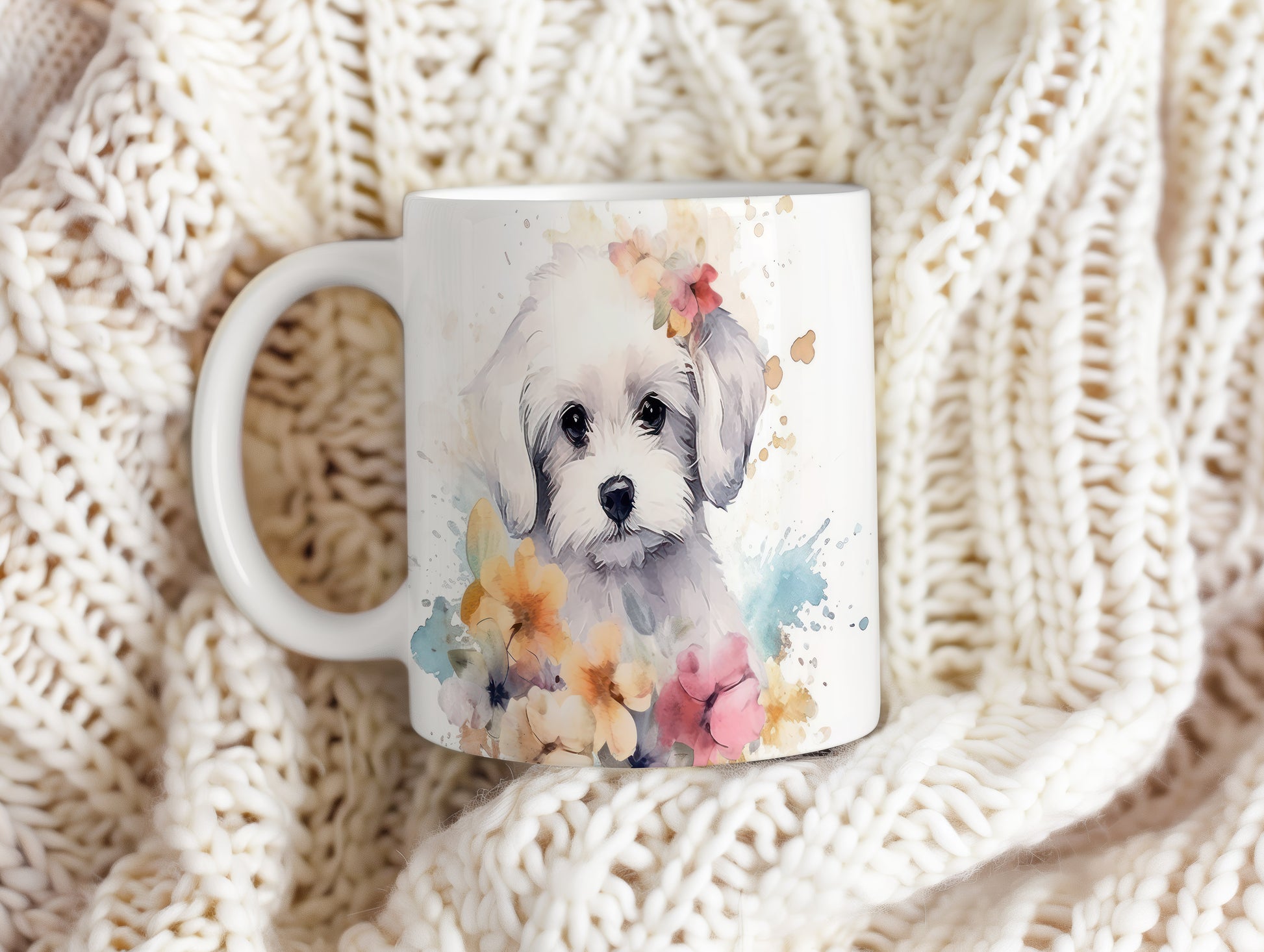 Tento hrníček s ilustrací roztomilého štěňátka a barevných květin je ideální pro milovníky psů. Skvěle se hodí na kávu nebo čaj a potěší každého, kdo má rád originální design.