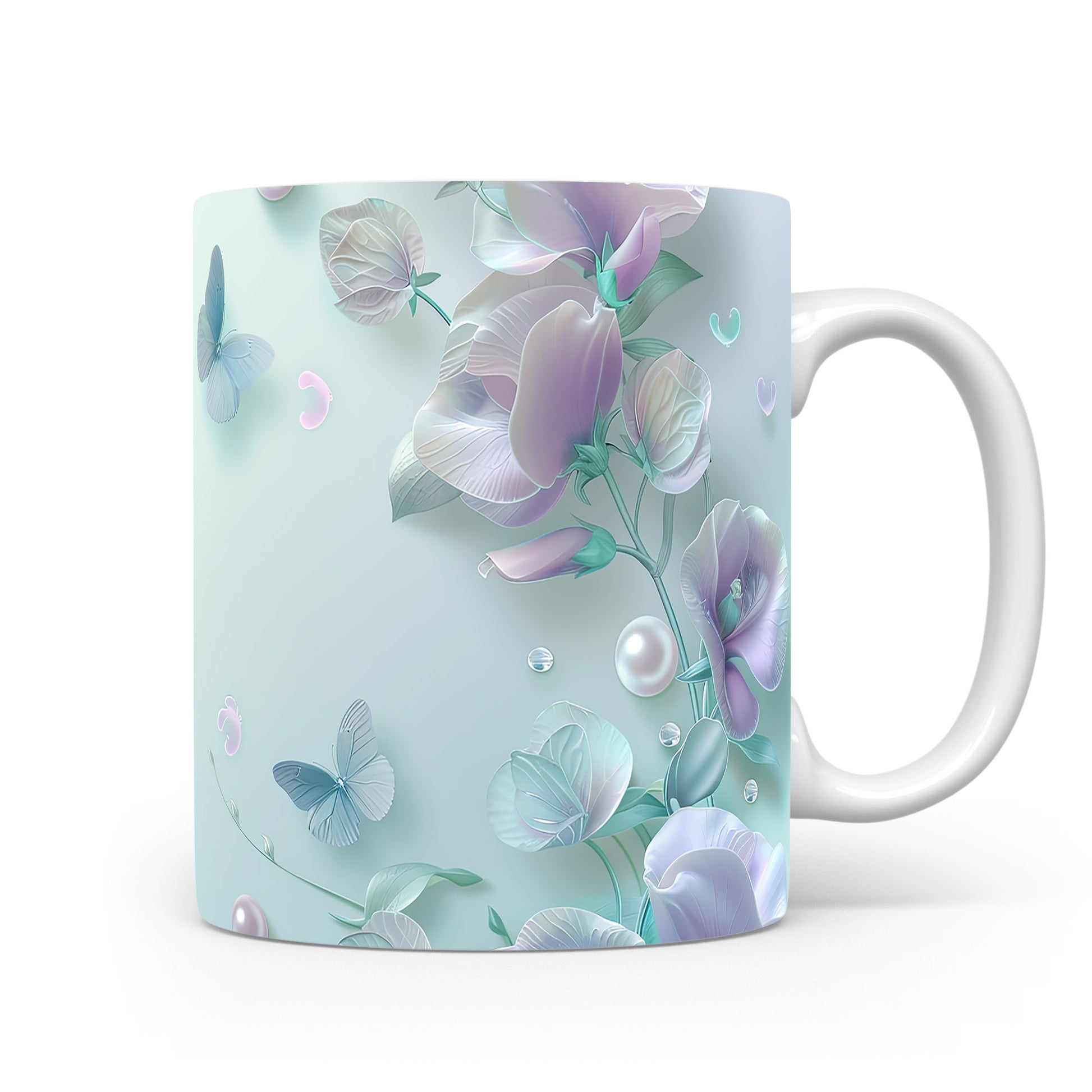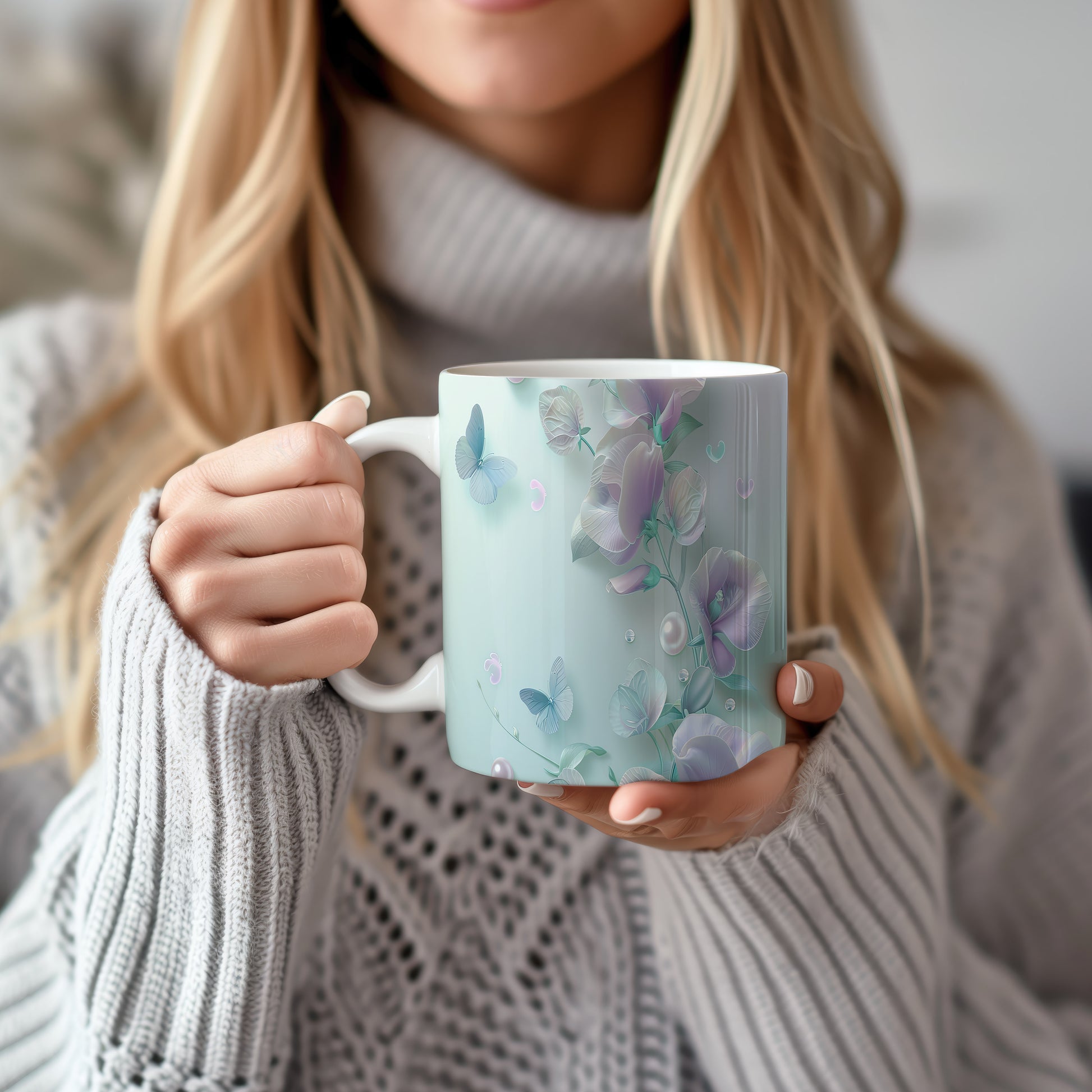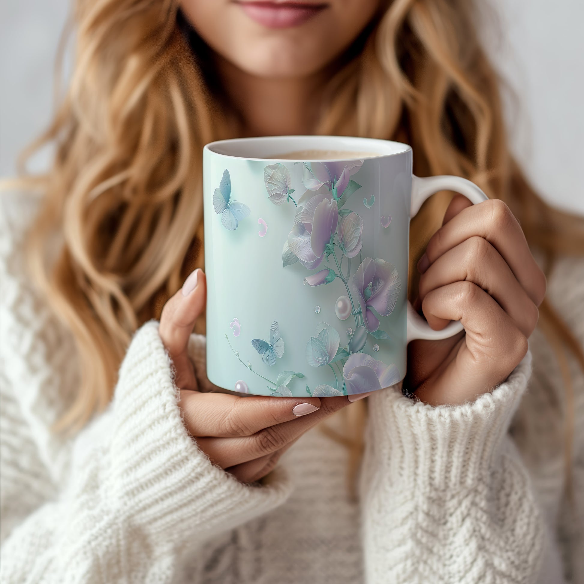 Tento elegantní hrnek s jemnými květinami a motýly je ideální volbou pro milovníky přírody. Skvěle se hodí jako dárek pro přátele nebo rodinu, kteří ocení krásu a jemnost. Materiál: keramika. Objem: 330 ml. Vhodné do myčky i mikrovlnky. Díky svému designu přináší do každého doušku nádech elegance a pohody.