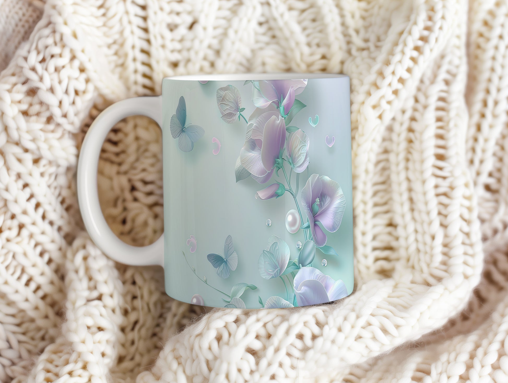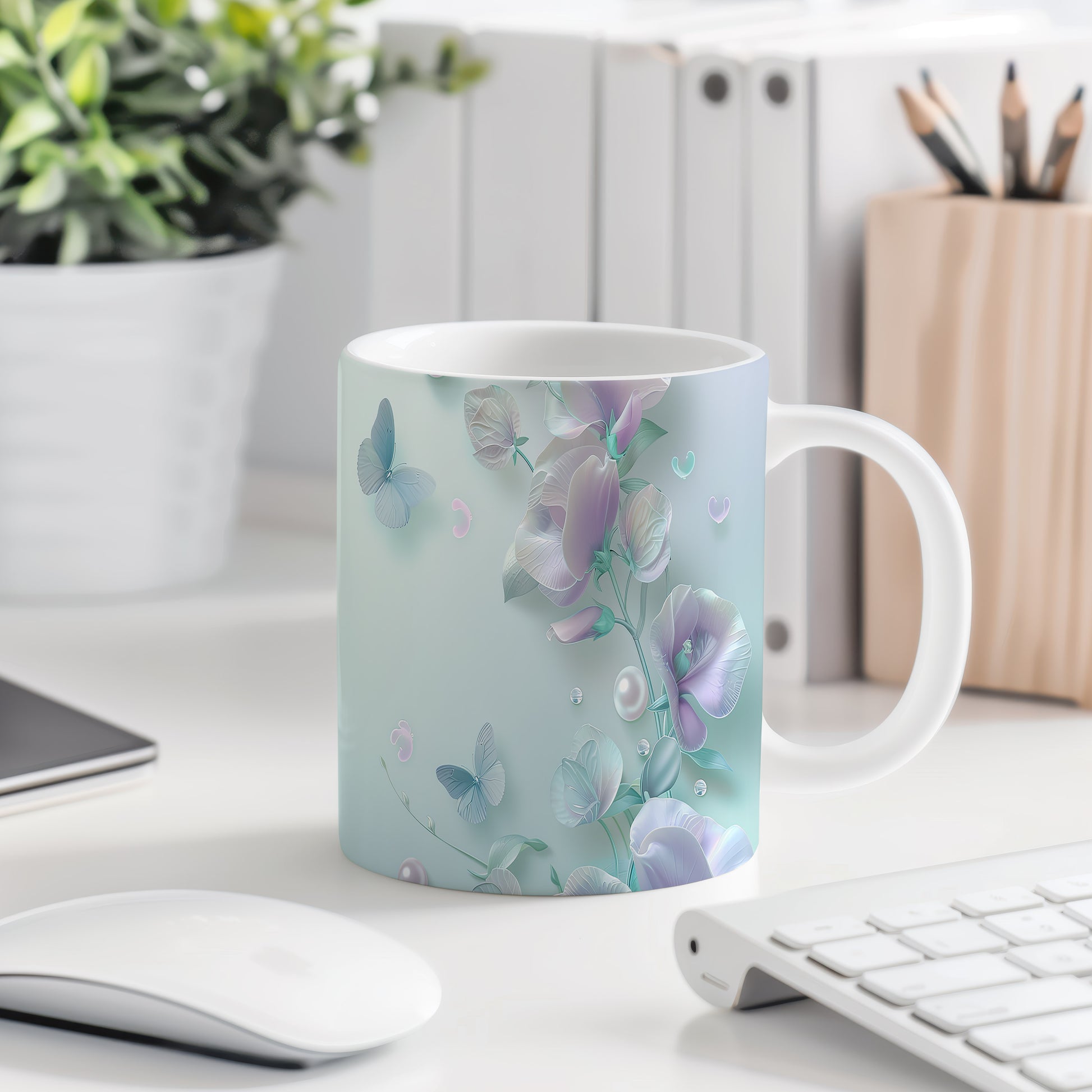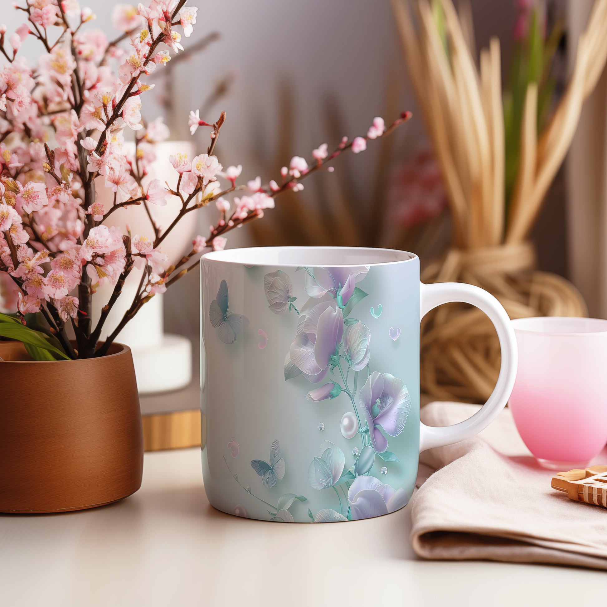 Tento elegantní hrnek s jemnými květinami a motýly je ideální volbou pro milovníky přírody. Skvěle se hodí jako dárek pro přátele nebo rodinu, kteří ocení krásu a jemnost. Materiál: keramika. Objem: 330 ml. Vhodné do myčky i mikrovlnky. Díky svému designu přináší do každého doušku nádech elegance a pohody.