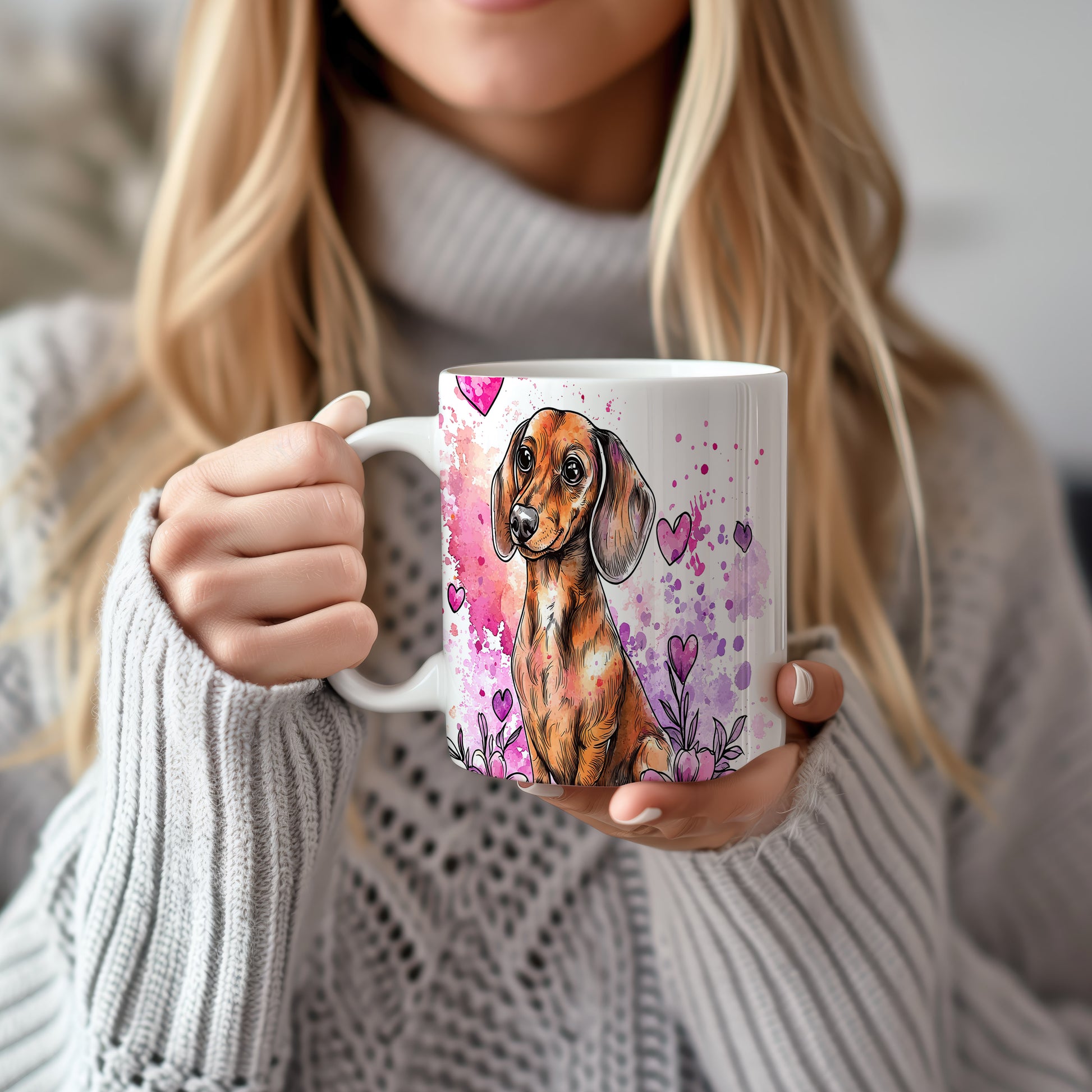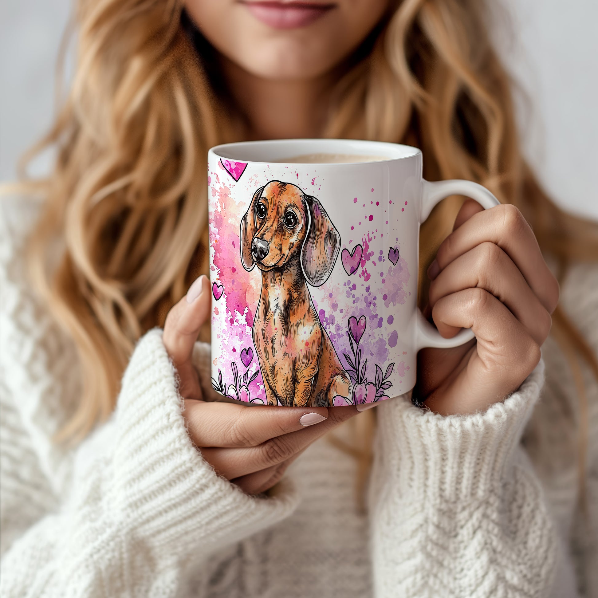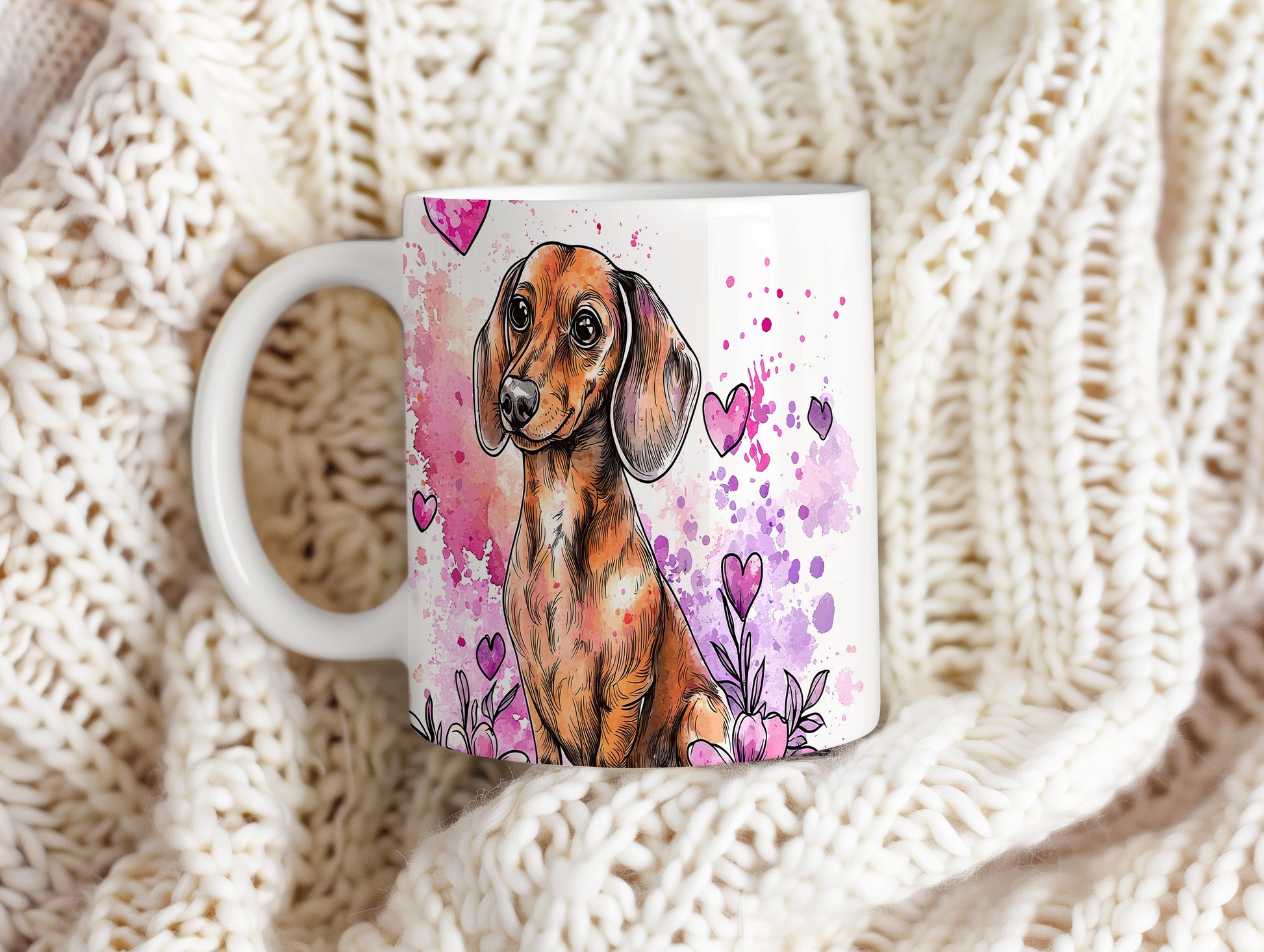 Hrnek se jezevčíkem na barevném pozadí