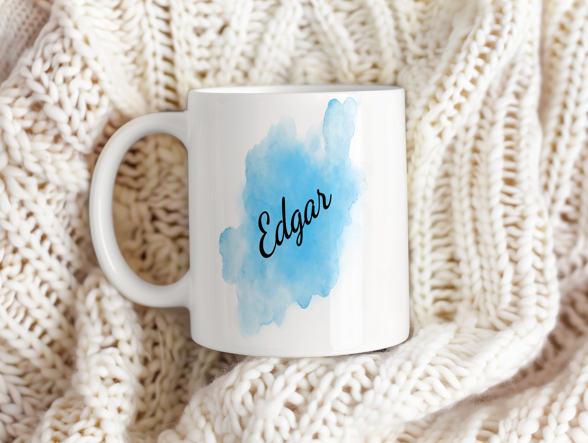 Originální hrnek se jménem Edgar s modrým akvarelovým podkladem. Svěží design pro každý den.
