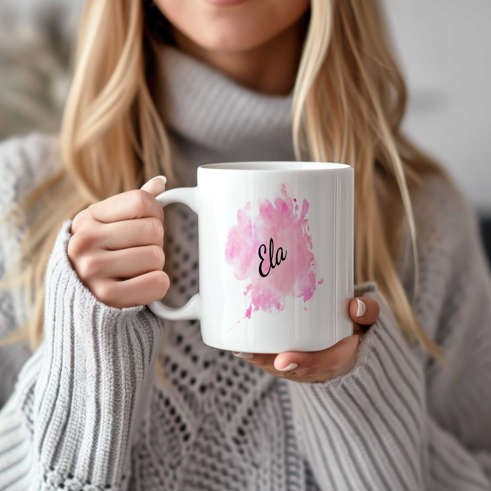 Hrnek se jménem Ela – růžový akvarel