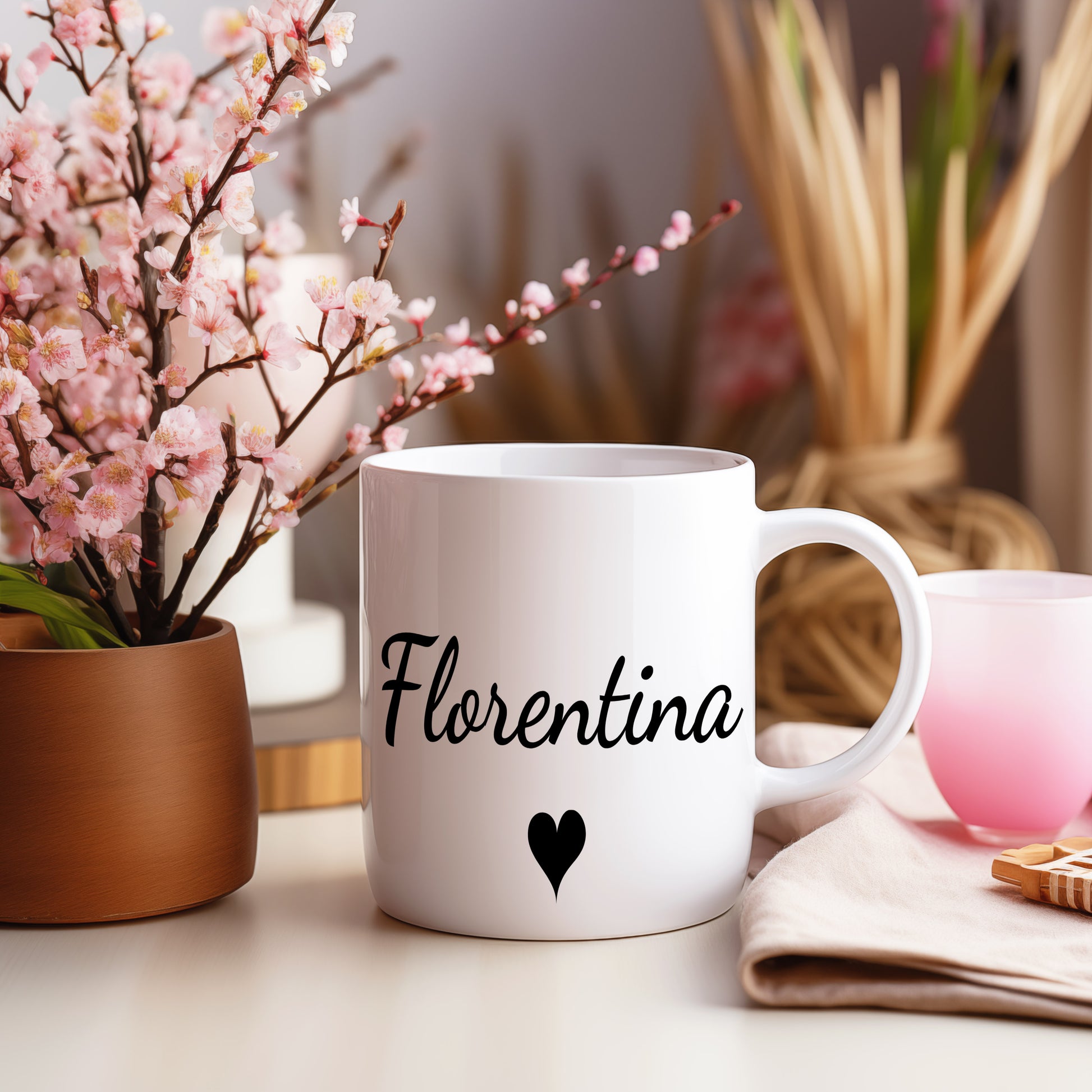 Romantický hrnek se jménem Florentina doplněný decentním symbolem ♥. Krásný dárek k Valentýnu i jen tak pro radost.