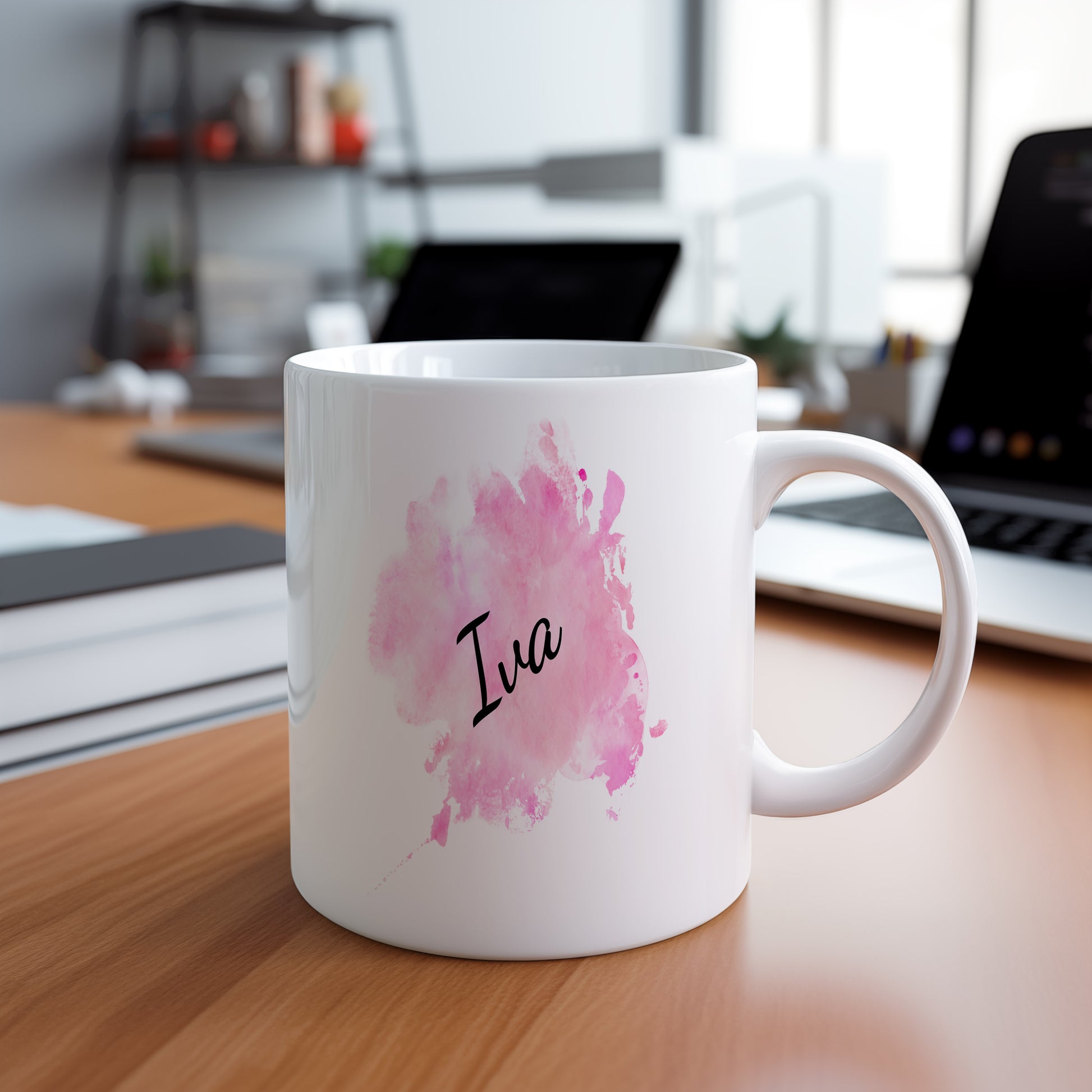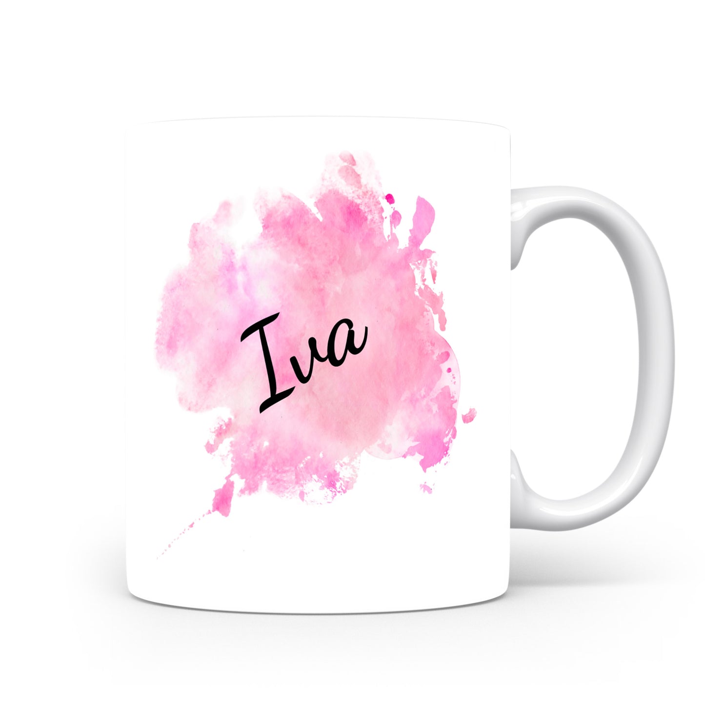 Stylový hrnek se jménem Iva s jemným růžovým akvarelovým motivem. Elegantní a hravý zároveň.