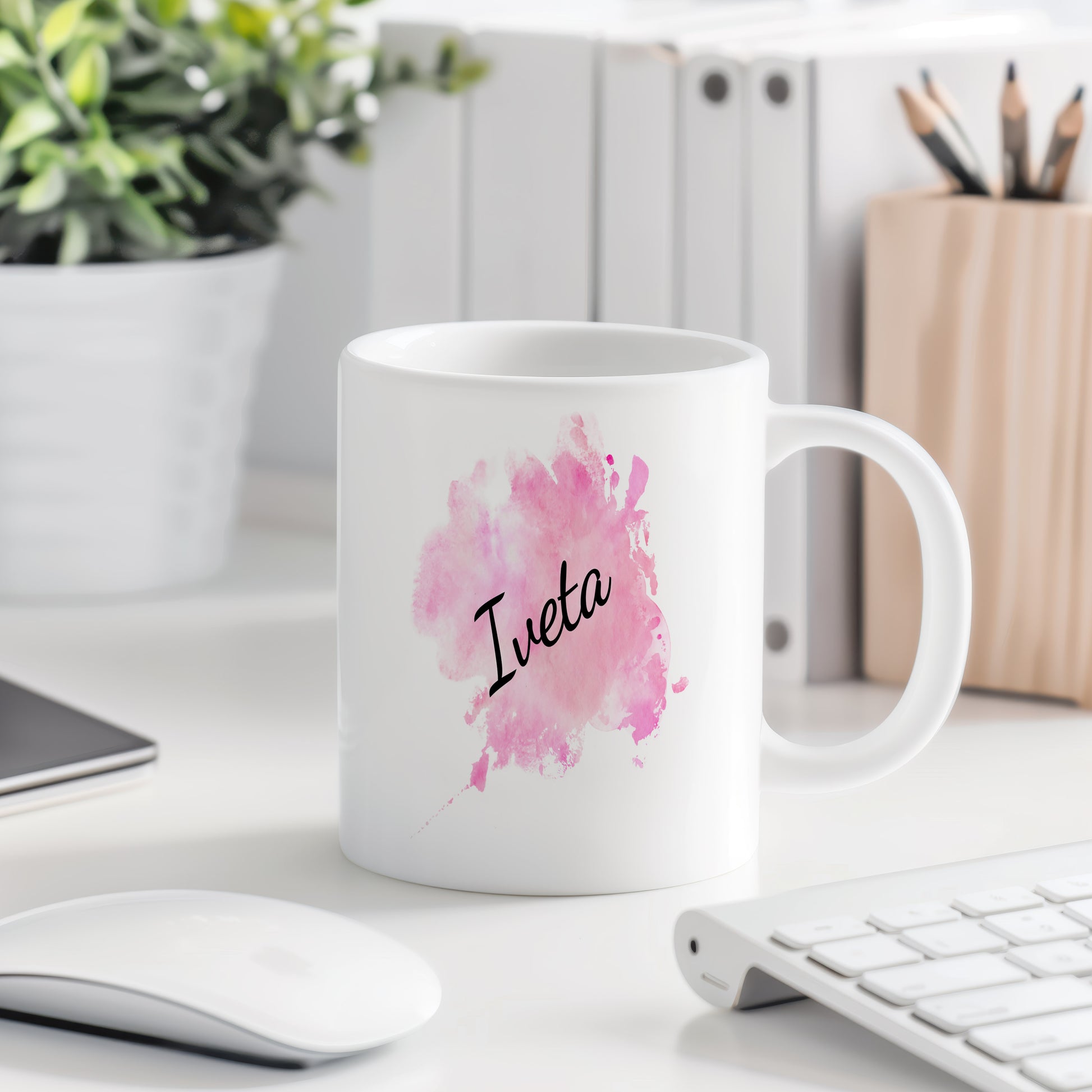 Stylový hrnek se jménem Iveta s jemným růžovým akvarelovým motivem. Elegantní a hravý zároveň.
