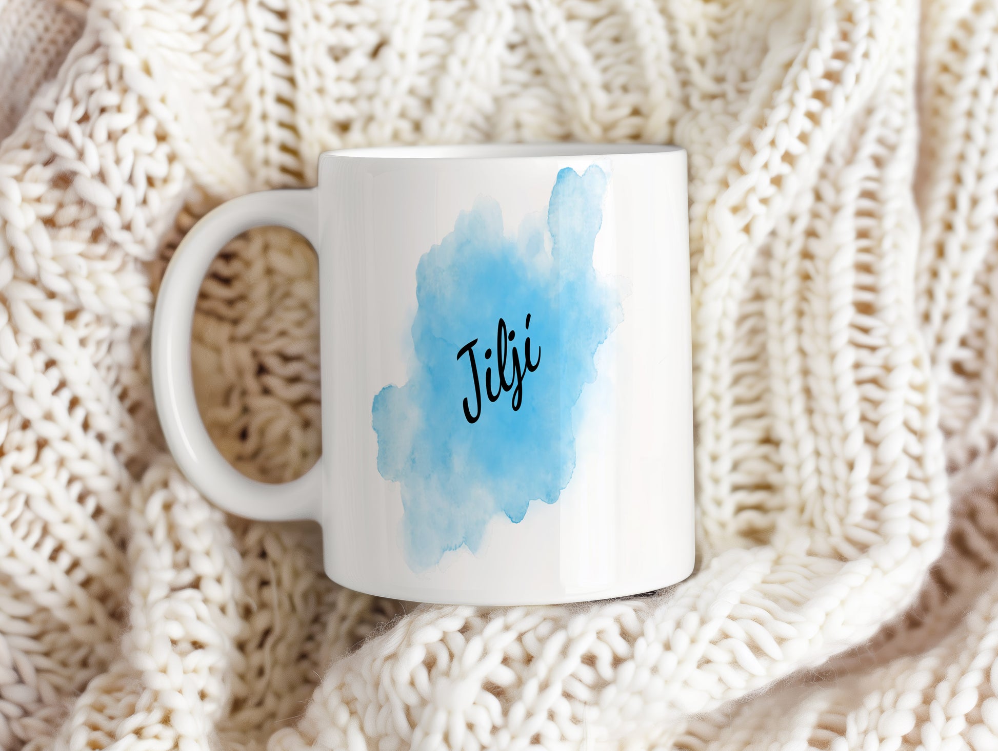 Stylový hrnek se jménem Jiljí s jemným růžovým akvarelovým motivem. Elegantní a hravý zároveň.