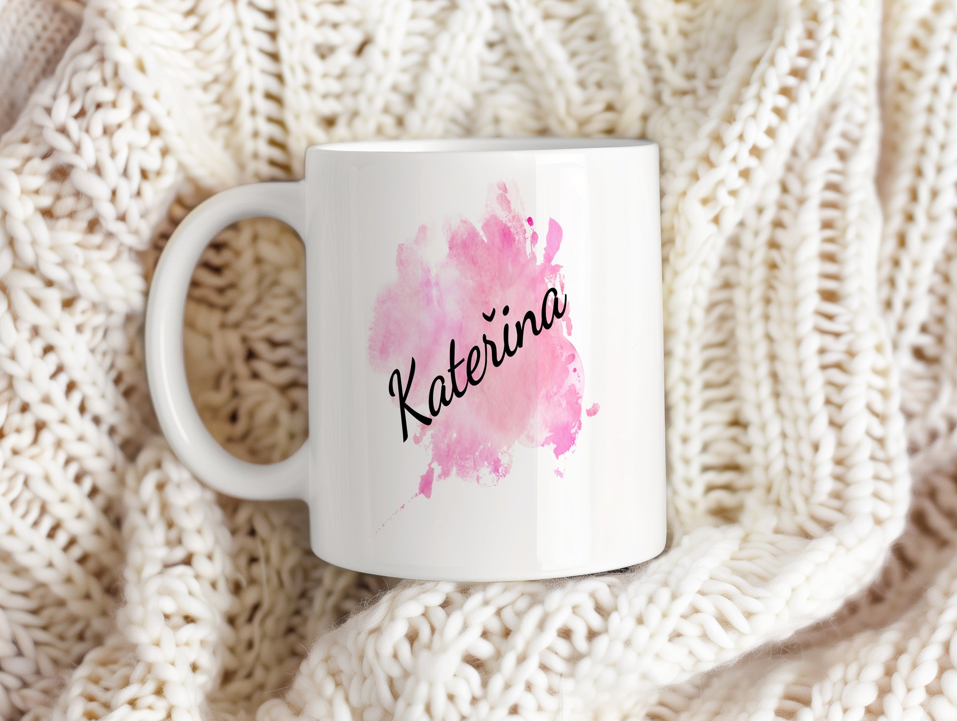 Stylový hrnek se jménem Kateřina s jemným růžovým akvarelovým motivem. Elegantní a hravý zároveň.