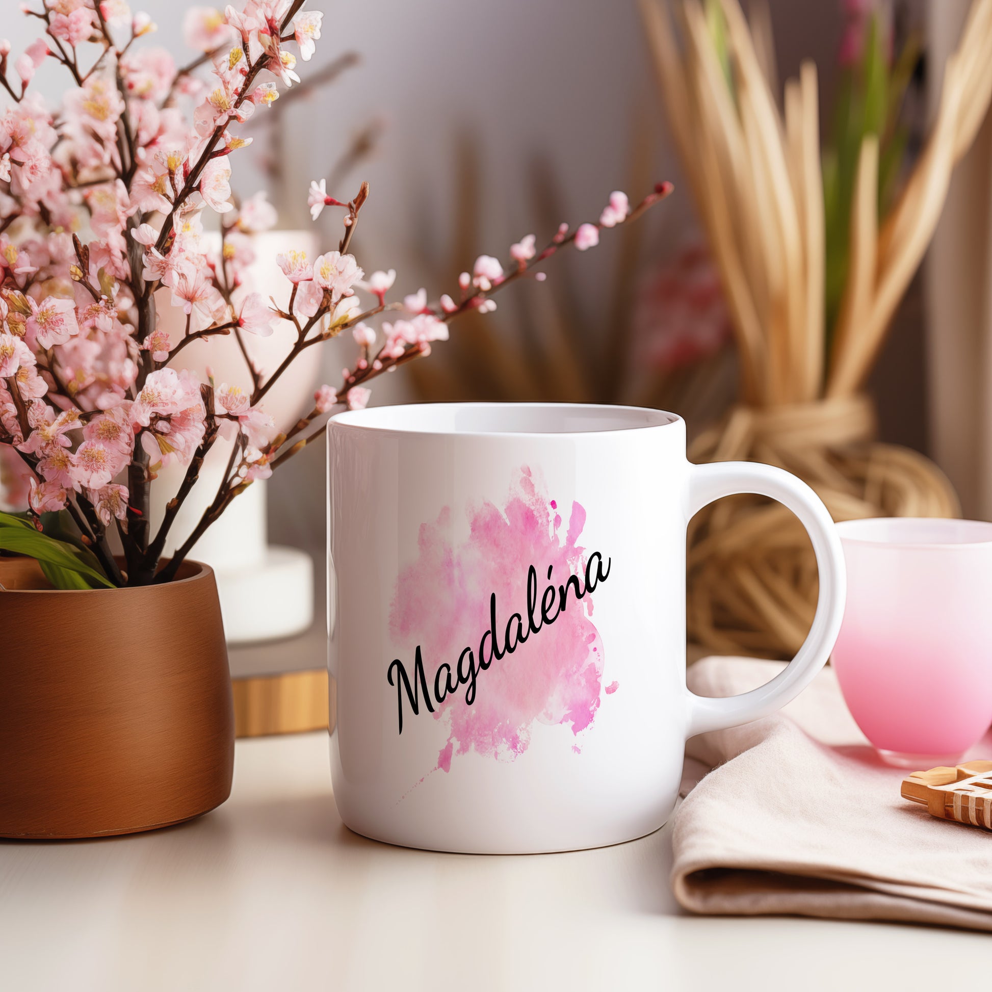 Stylový hrnek se jménem Magdaléna s jemným růžovým akvarelovým motivem. Elegantní a hravý zároveň.