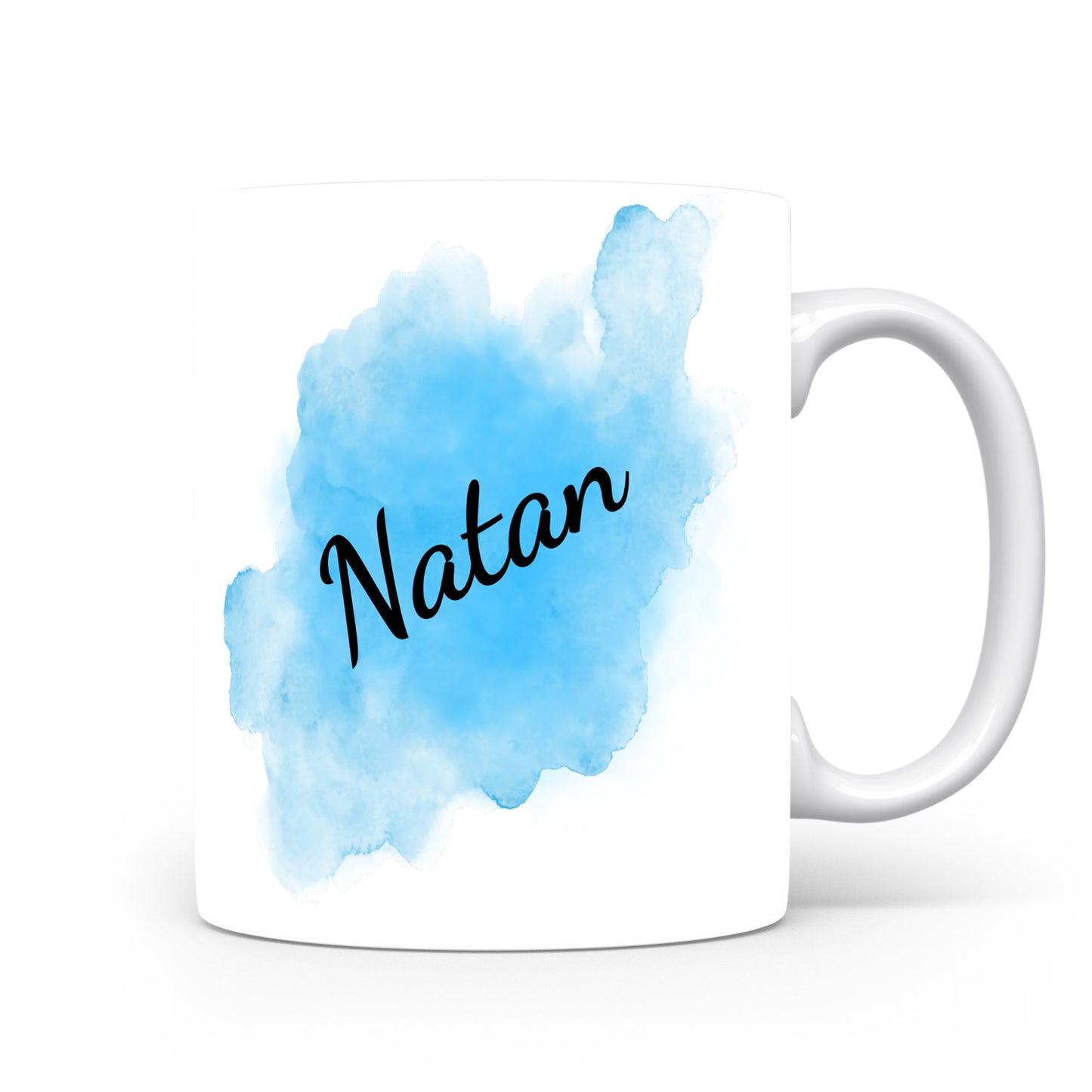 Originální hrnek se jménem Natan s modrým akvarelovým podkladem. Svěží design pro každý den.