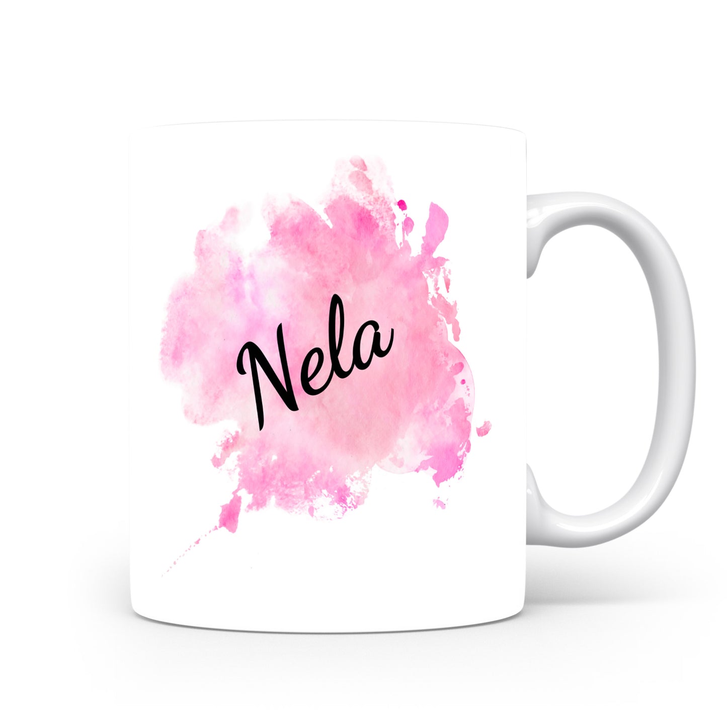 Stylový hrnek se jménem Nela s jemným růžovým akvarelovým motivem. Elegantní a hravý zároveň.