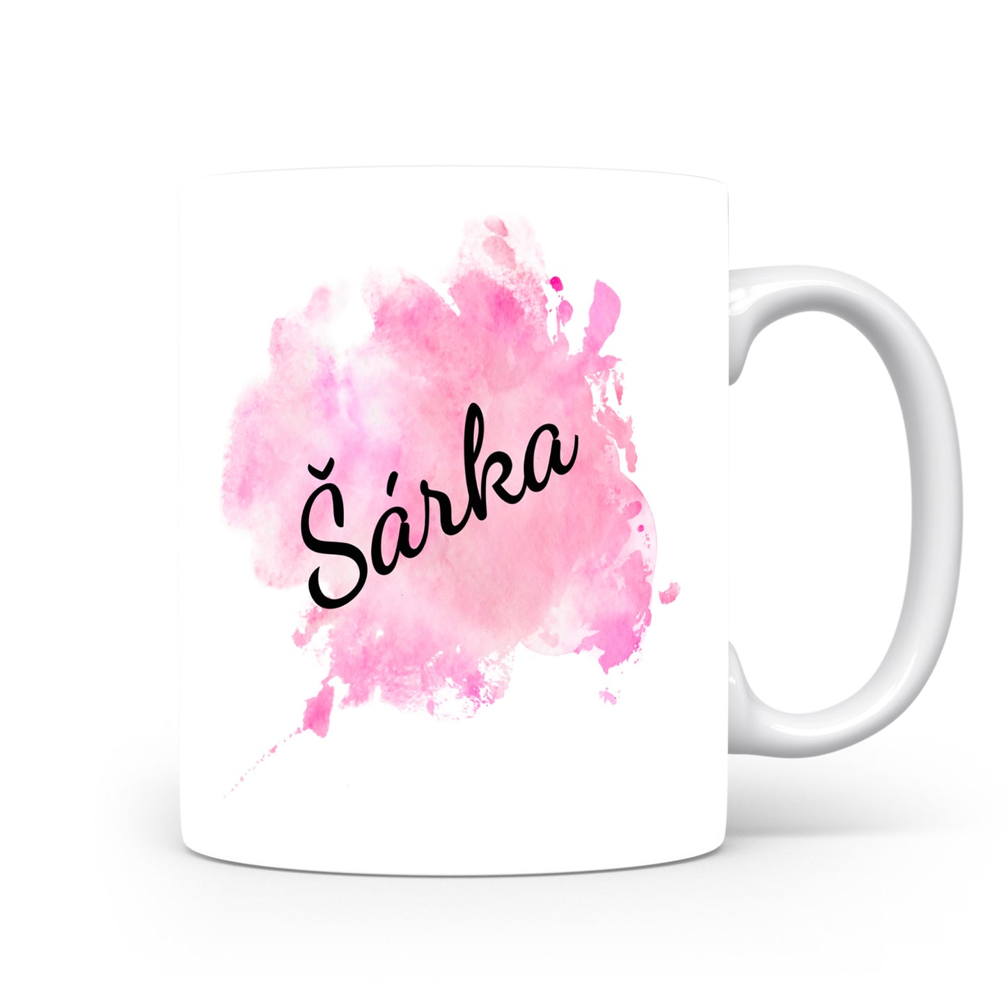 Stylový hrnek se jménem Šárka s jemným růžovým akvarelovým motivem. Elegantní a hravý zároveň.