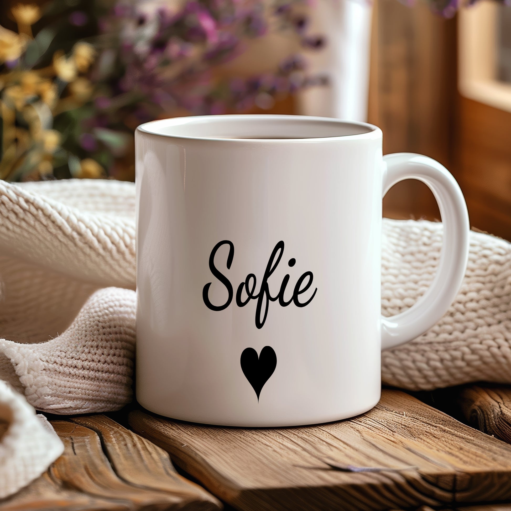 Romantický hrnek se jménem Sofie doplněný decentním symbolem ♥. Krásný dárek k Valentýnu i jen tak pro radost.