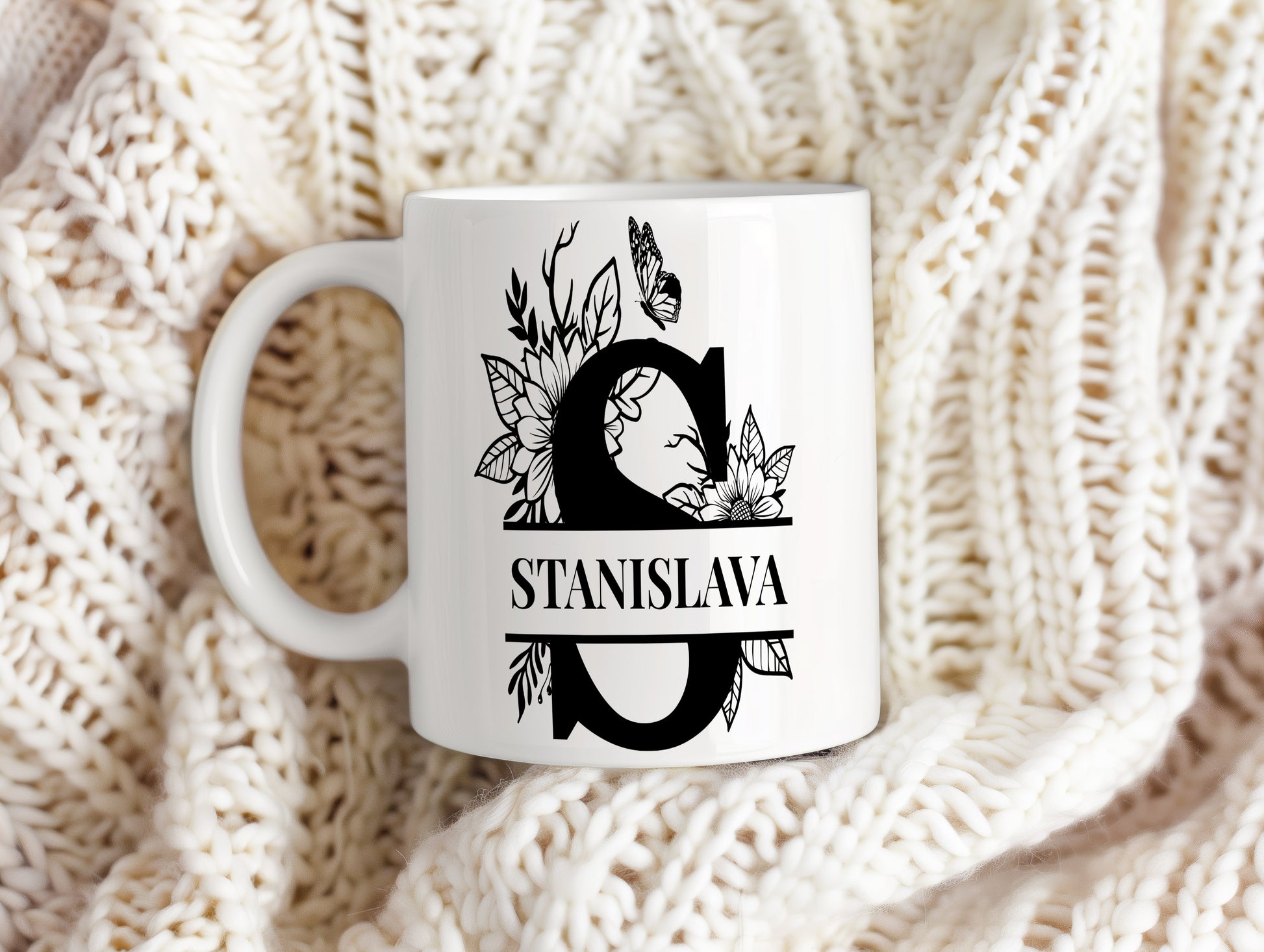 Elegantní hrnek se jménem Stanislava s monogramem zdobeným jemnými květinami. Skvělý osobní dárek pro ženy.