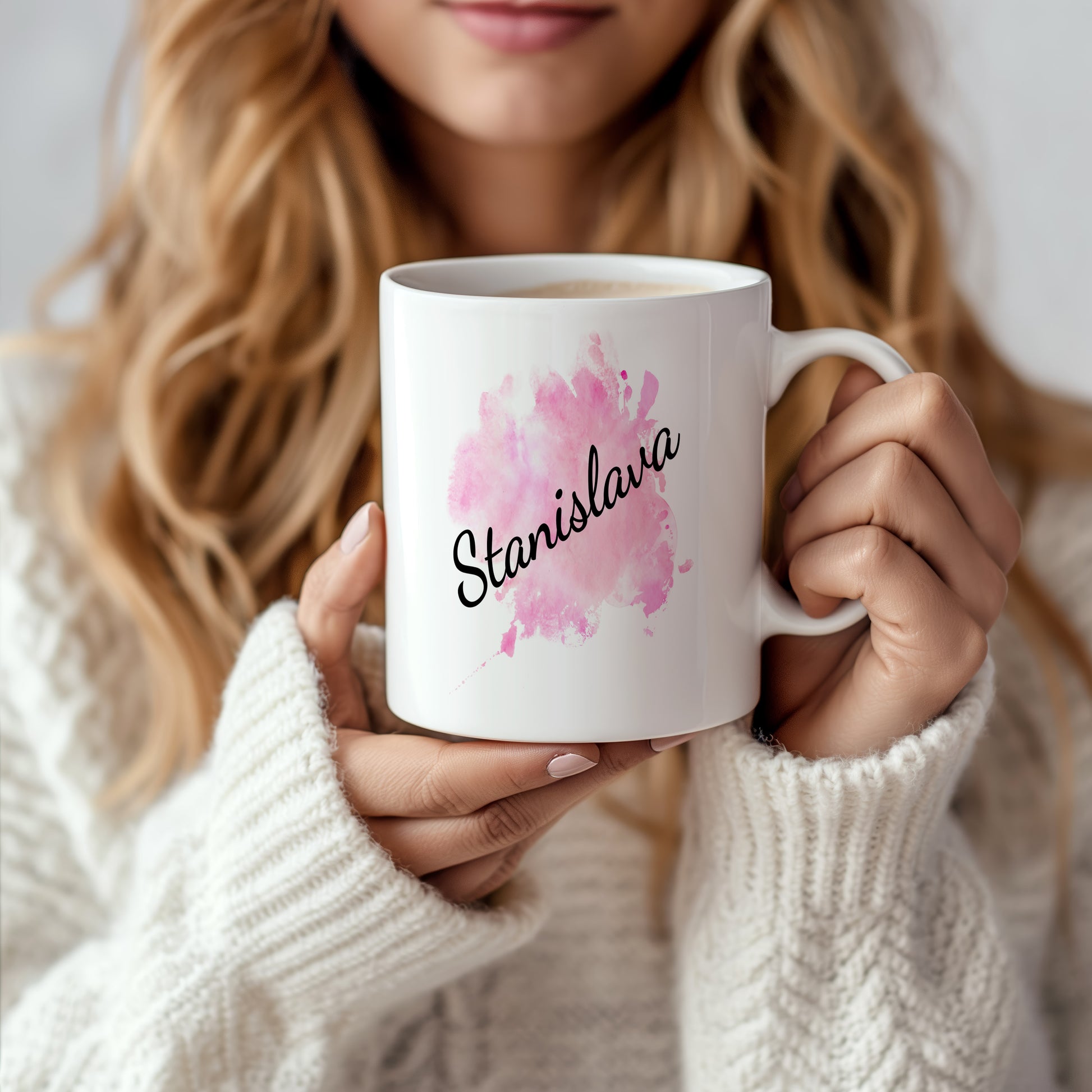 Stylový hrnek se jménem Stanislava s jemným růžovým akvarelovým motivem. Elegantní a hravý zároveň.