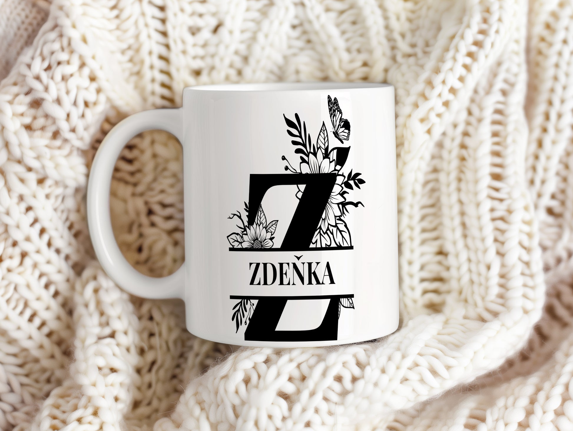 Elegantní hrnek se jménem Zdeňka s monogramem zdobeným jemnými květinami. Skvělý osobní dárek pro ženy.