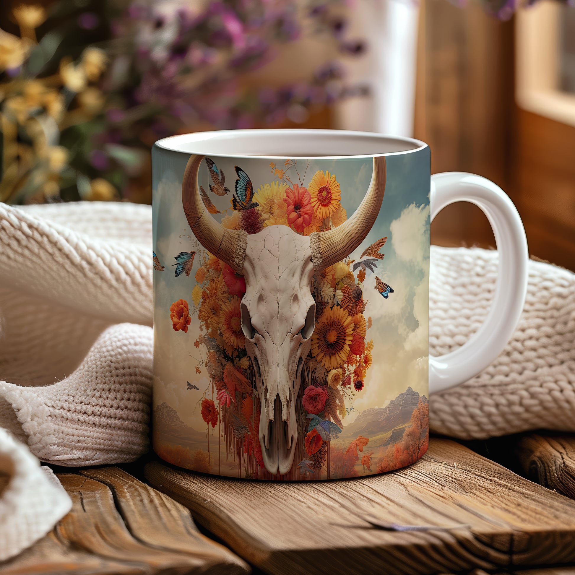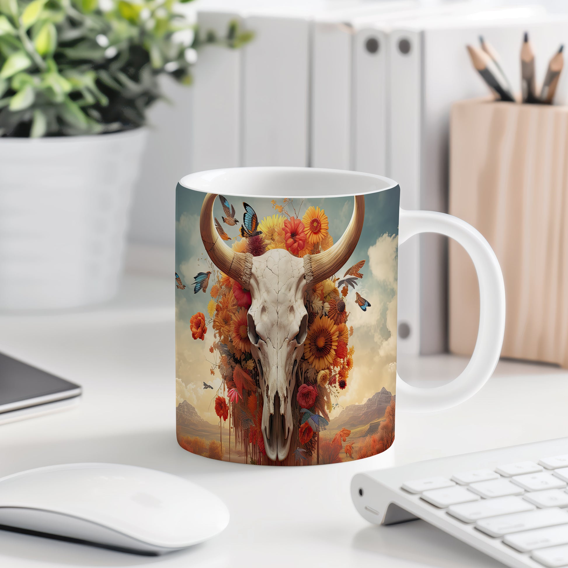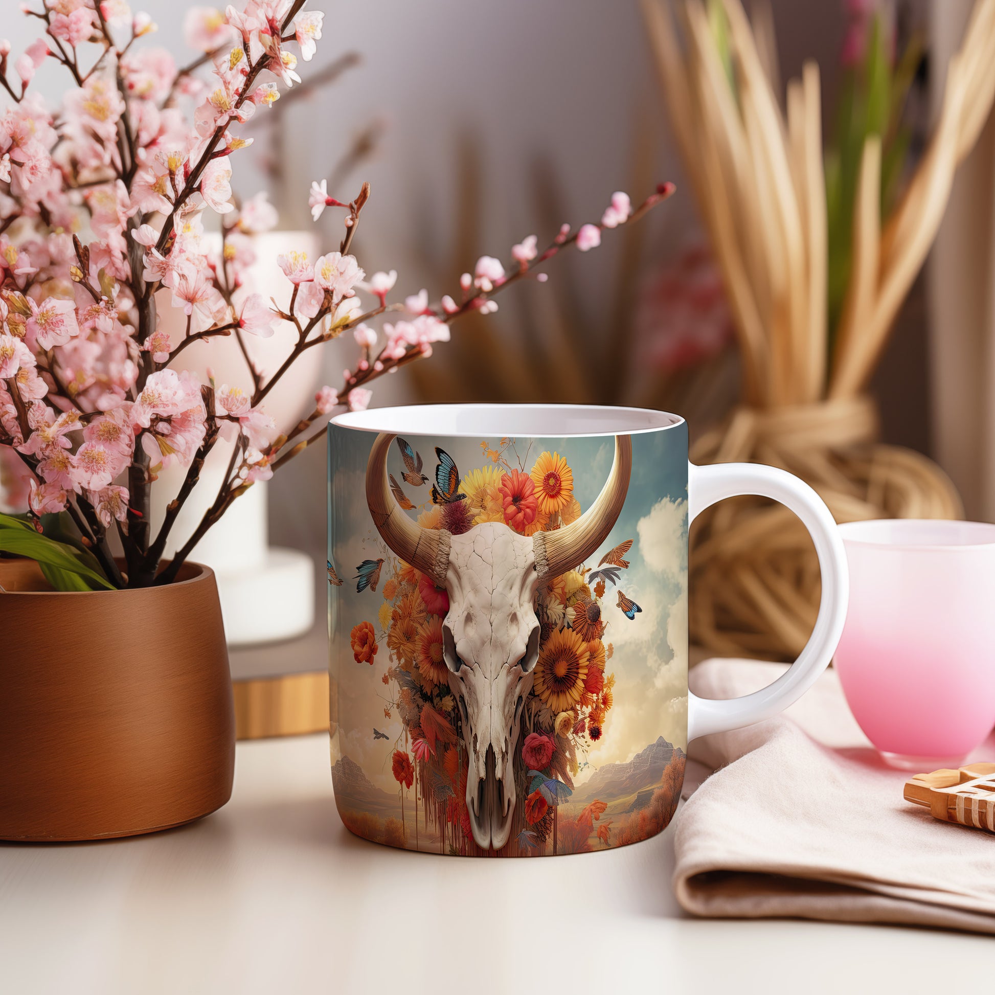 Tento hrnek zobrazuje lebku obklopenou fascinujícími květinami a motýli, což mu dodává jedinečný styl. Je ideální pro milovníky alternativního designu a skvělým dárkem pro přátele nebo rodinu. Materiál: keramika. Objem: 330 ml. Vhodné do myčky i mikrovlnky. Díky svému originálnímu vzhledu se stane ozdobou každého stolu.