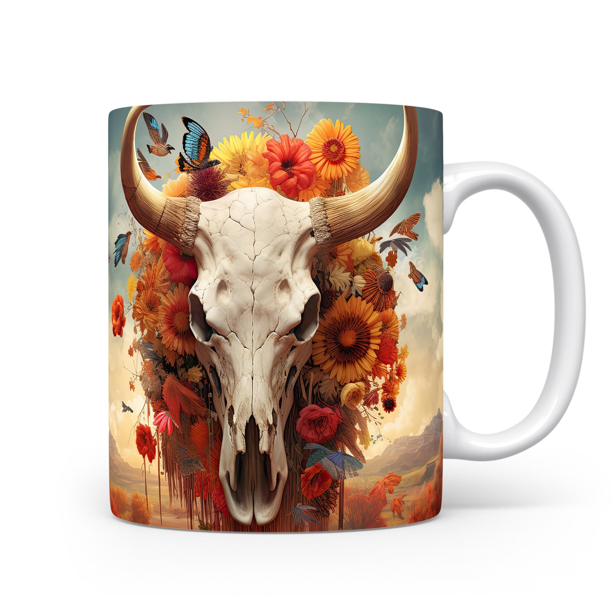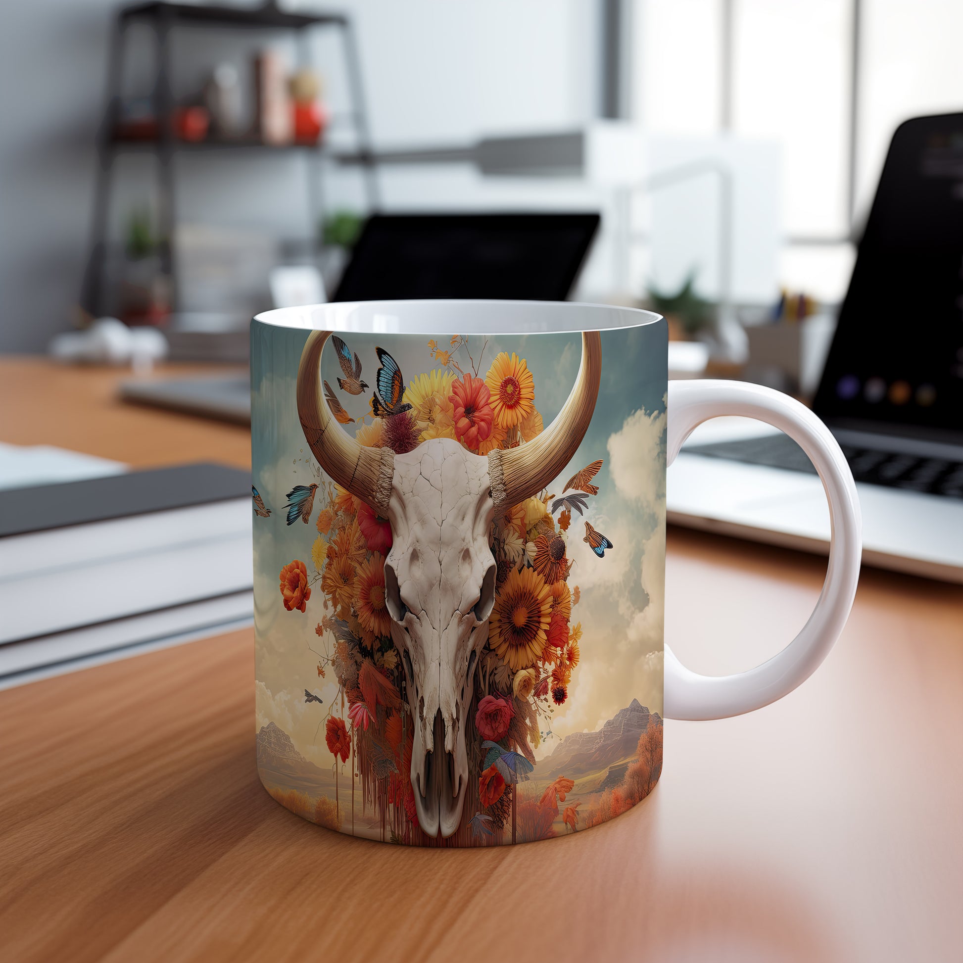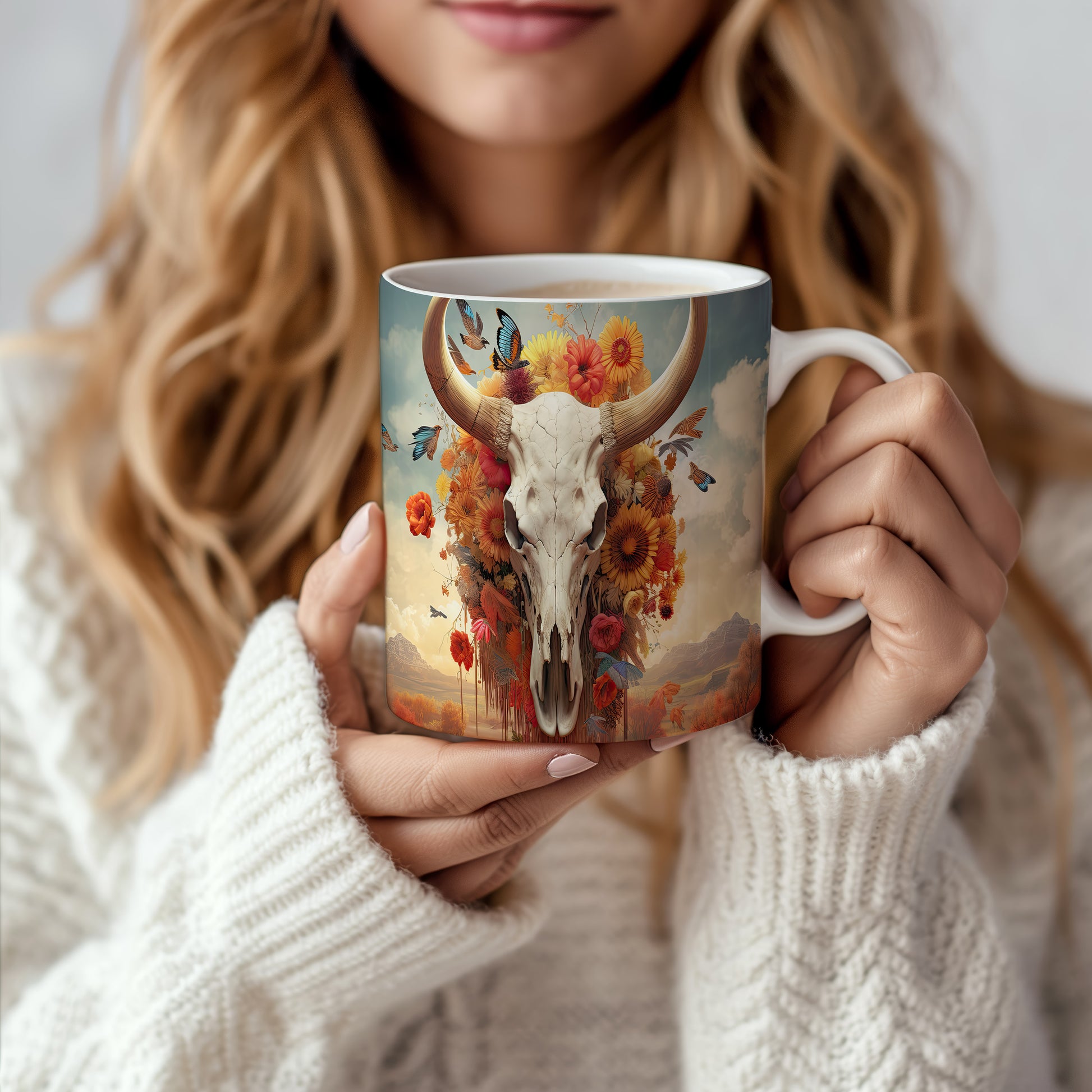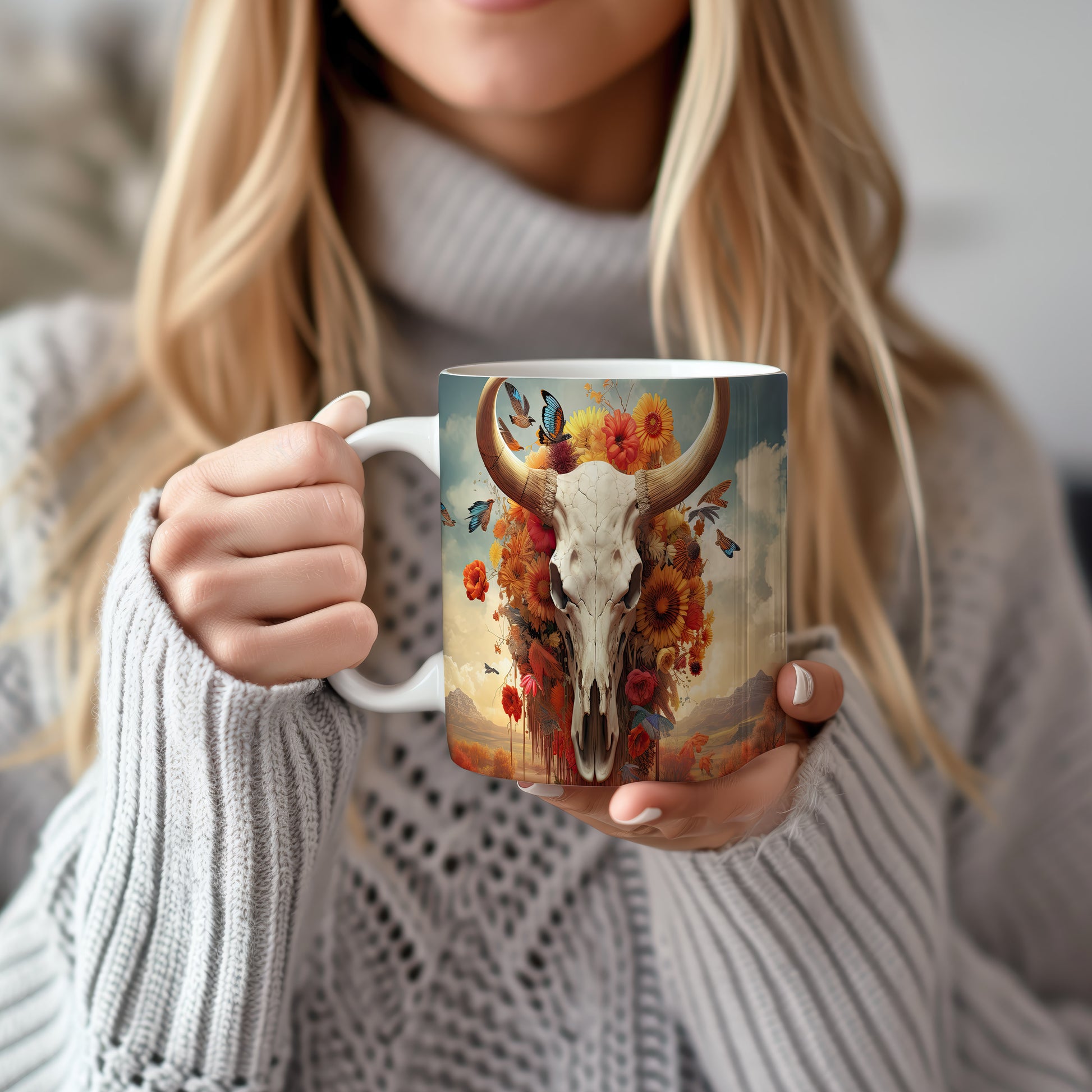 Tento hrnek zobrazuje lebku obklopenou fascinujícími květinami a motýli, což mu dodává jedinečný styl. Je ideální pro milovníky alternativního designu a skvělým dárkem pro přátele nebo rodinu. Materiál: keramika. Objem: 330 ml. Vhodné do myčky i mikrovlnky. Díky svému originálnímu vzhledu se stane ozdobou každého stolu.