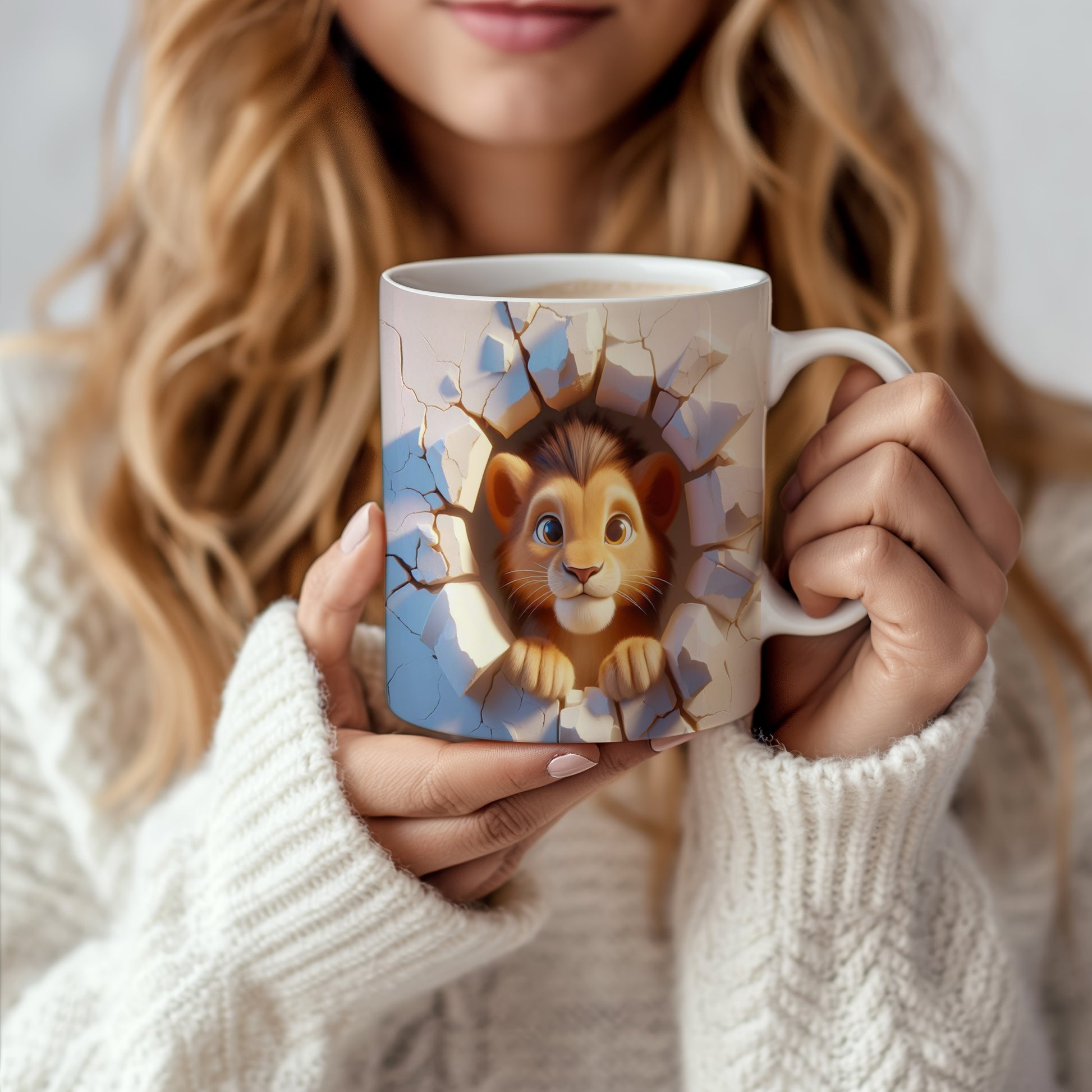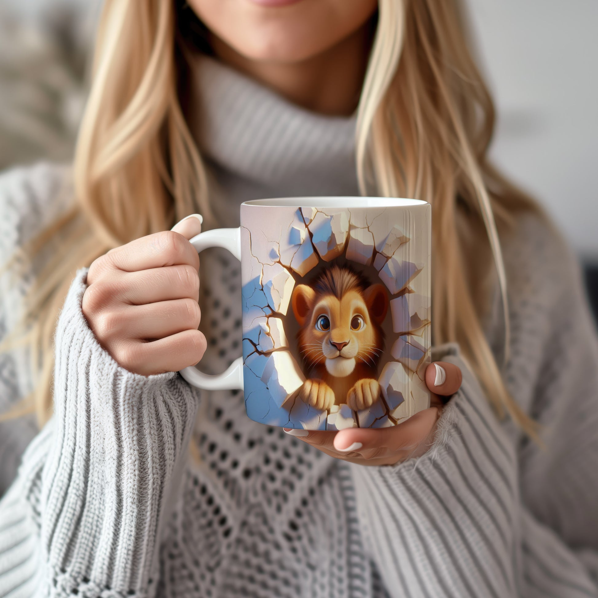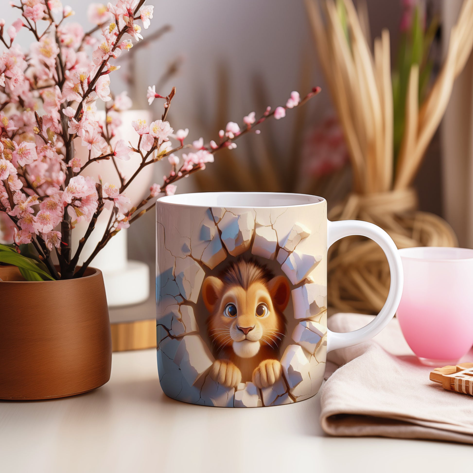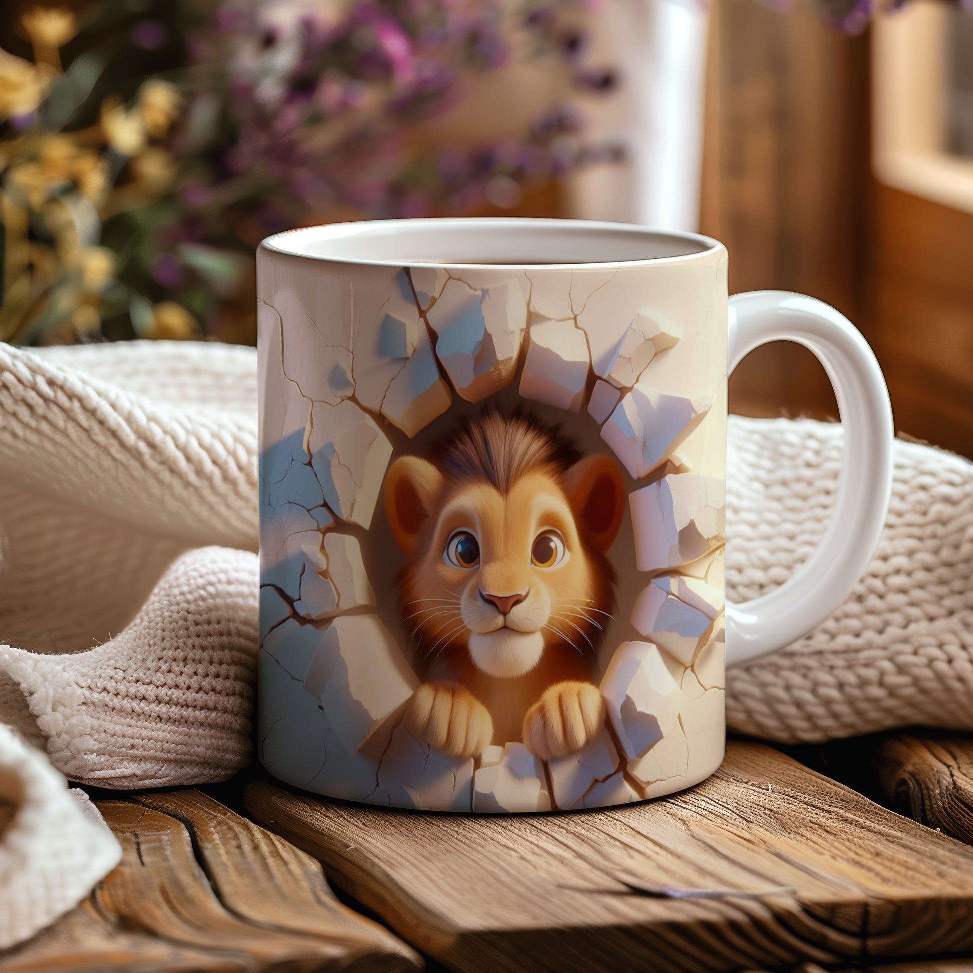 Tento hrnek zobrazuje roztomilé lvíče, které vykukuje z 3D efektu. Je ideální pro milovníky zvířat a skvělým dárkem pro děti. Materiál: keramika. Objem: 330 ml. Vhodné do myčky i mikrovlnky. Používání tohoto hrnku přináší radost z každého doušku.