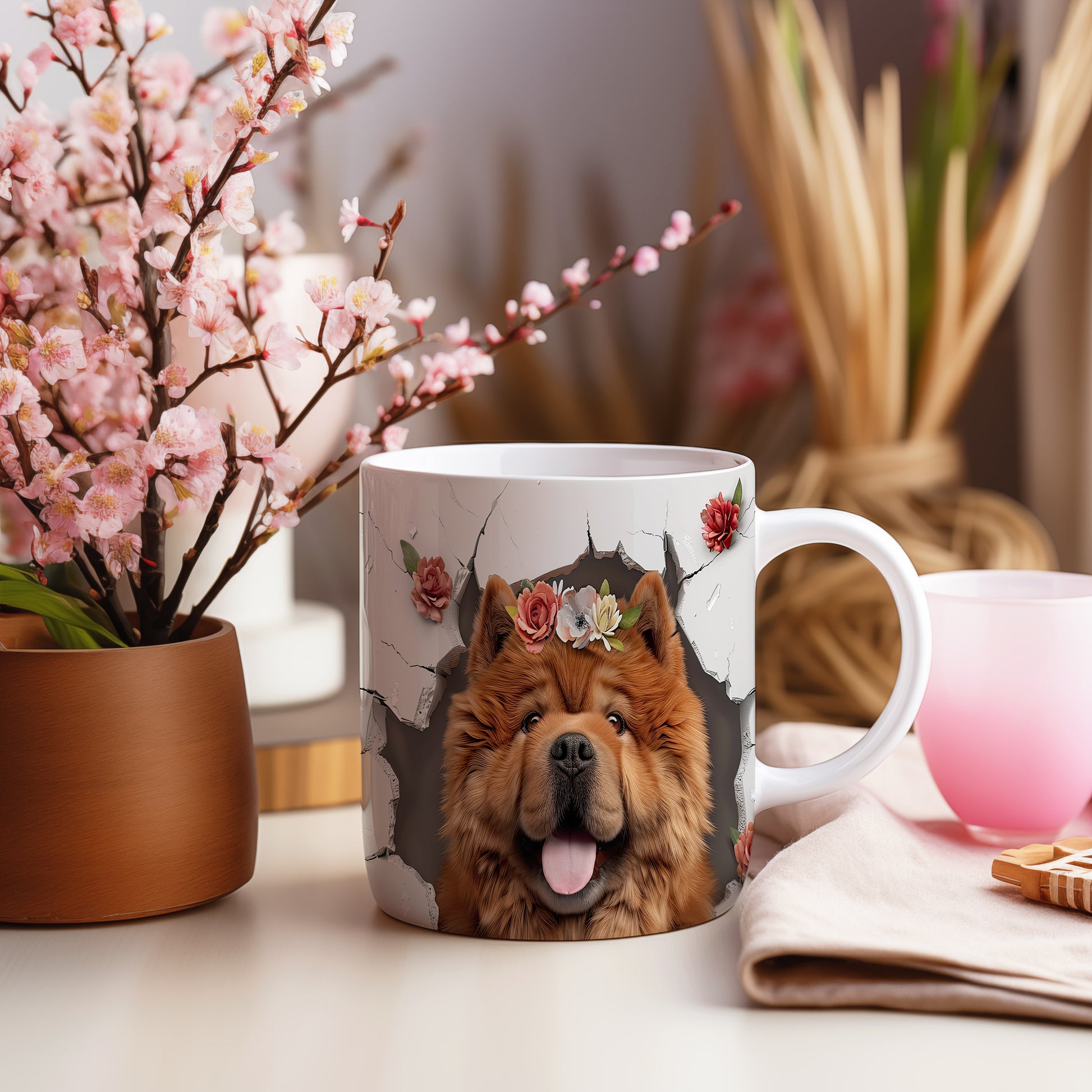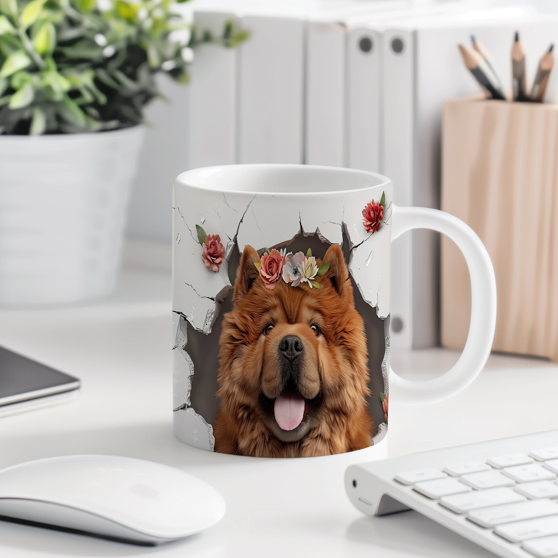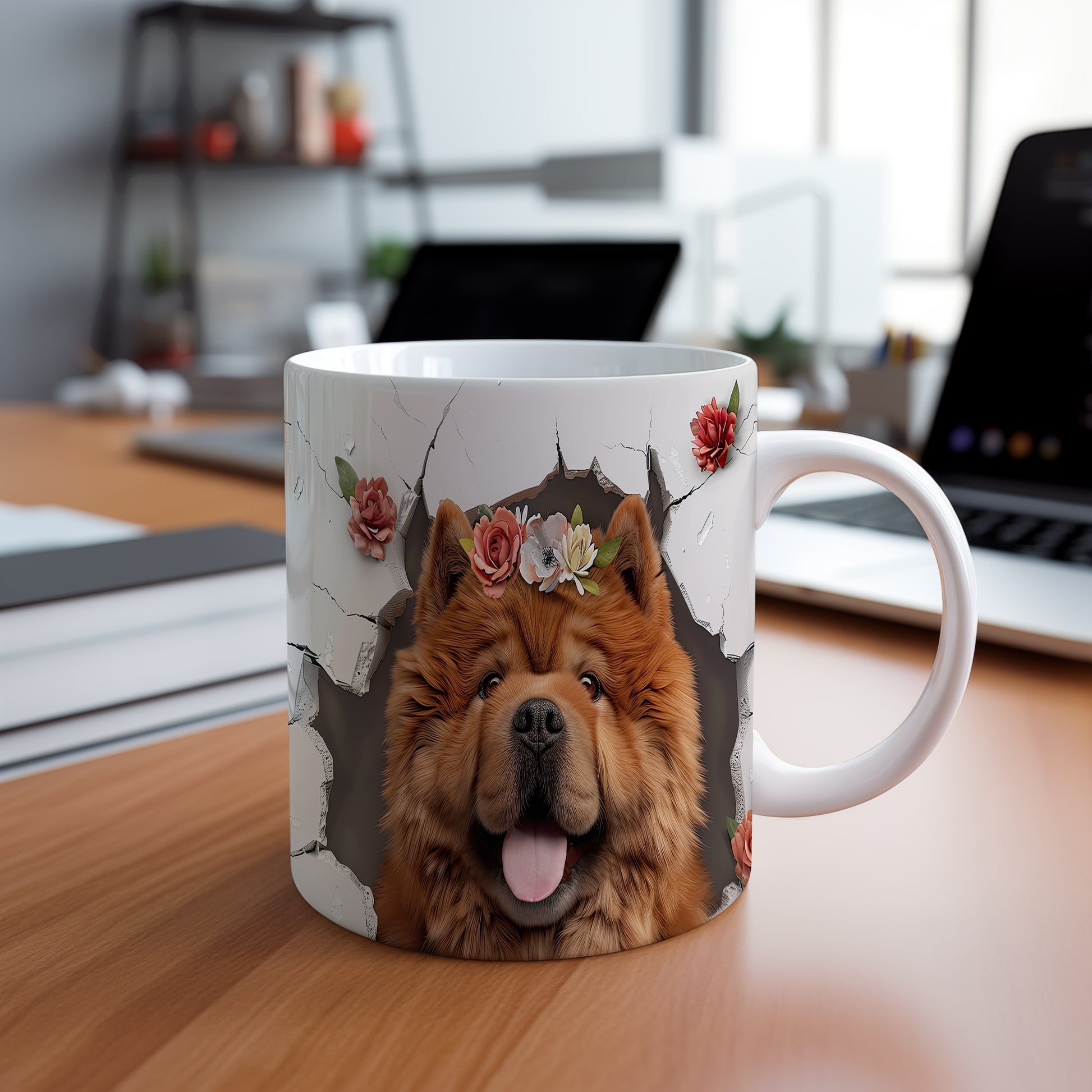 Tento keramický hrnek s realistickým motivem psa a květinovým věncem potěší všechny milovníky psů. Je skvělým dárkem pro přátele nebo rodinu, kteří mají rádi zvířata. Materiál: keramika. Objem: 330 ml. Vhodné do myčky i mikrovlnky. Používání tohoto hrnku přináší radost a útulnost do každého dne.