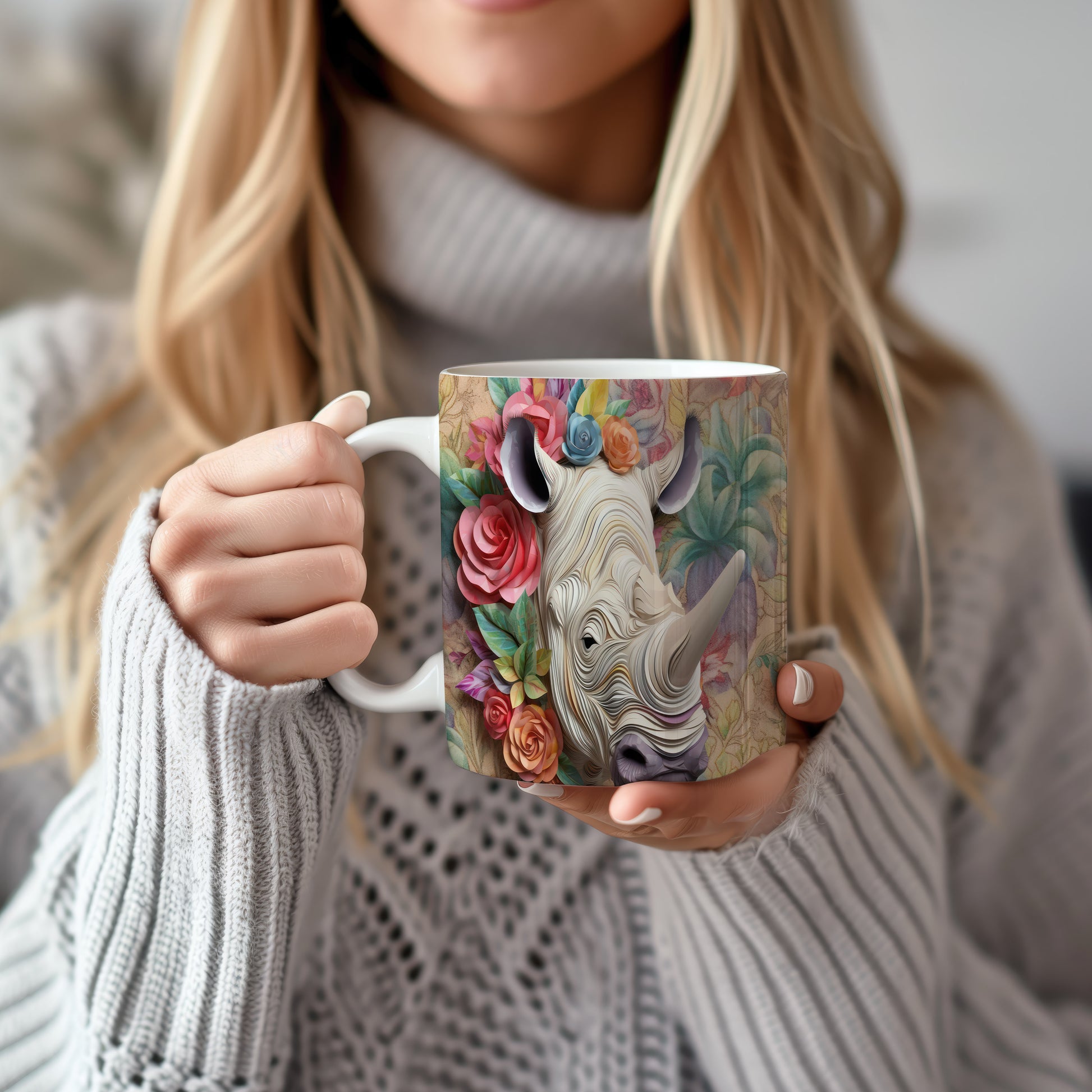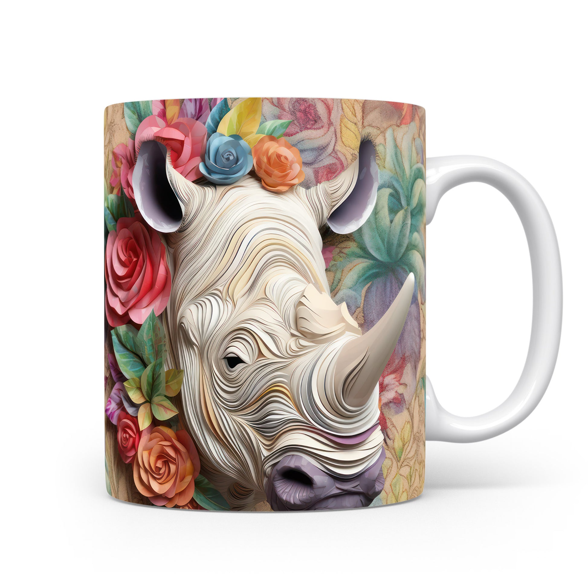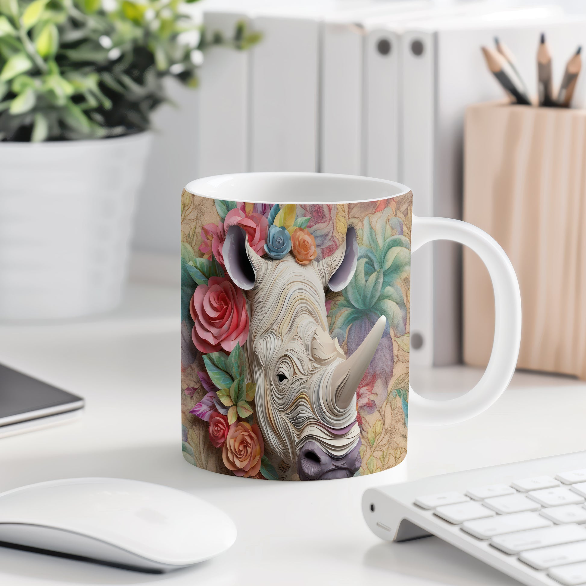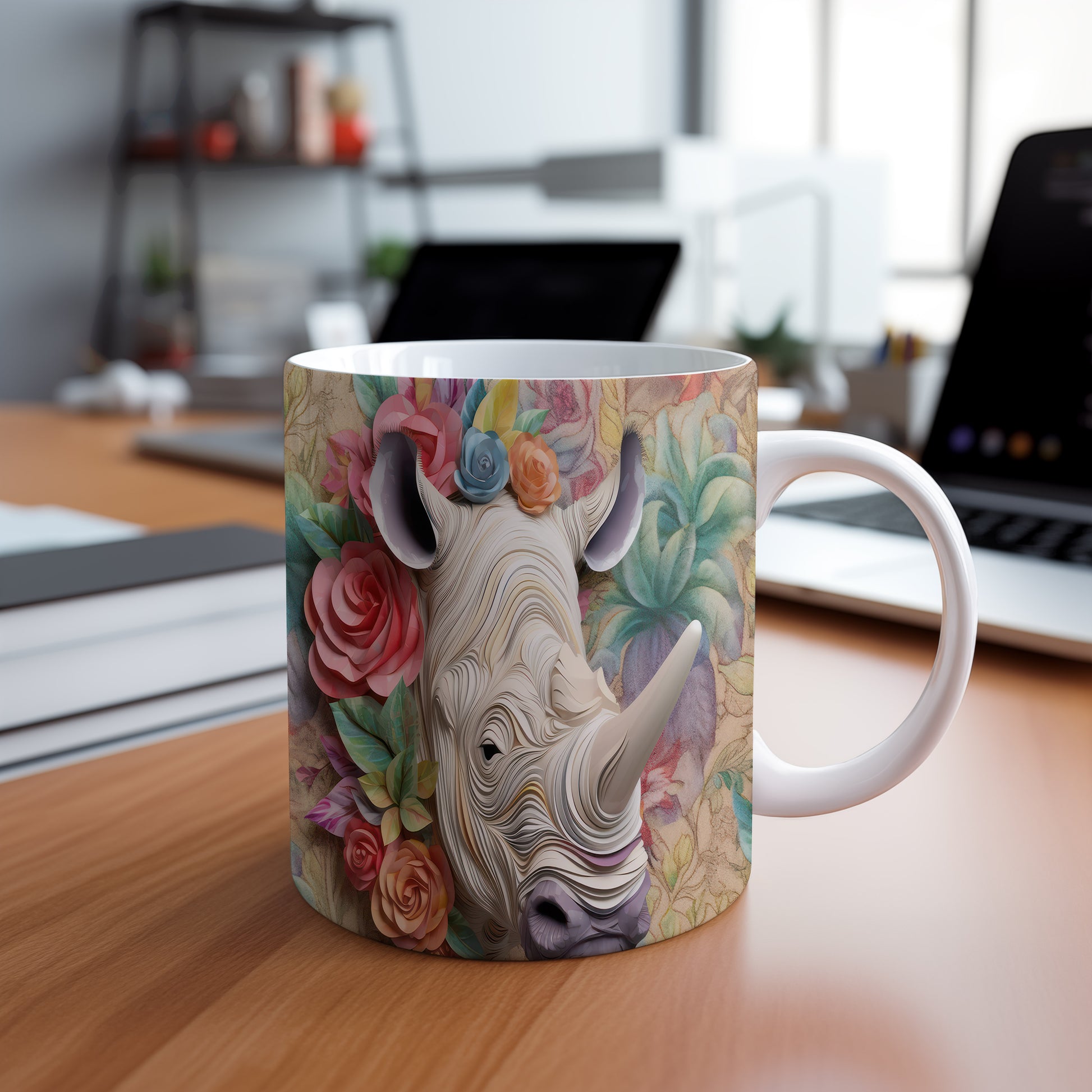Tento hrnek s detailním motivem řezaného nosorožce a barevnými květinami je skvělou volbou pro milovníky přírody. Je ideální jako dárek pro přátele nebo rodinu, kteří ocení originální design. Materiál: keramika. Objem: 330 ml. Vhodné do myčky i mikrovlnky. Používáním tohoto hrnku si užijete nejen kávu nebo čaj, ale také krásný pohled na přírodu.
