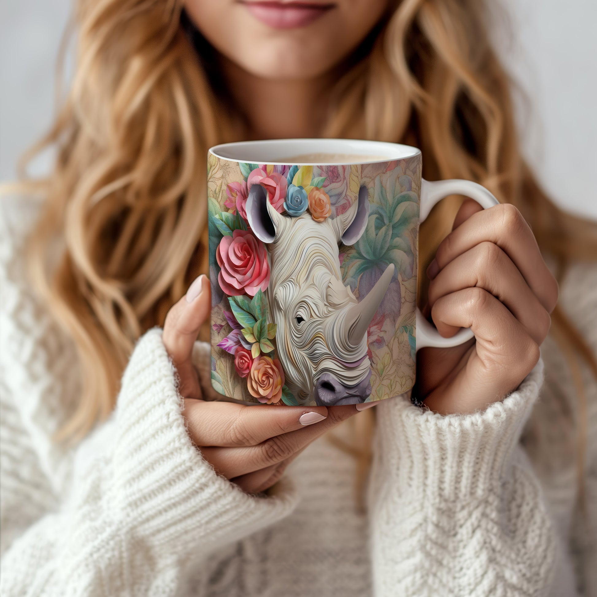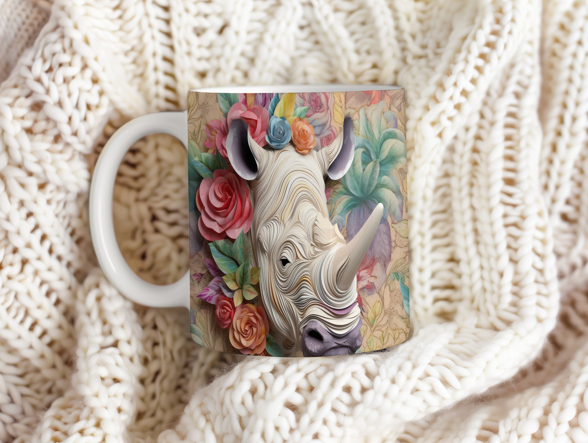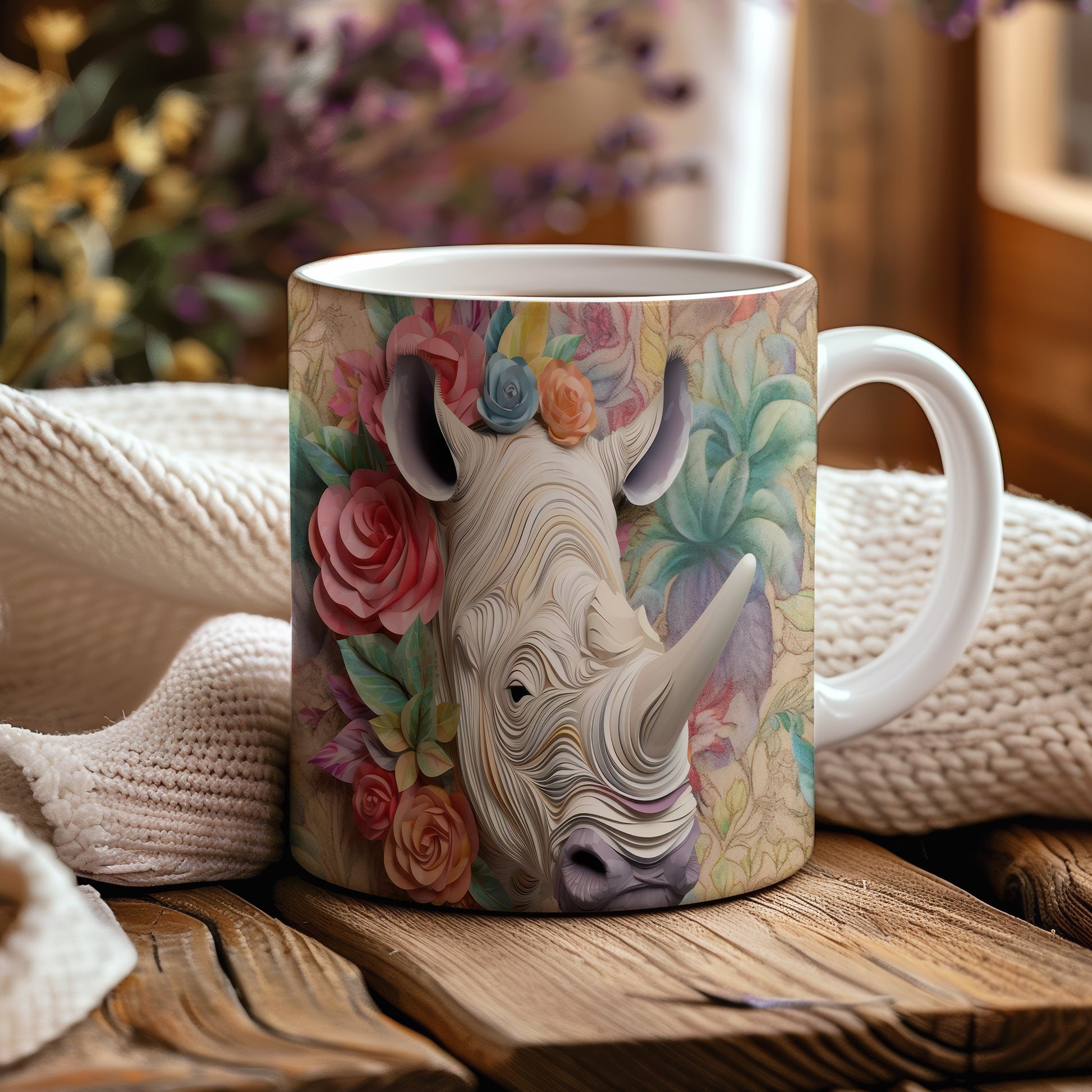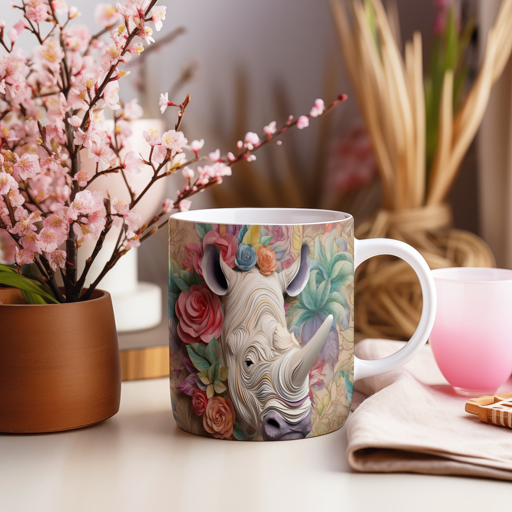 Tento hrnek s detailním motivem řezaného nosorožce a barevnými květinami je skvělou volbou pro milovníky přírody. Je ideální jako dárek pro přátele nebo rodinu, kteří ocení originální design. Materiál: keramika. Objem: 330 ml. Vhodné do myčky i mikrovlnky. Používáním tohoto hrnku si užijete nejen kávu nebo čaj, ale také krásný pohled na přírodu.