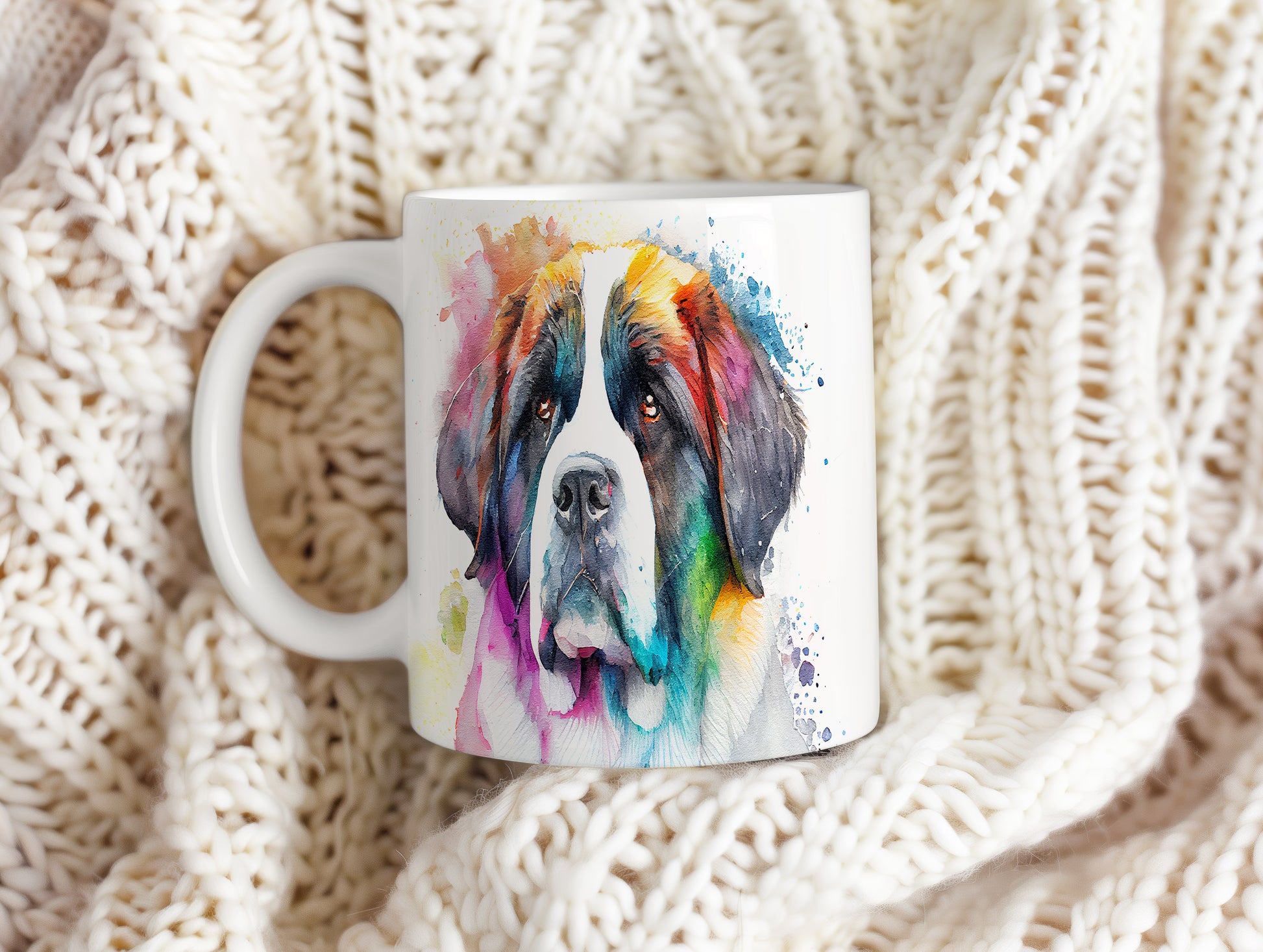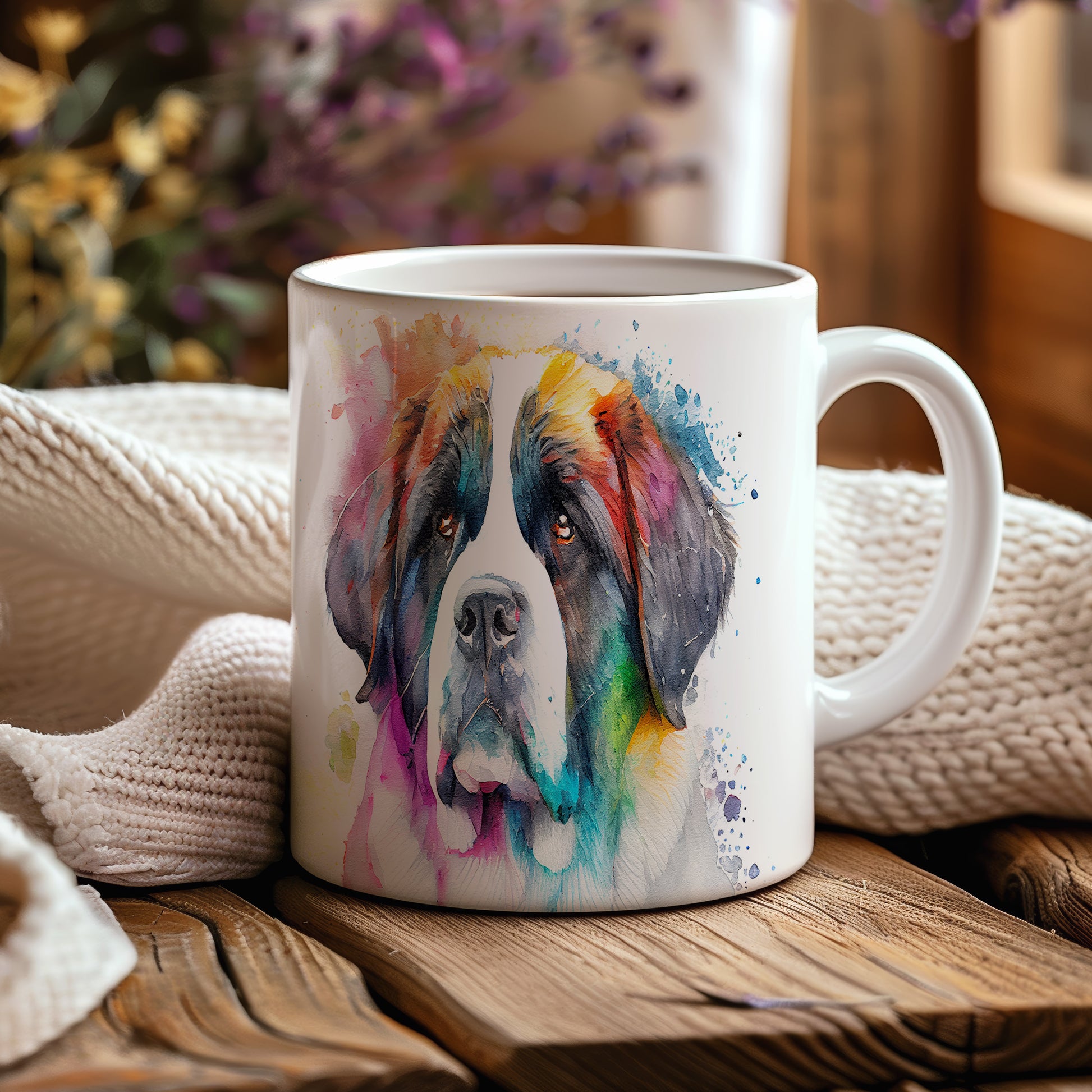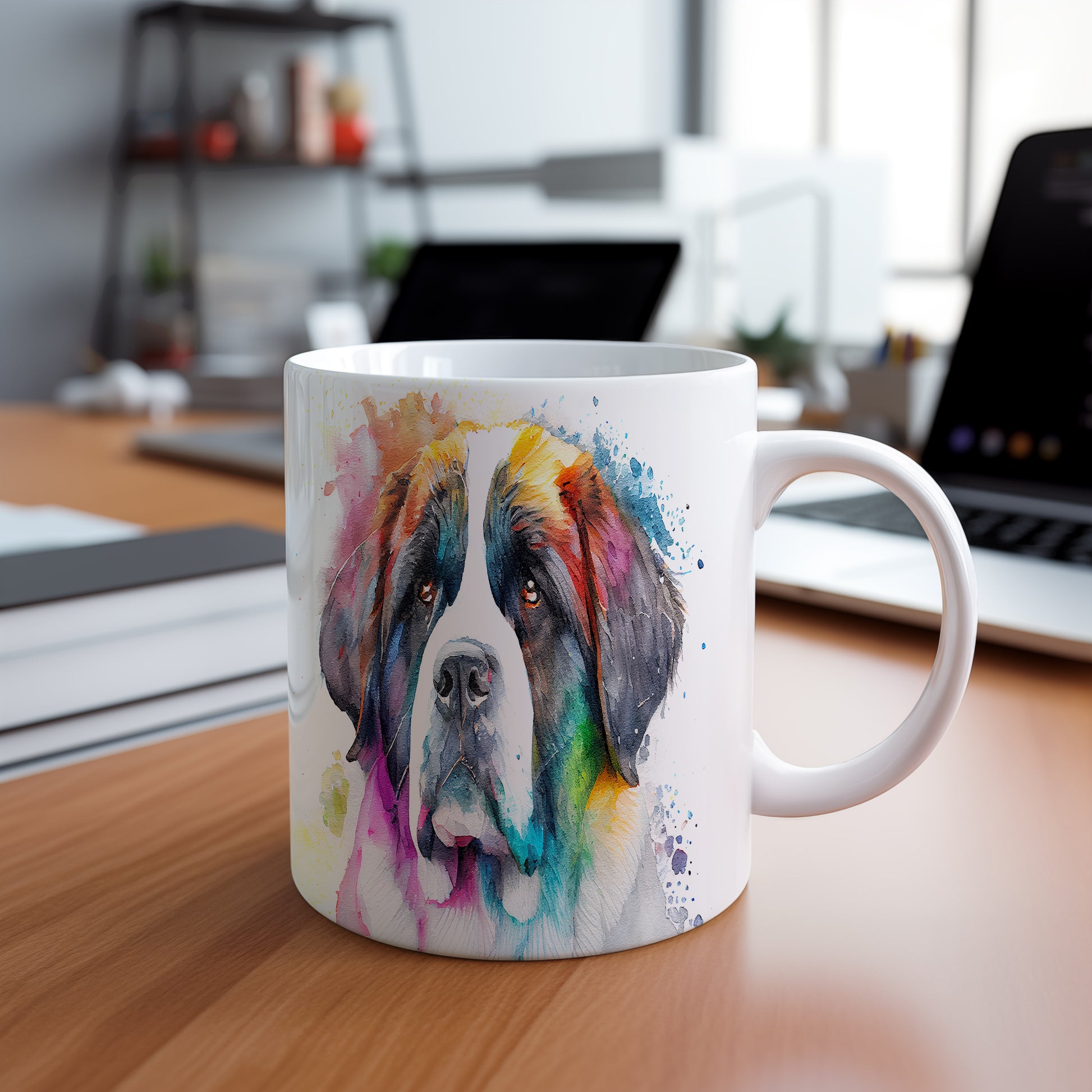 Hrnek se Saint Bernardem v živých barvách je skvělým kouskem pro milovníky psů. Tento keramický hrnek je ideální jako dárek pro přátele nebo rodinu, kteří ocení originální design. Materiál: keramika. Objem: 330 ml. Vhodné do myčky i mikrovlnky. Užívejte si svou oblíbenou kávu nebo čaj s tímto stylovým hrnkem.