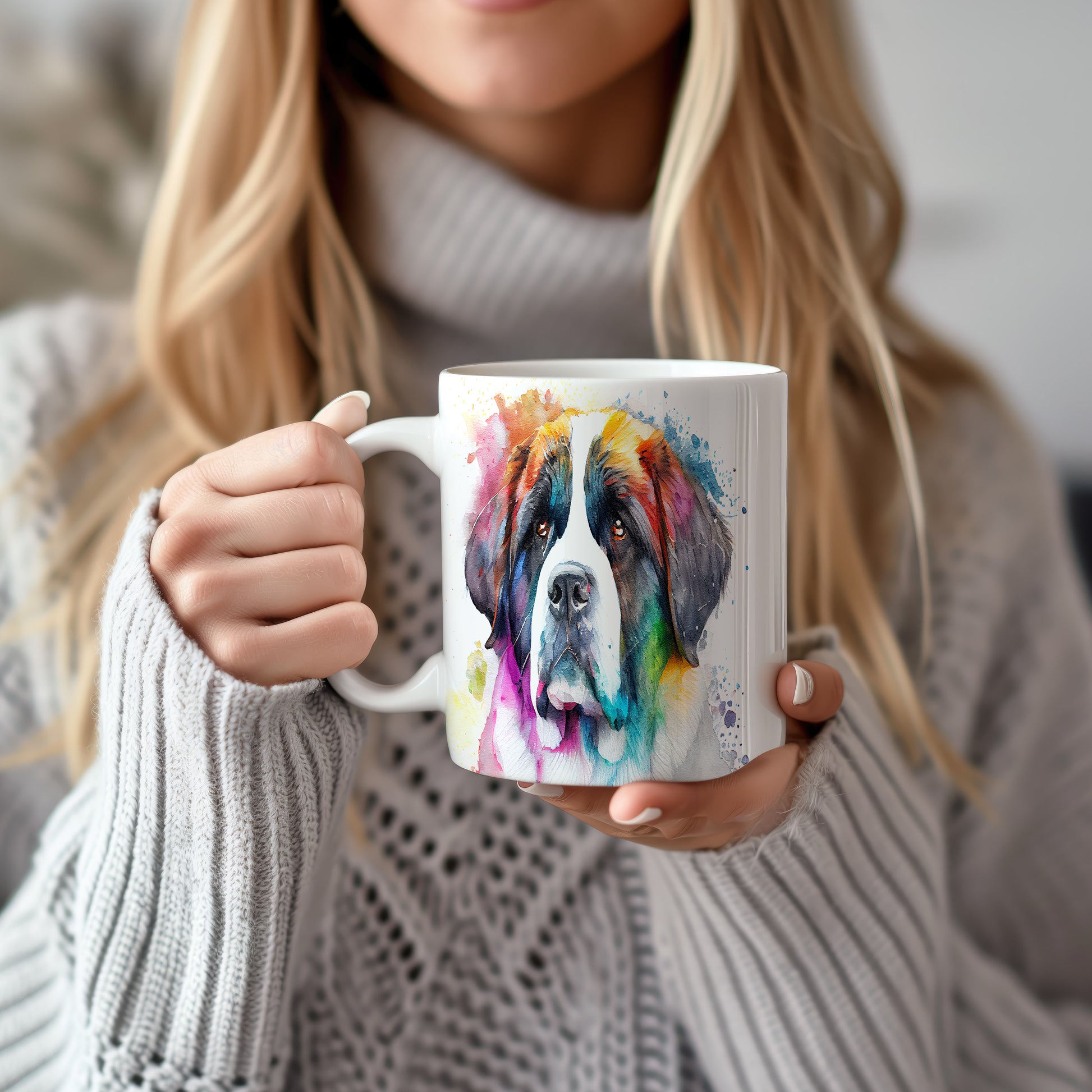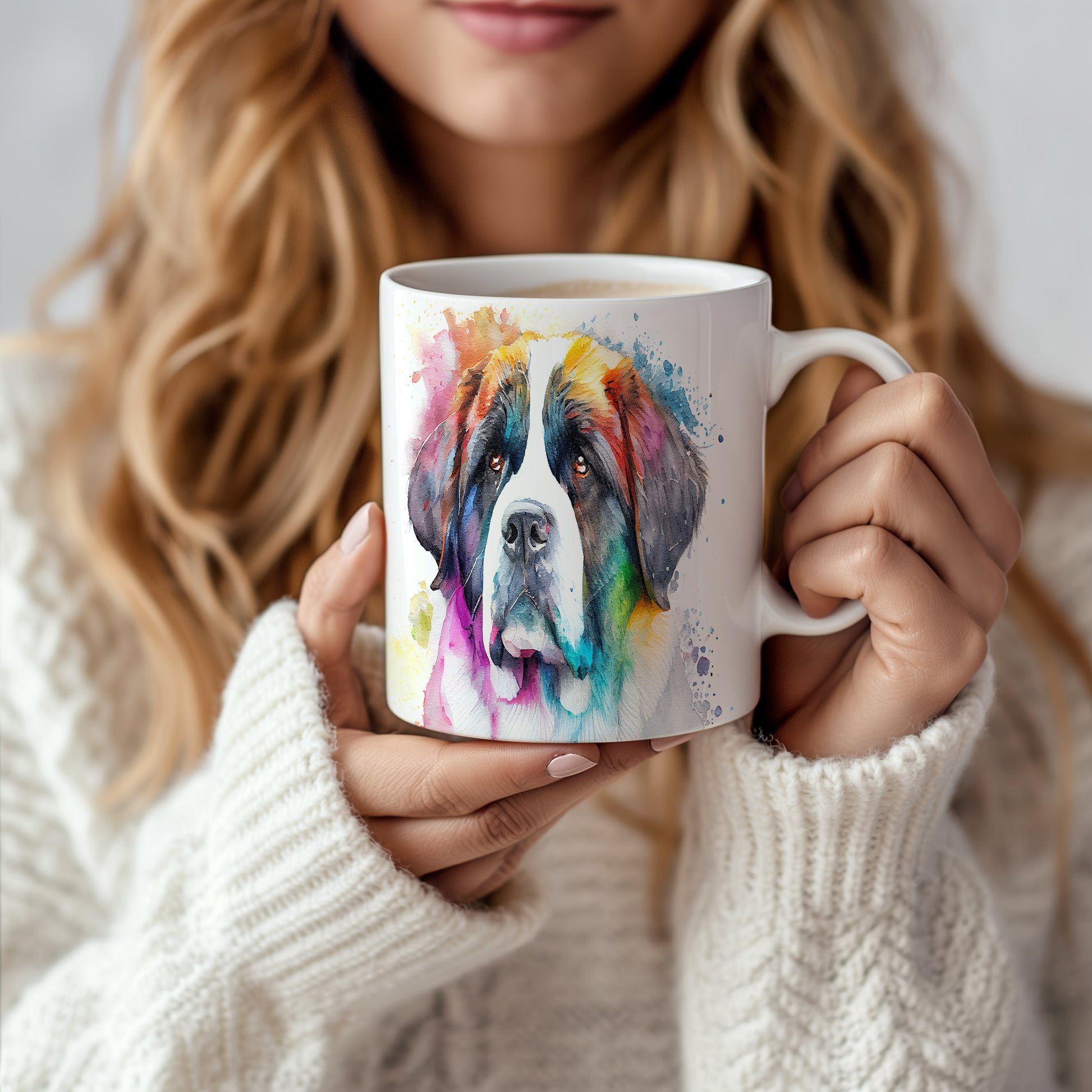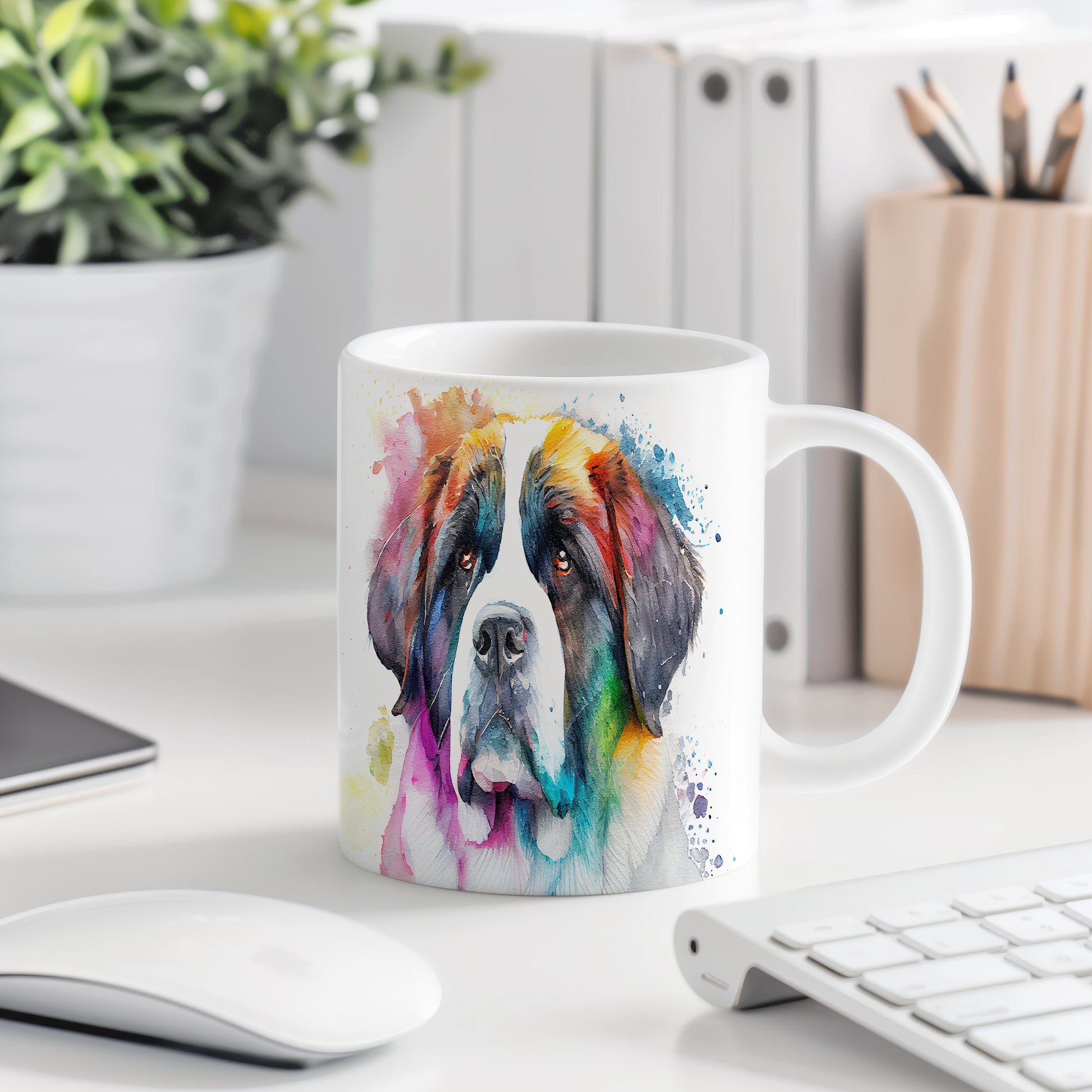 Hrnek se Saint Bernardem v živých barvách je skvělým kouskem pro milovníky psů. Tento keramický hrnek je ideální jako dárek pro přátele nebo rodinu, kteří ocení originální design. Materiál: keramika. Objem: 330 ml. Vhodné do myčky i mikrovlnky. Užívejte si svou oblíbenou kávu nebo čaj s tímto stylovým hrnkem.