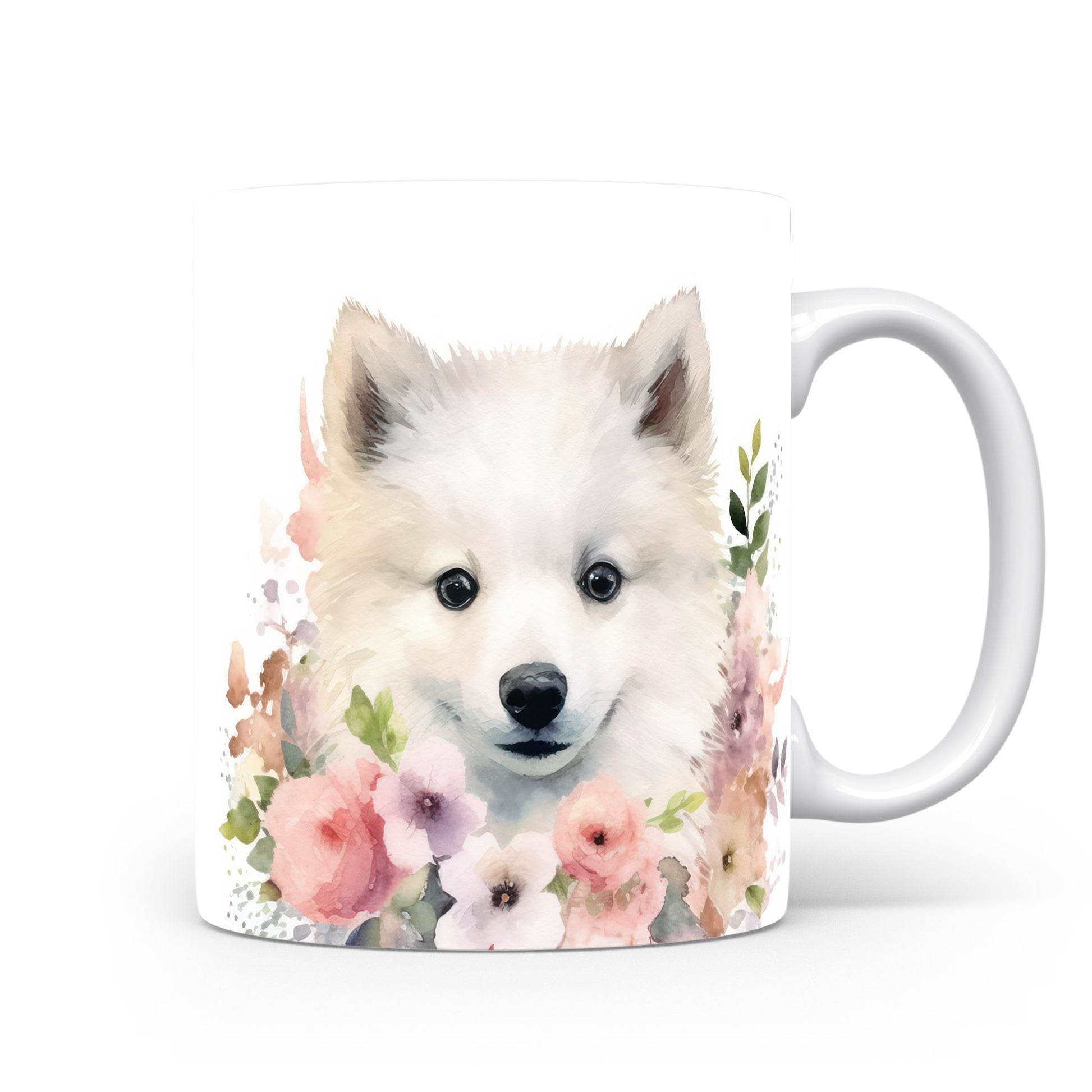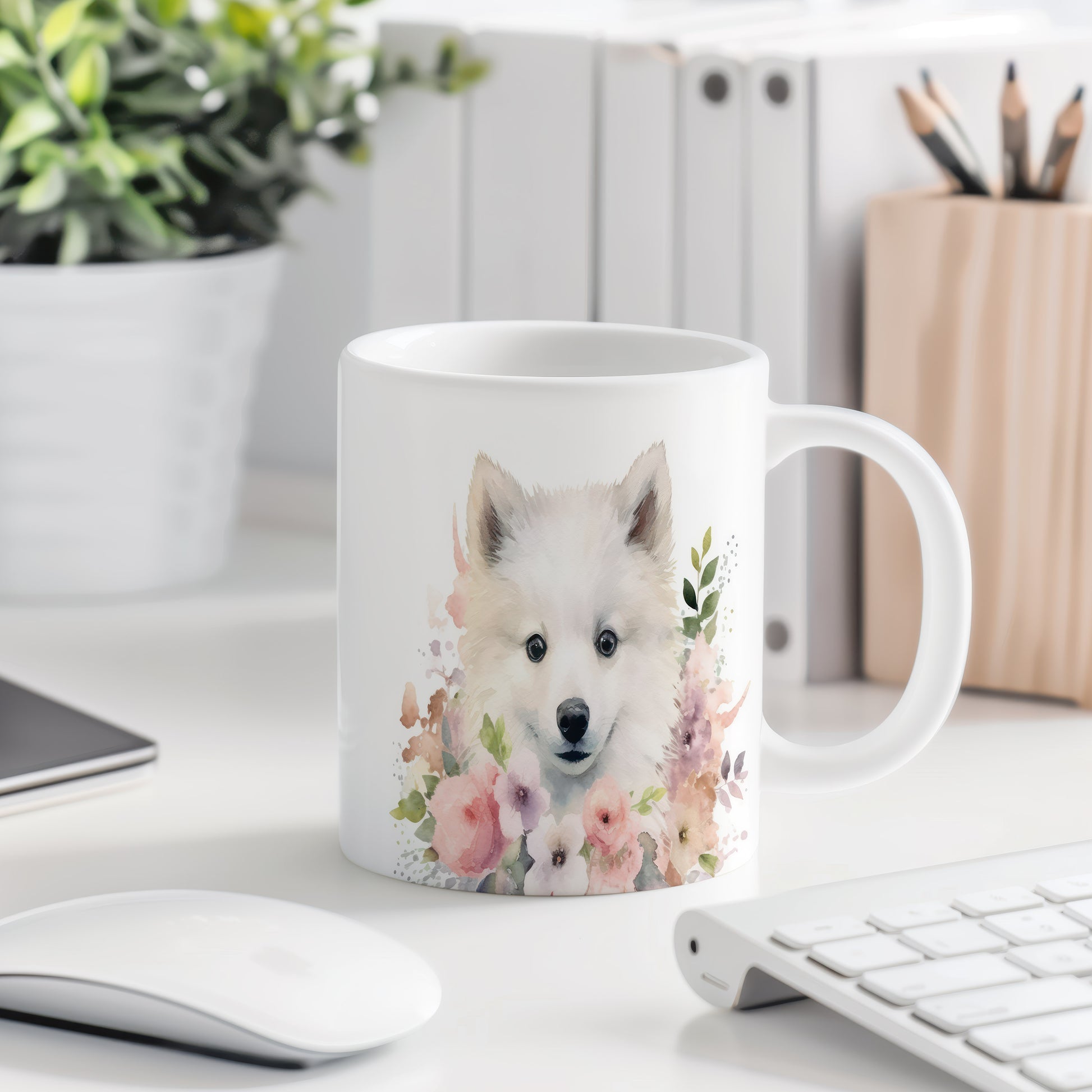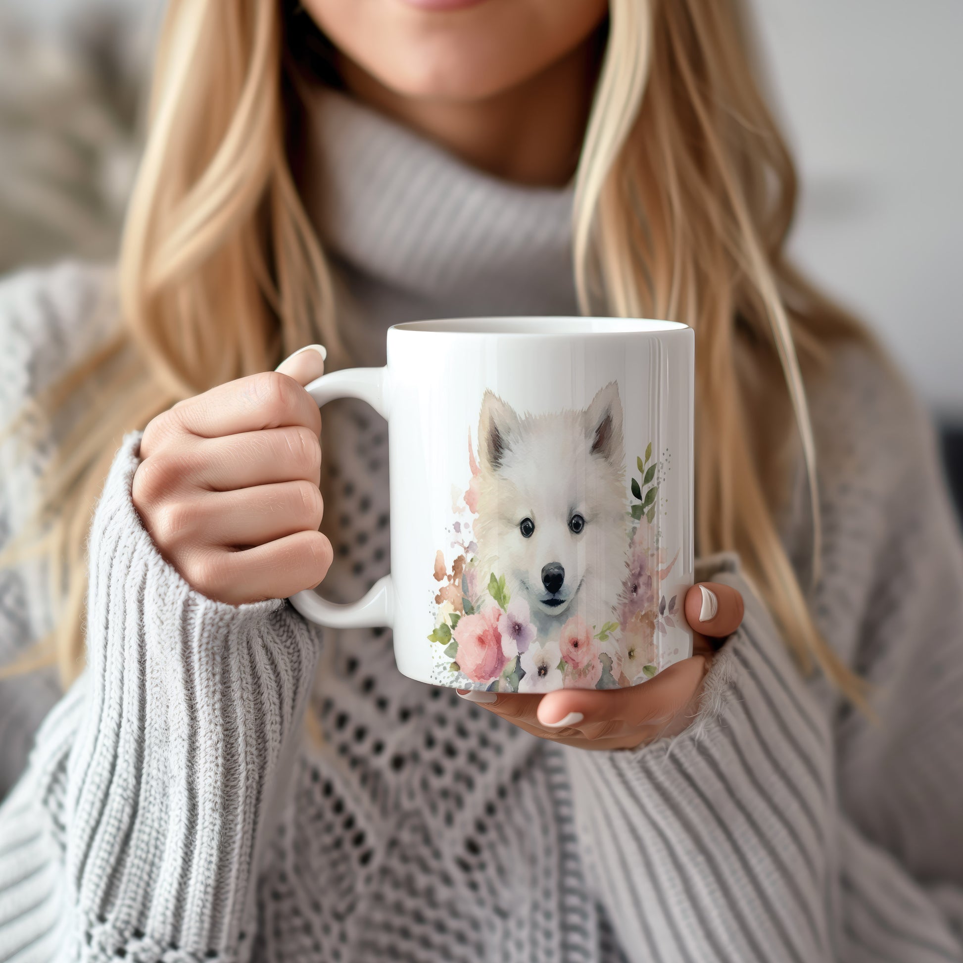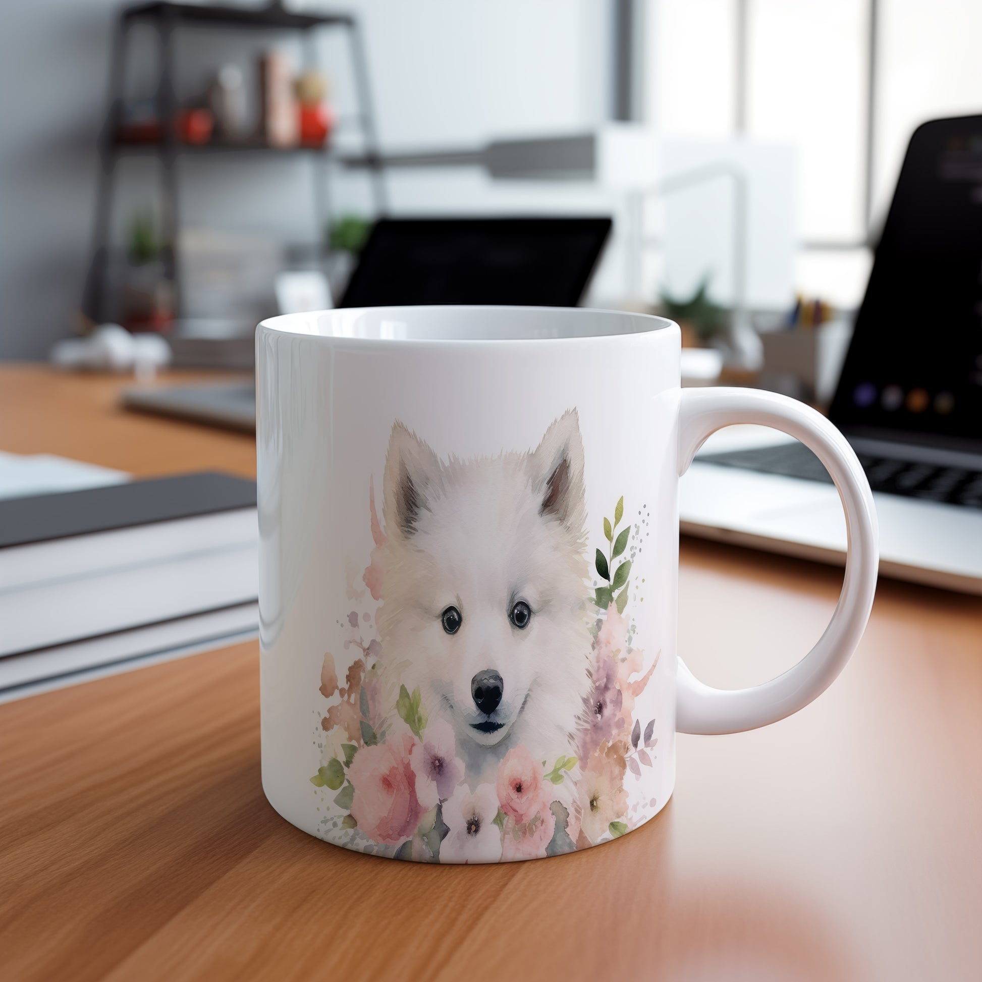 Elegantní hrnek s motivem roztomilého samojeda obklopeného barevnými květinami. Tento hrnek je ideální pro milovníky psů a přírody, skvělý tip na dárek pro přátele nebo rodinu. Materiál: keramika. Objem: 330 ml. Vhodné do myčky i mikrovlnky. Užijte si své oblíbené nápoje s tímto stylovým kouskem.