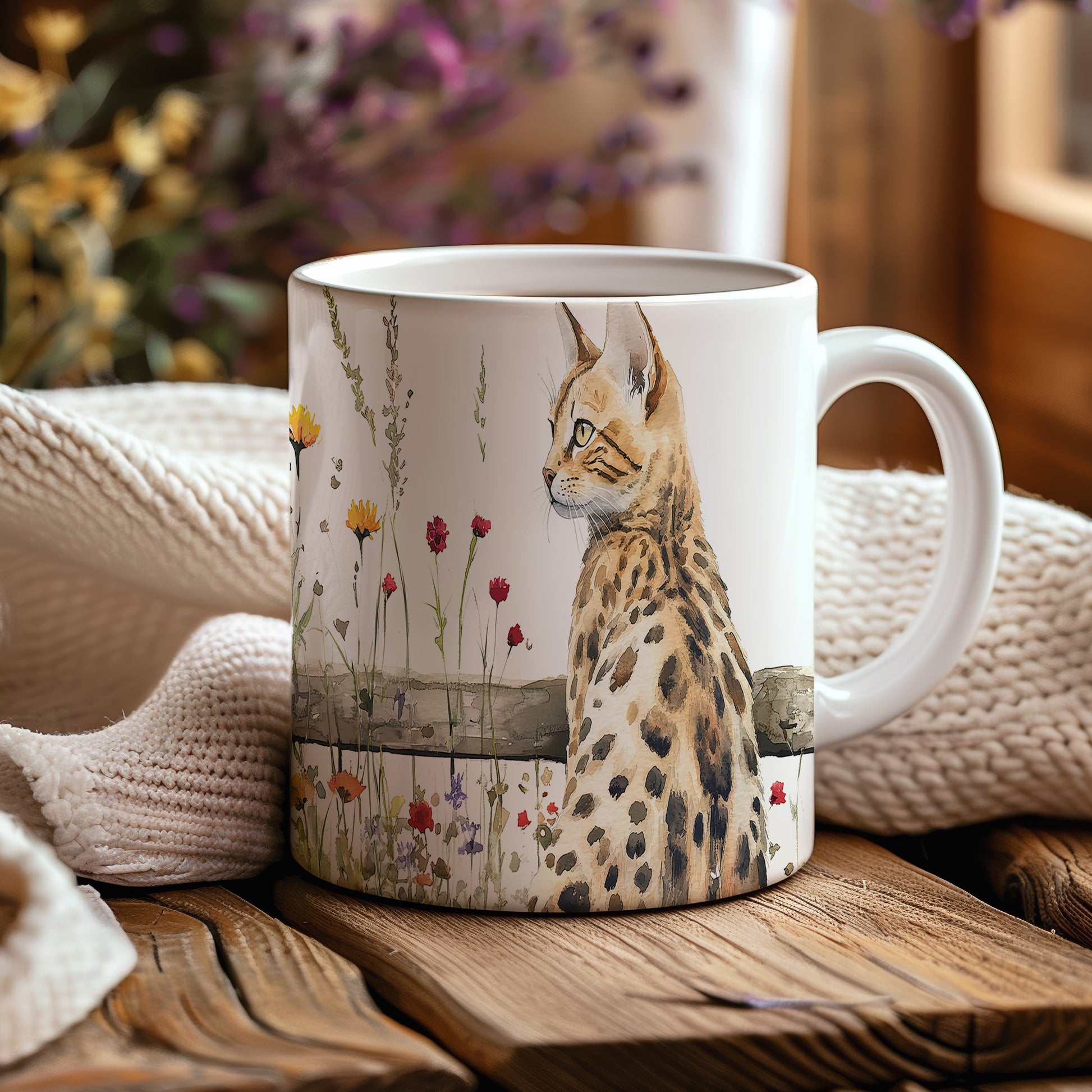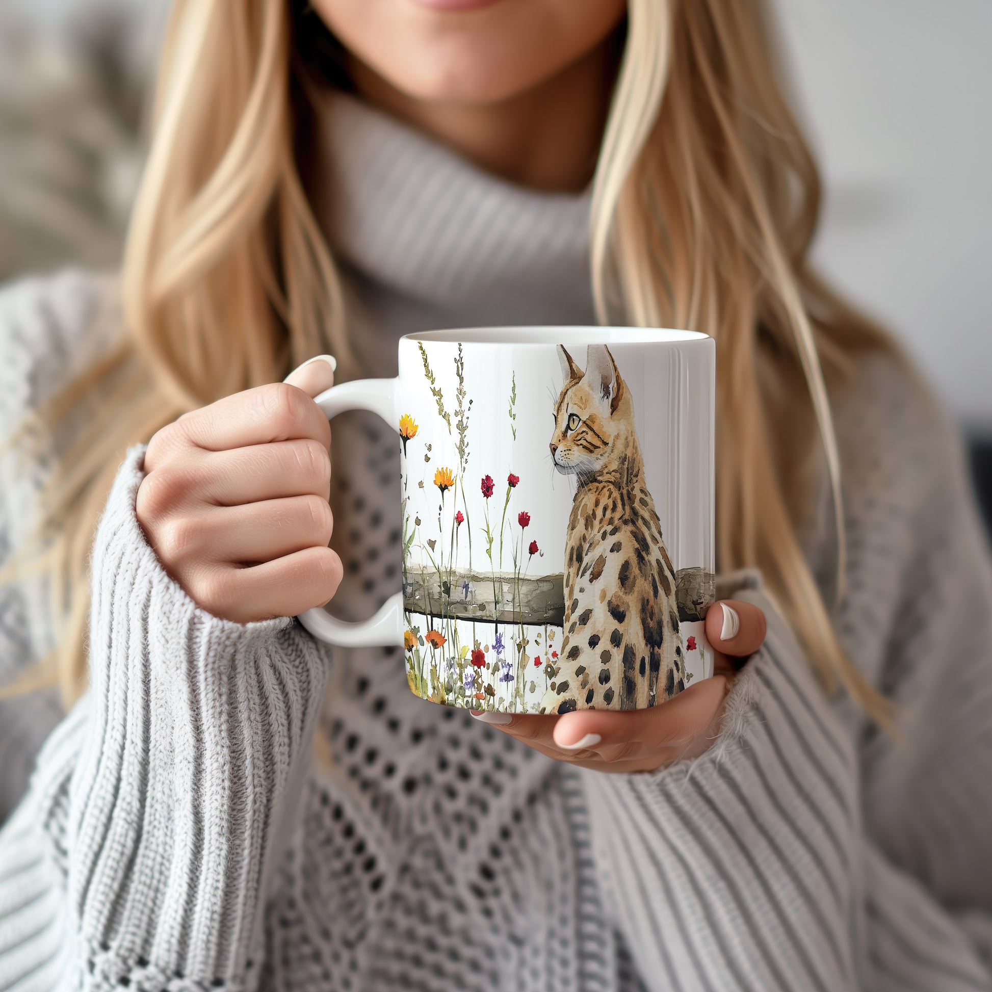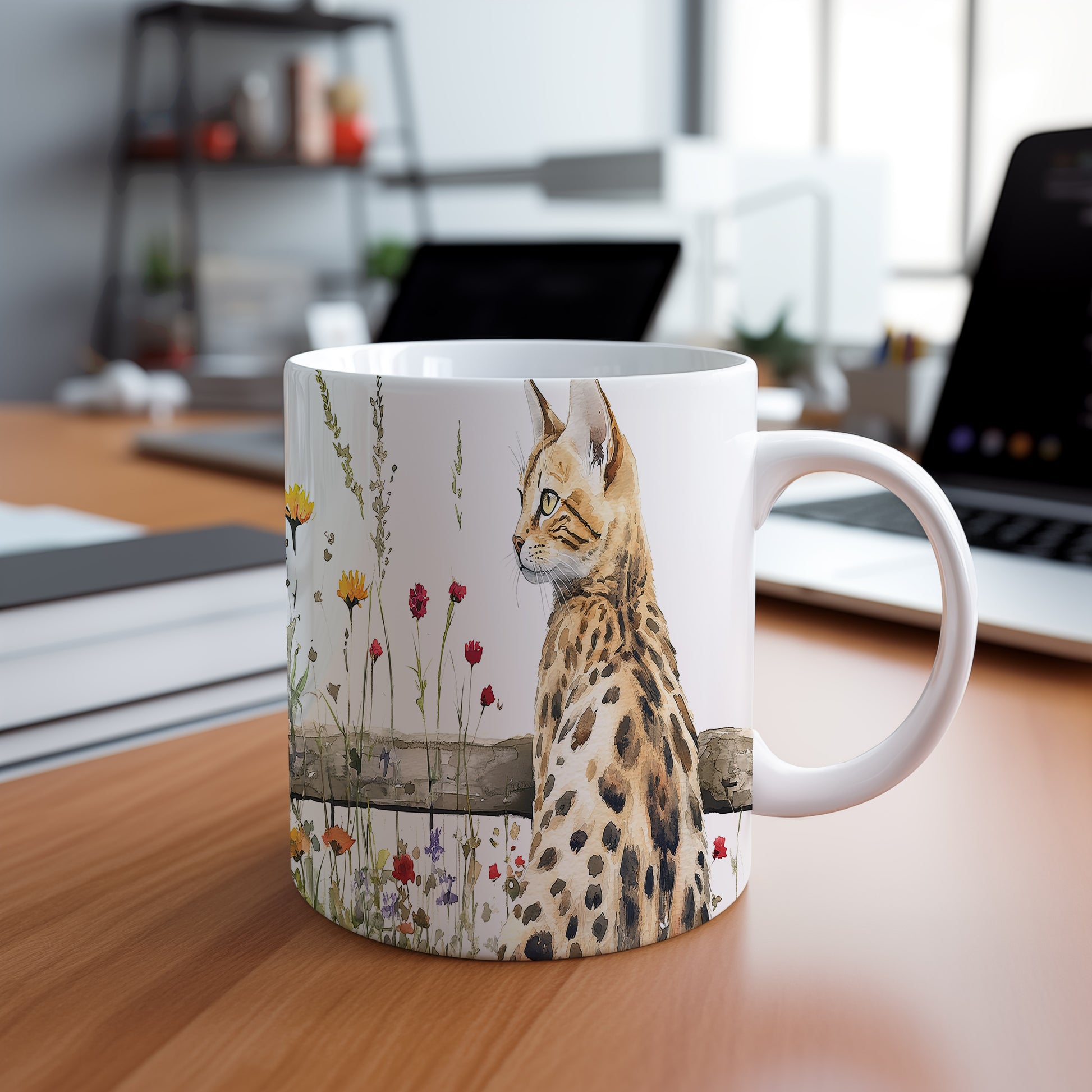 Hrnek s motivem savanového kočky, který sedí mezi květinami. Tento stylový hrnek je ideální pro milovníky zvířat a přírody, skvělý tip na dárek pro přátele či rodinu. Materiál: keramika. Objem: 330 ml. Vhodné do myčky i mikrovlnky. Užívejte si kávu nebo čaj s tímto jedinečným kouskem, který přinese do vašeho dne radost a pohodu.