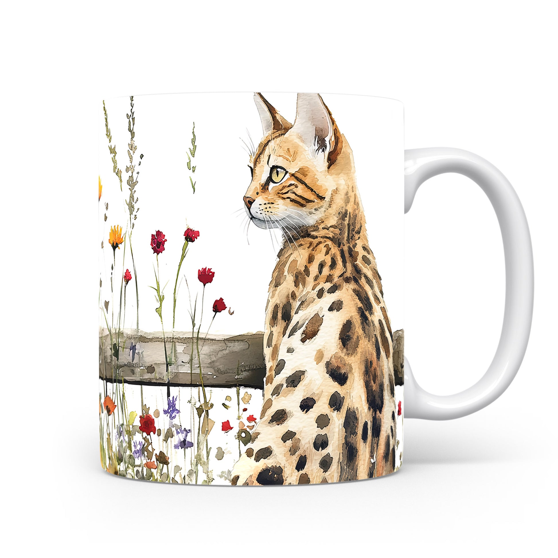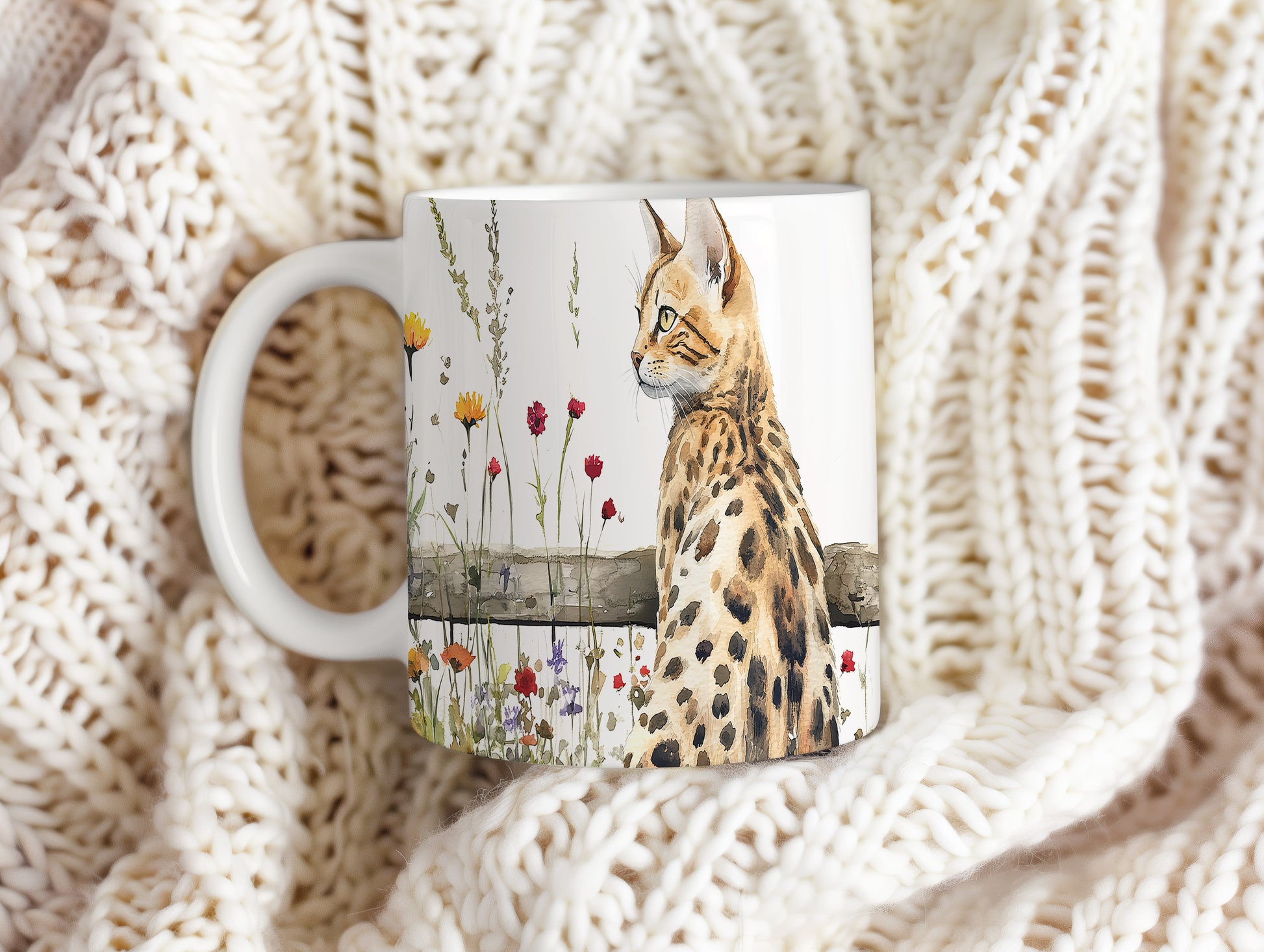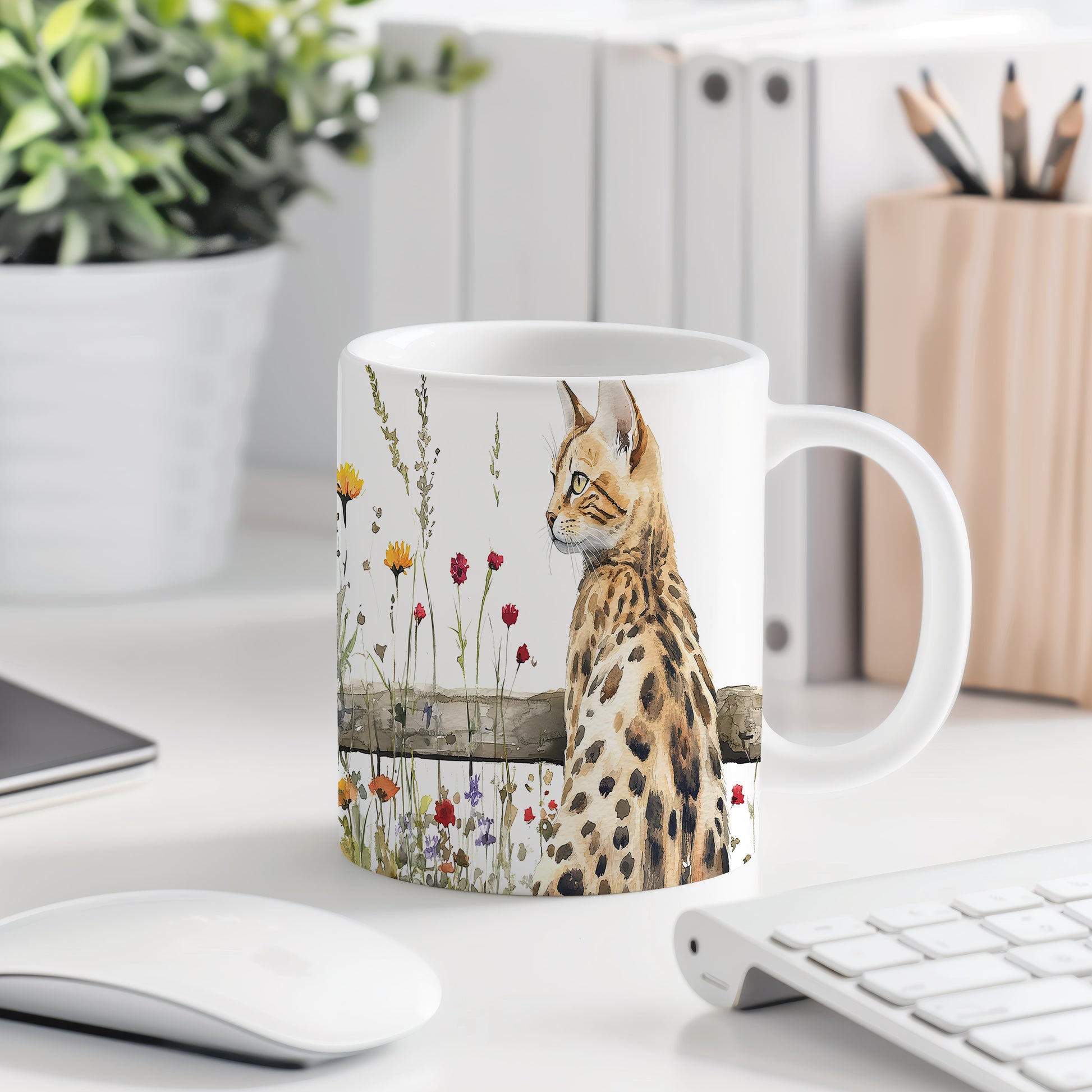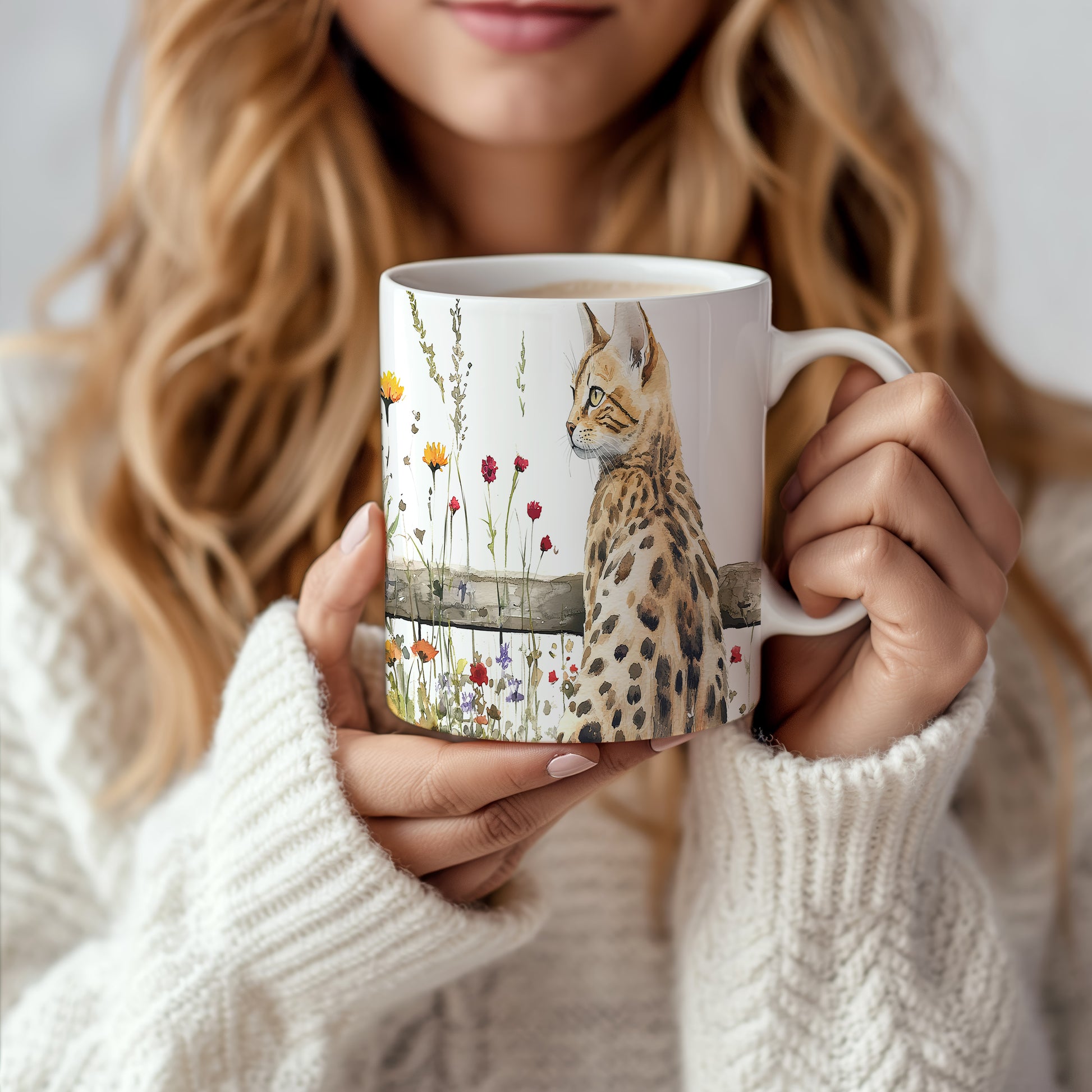Hrnek s motivem savanového kočky, který sedí mezi květinami. Tento stylový hrnek je ideální pro milovníky zvířat a přírody, skvělý tip na dárek pro přátele či rodinu. Materiál: keramika. Objem: 330 ml. Vhodné do myčky i mikrovlnky. Užívejte si kávu nebo čaj s tímto jedinečným kouskem, který přinese do vašeho dne radost a pohodu.