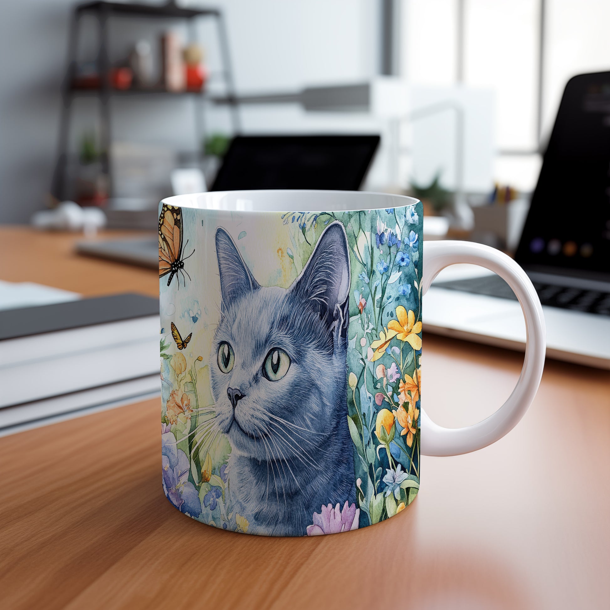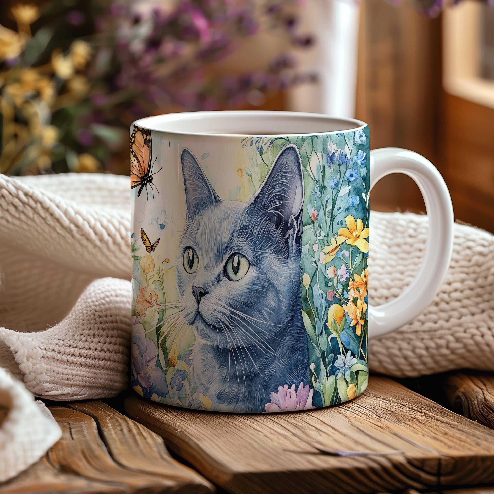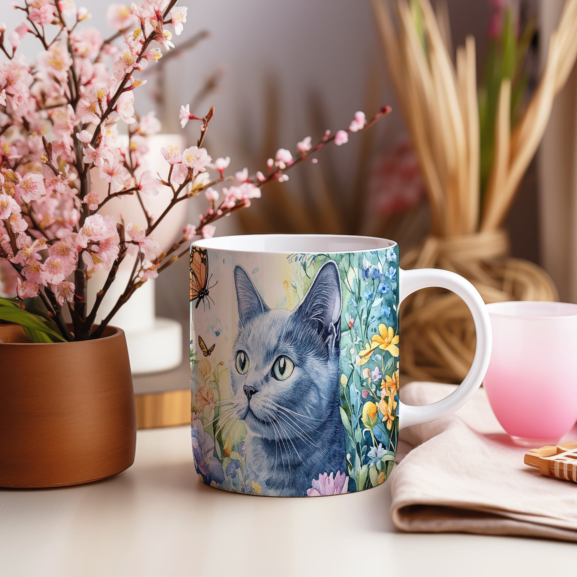 Tento hrnek zobrazuje šedou kočku obklopenou barevnými květinami. Je ideální pro milovníky koček a přírody, skvělý tip na dárek pro přátele nebo rodinu. Materiál: keramika. Objem: 330 ml. Vhodné do myčky i mikrovlnky. Užívejte si svou oblíbenou kávu nebo čaj s tímto stylovým hrnkem.
