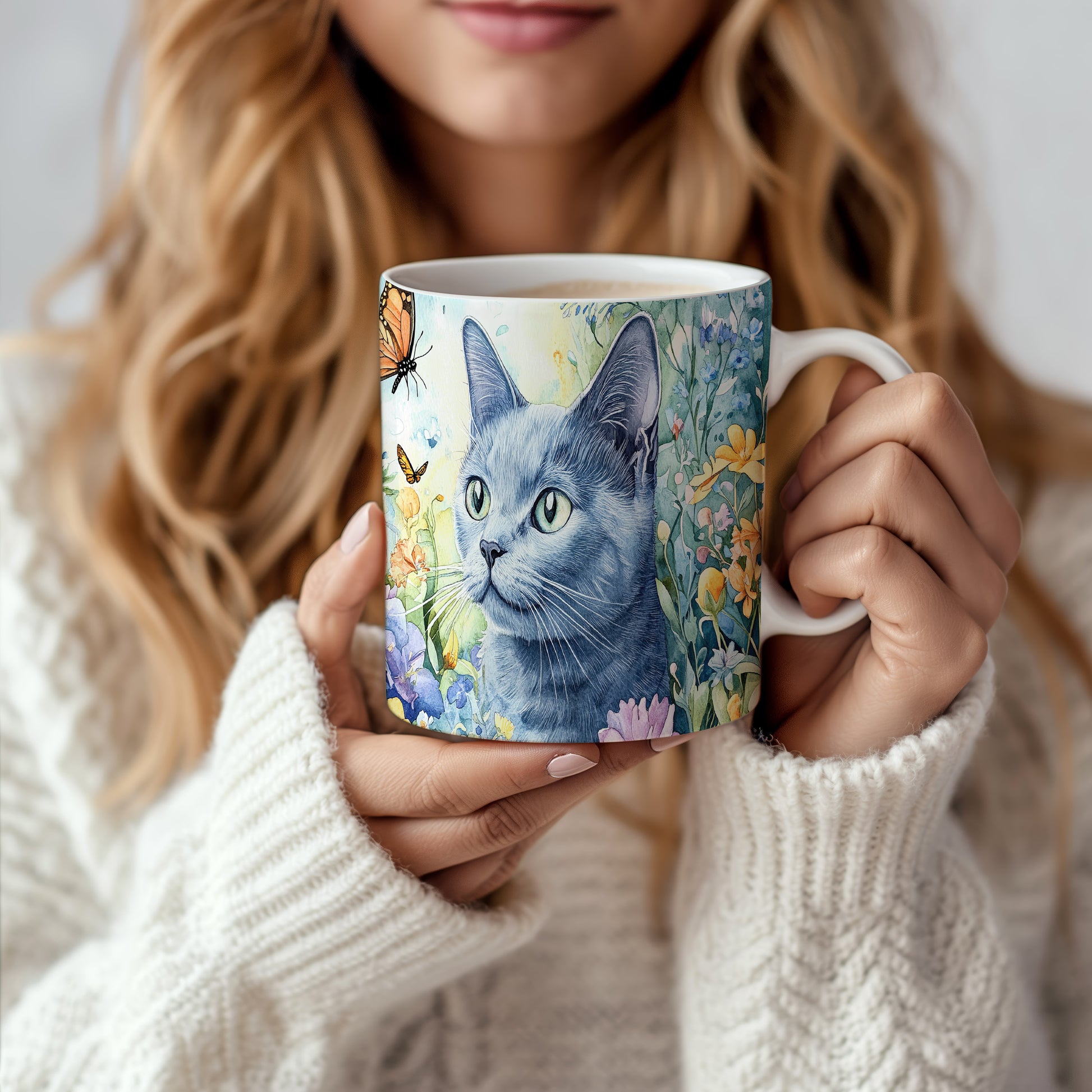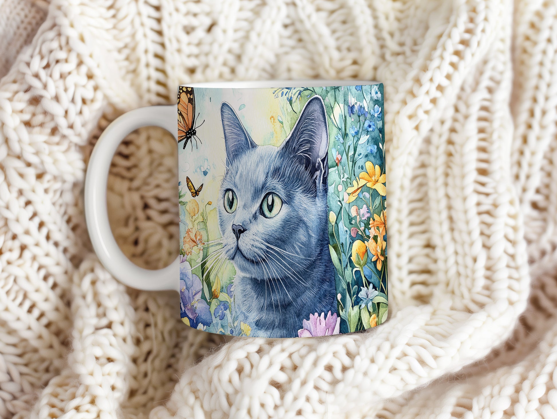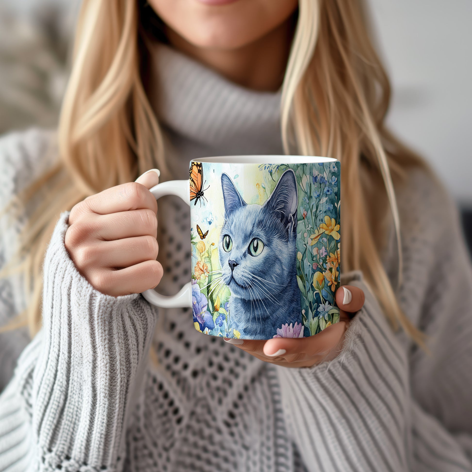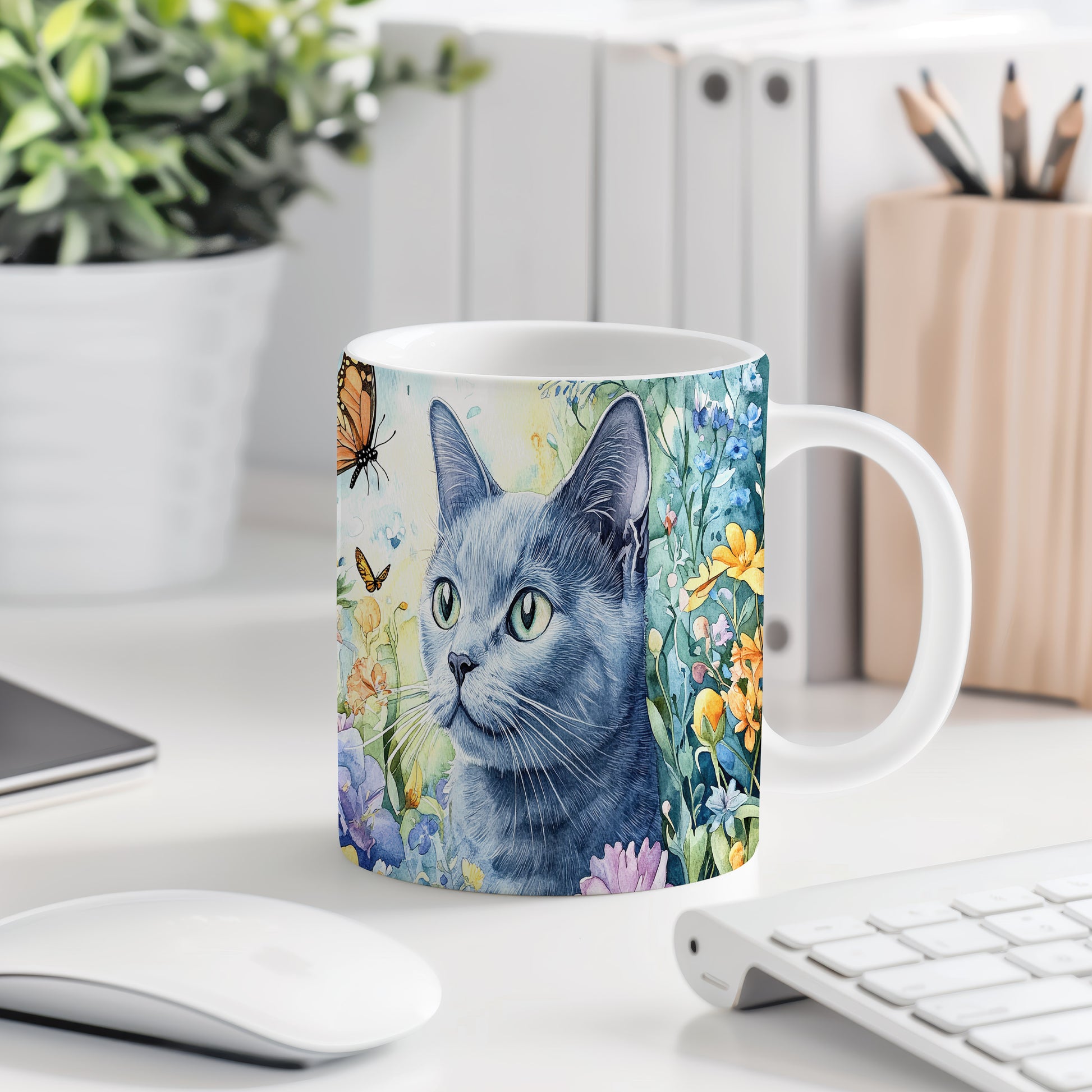 Tento hrnek zobrazuje šedou kočku obklopenou barevnými květinami. Je ideální pro milovníky koček a přírody, skvělý tip na dárek pro přátele nebo rodinu. Materiál: keramika. Objem: 330 ml. Vhodné do myčky i mikrovlnky. Užívejte si svou oblíbenou kávu nebo čaj s tímto stylovým hrnkem.