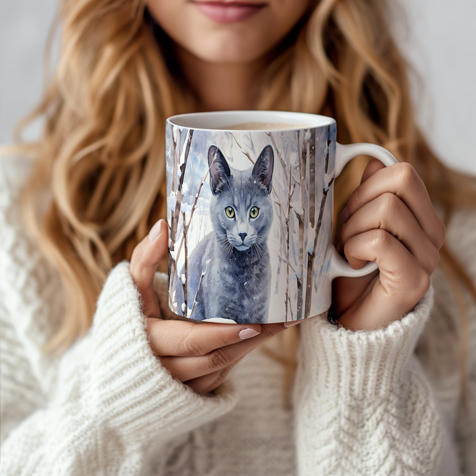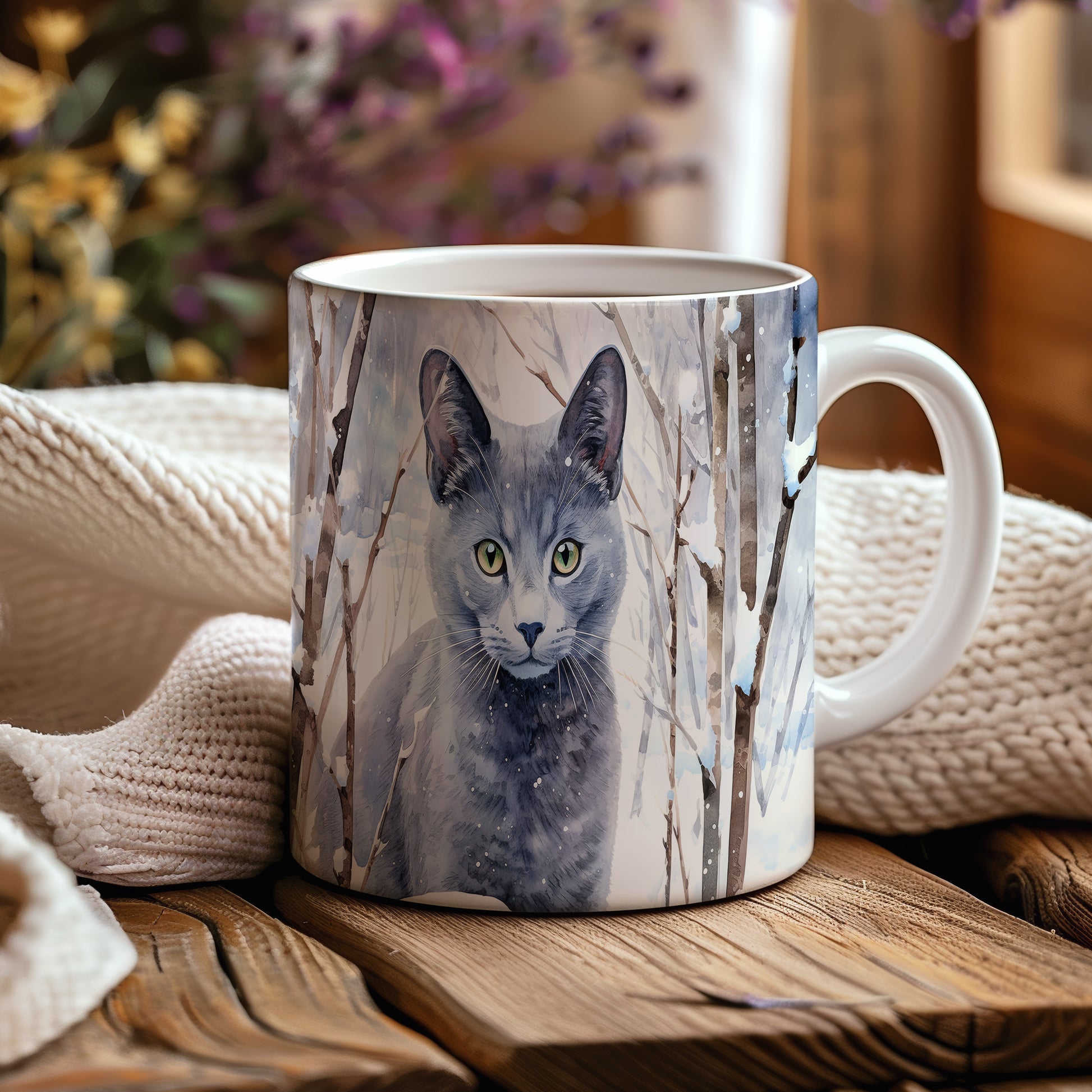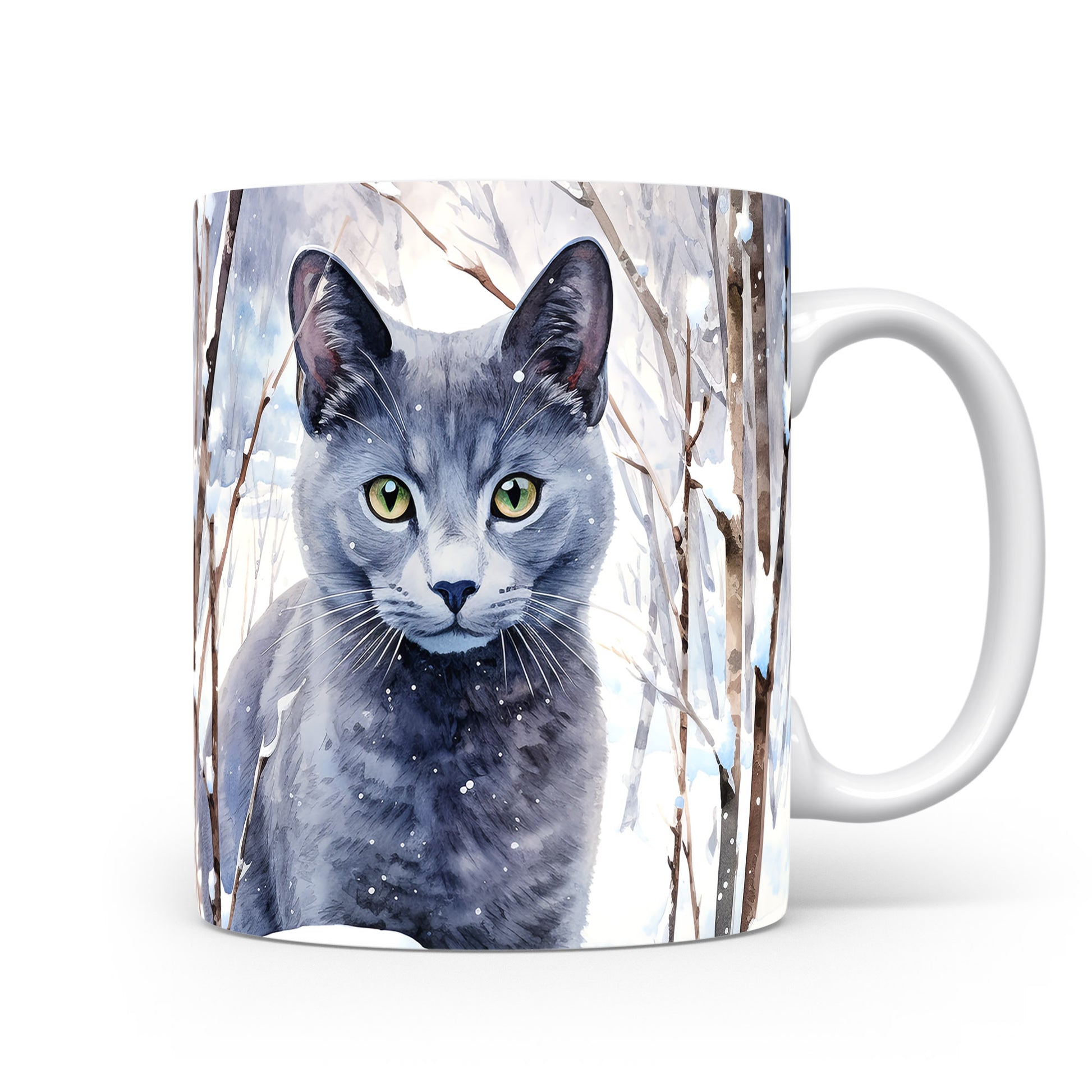 Elegantní hrnek s motivem šedé kočky na pozadí zasněženého lesa. Tento hrnek je ideální pro milovníky zvířat a skvělým dárkem pro každého, kdo ocení přírodu. Materiál: keramika. Objem: 330 ml. Vhodné do myčky i mikrovlnky. Používání tohoto hrnku přináší radost z každého doušku.